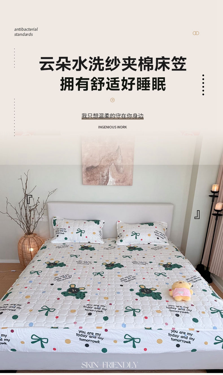 兜米家居 2024新款云朵水洗纱夹棉单品床笠 多巴胺狗狗