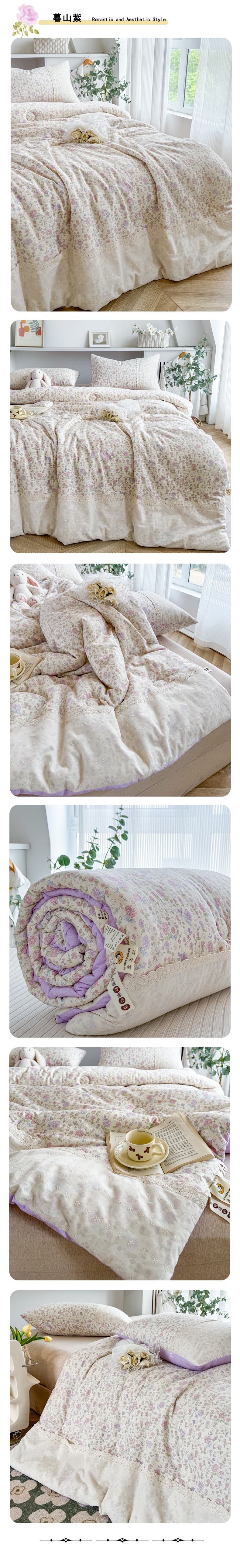 • 91家纺网 家纺一手货源 找家纺 柏薇 2024新款【直播热销款】全棉法式夏被春秋被冬 四季被 暮山紫
