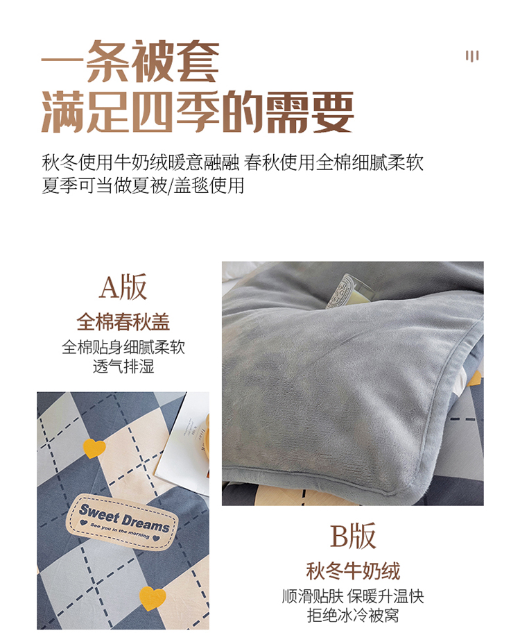 商品名称:2024新款全棉加牛奶绒四件套单被套系列-单被套 格韵空间