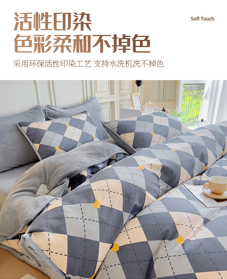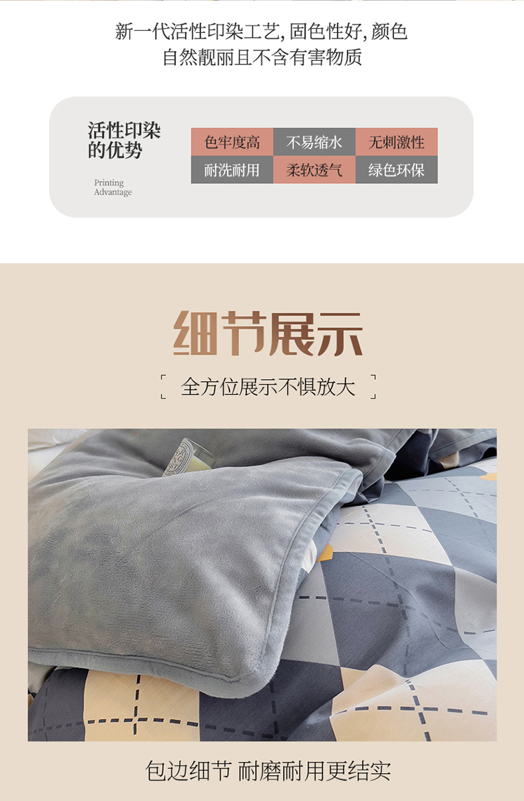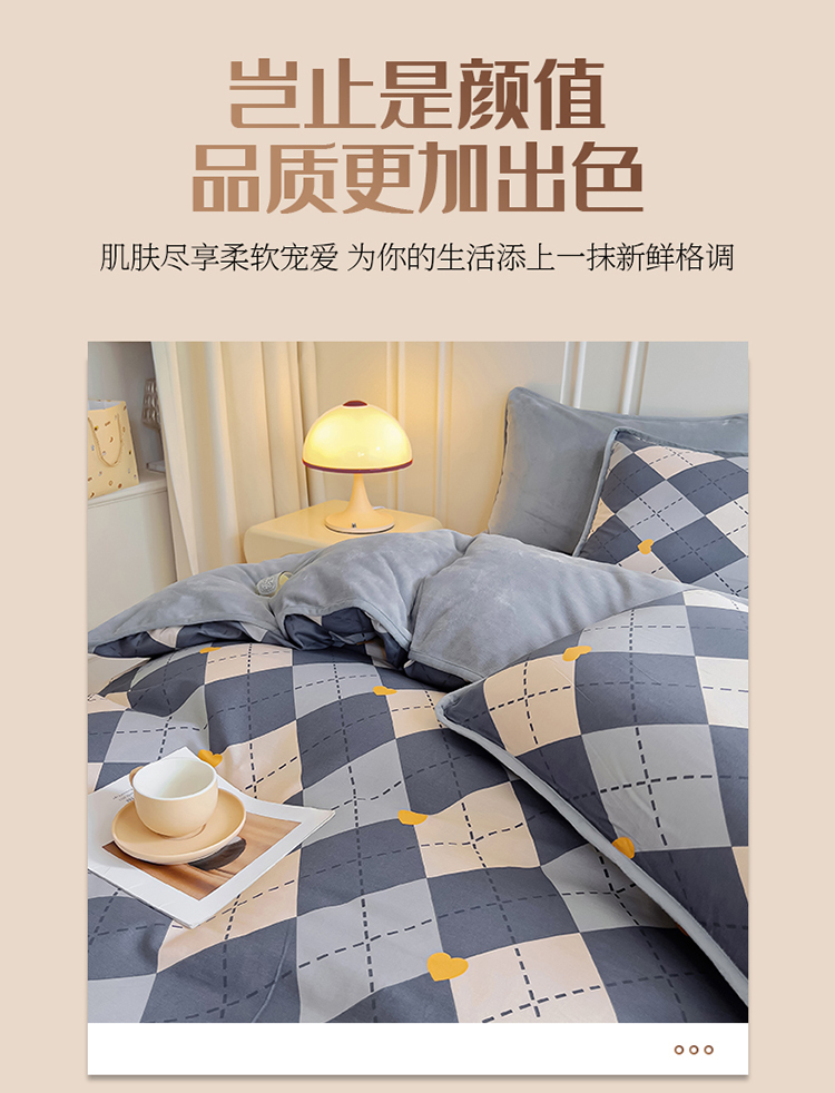 琪琪阁 2023新款A棉B绒棉加绒牛奶绒四件套单被套 宁静生活,宁静生活