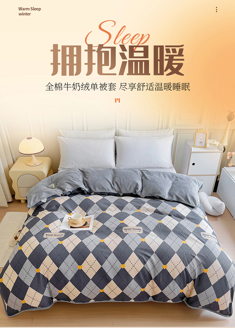 2024新款全棉加牛奶绒四件套单被套系列-单被套 格韵空间