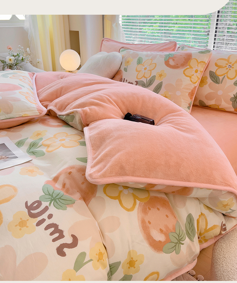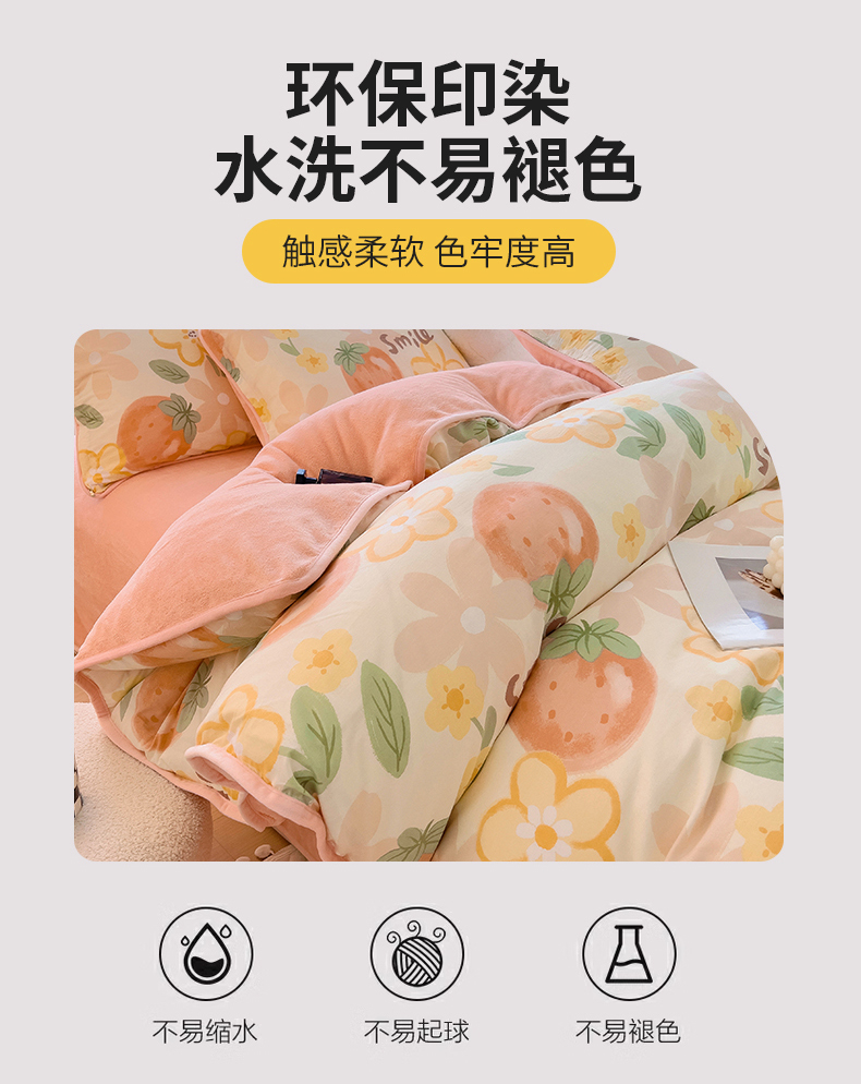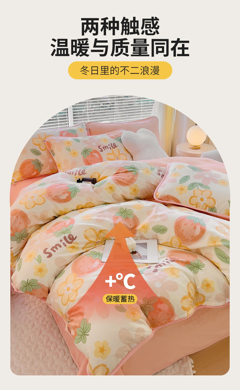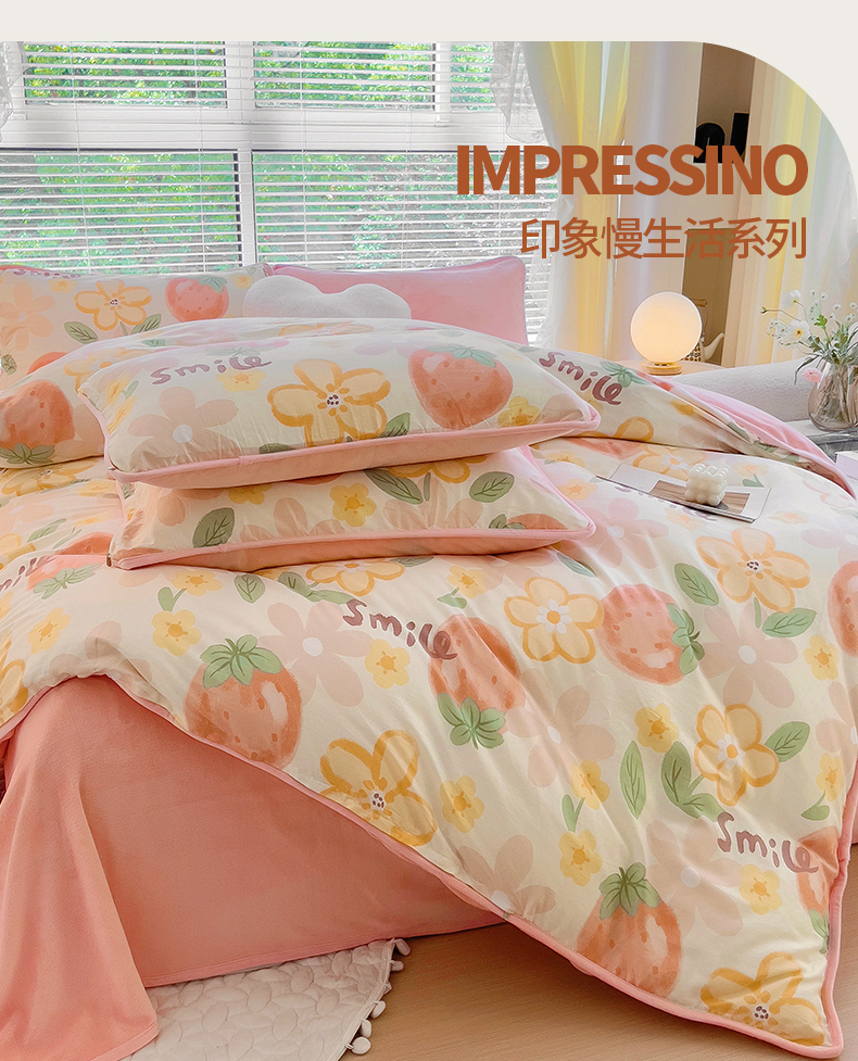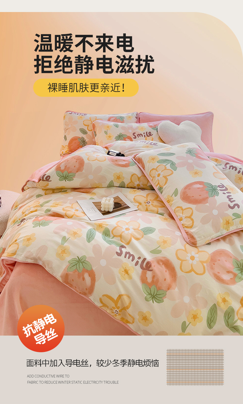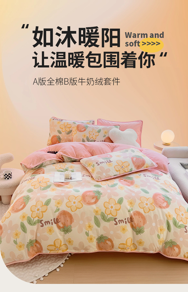 当前位置: 91家纺网 > 商品网购 > 床品套件 > 四件套 > 牛奶绒四件套 > 2024新款全棉加牛奶绒四件套单被套系列-四件套 笑脸草莓