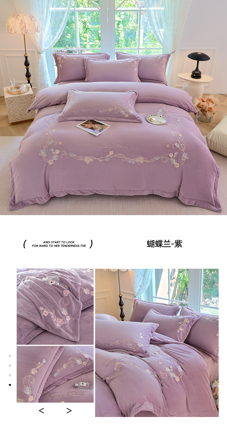 商品名称:2024新款秋冬新品牛奶绒四件套-蝴蝶兰 蝴蝶兰-紫