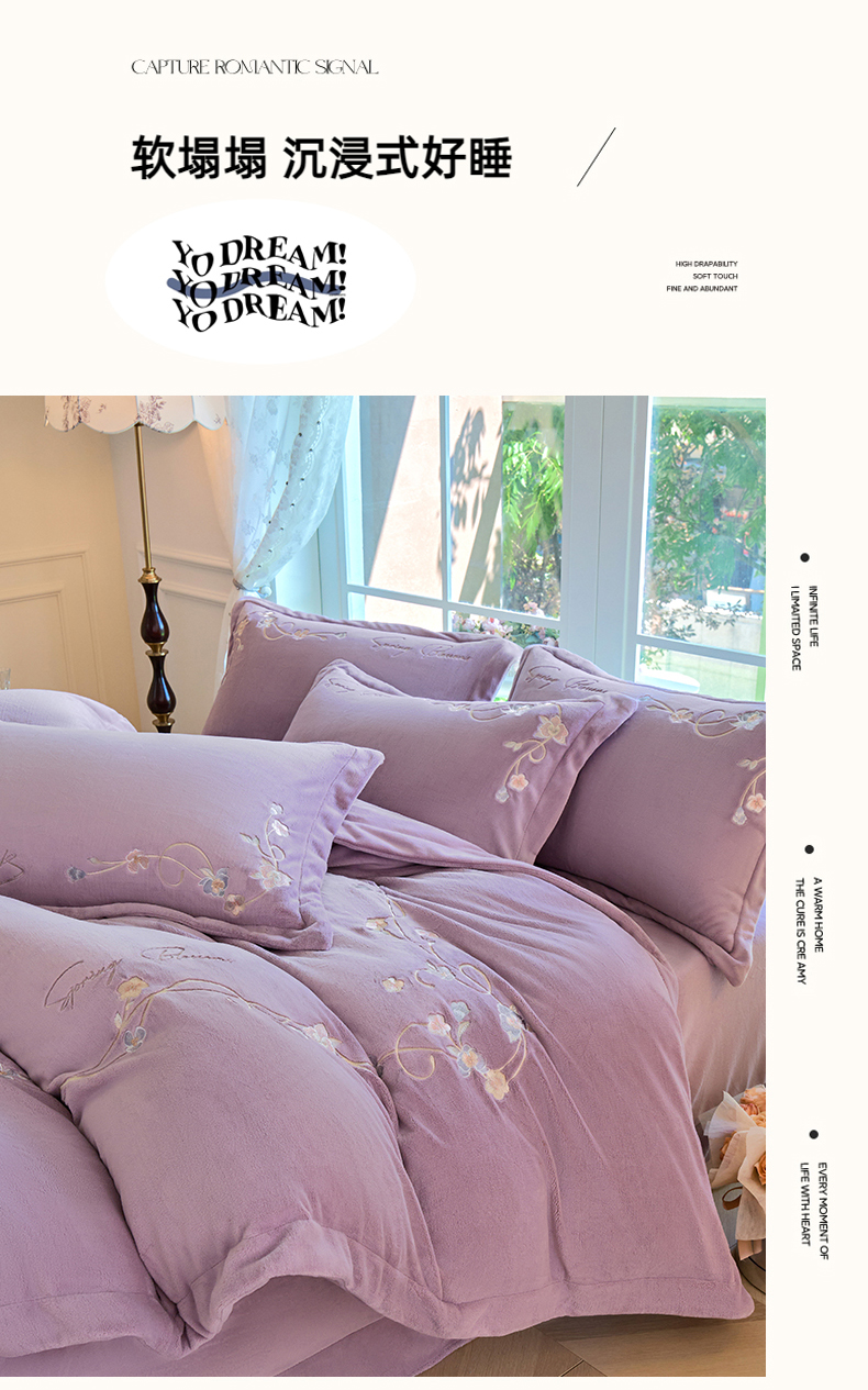 2024新款秋冬新品牛奶绒四件套-蝴蝶兰 蝴蝶兰-紫