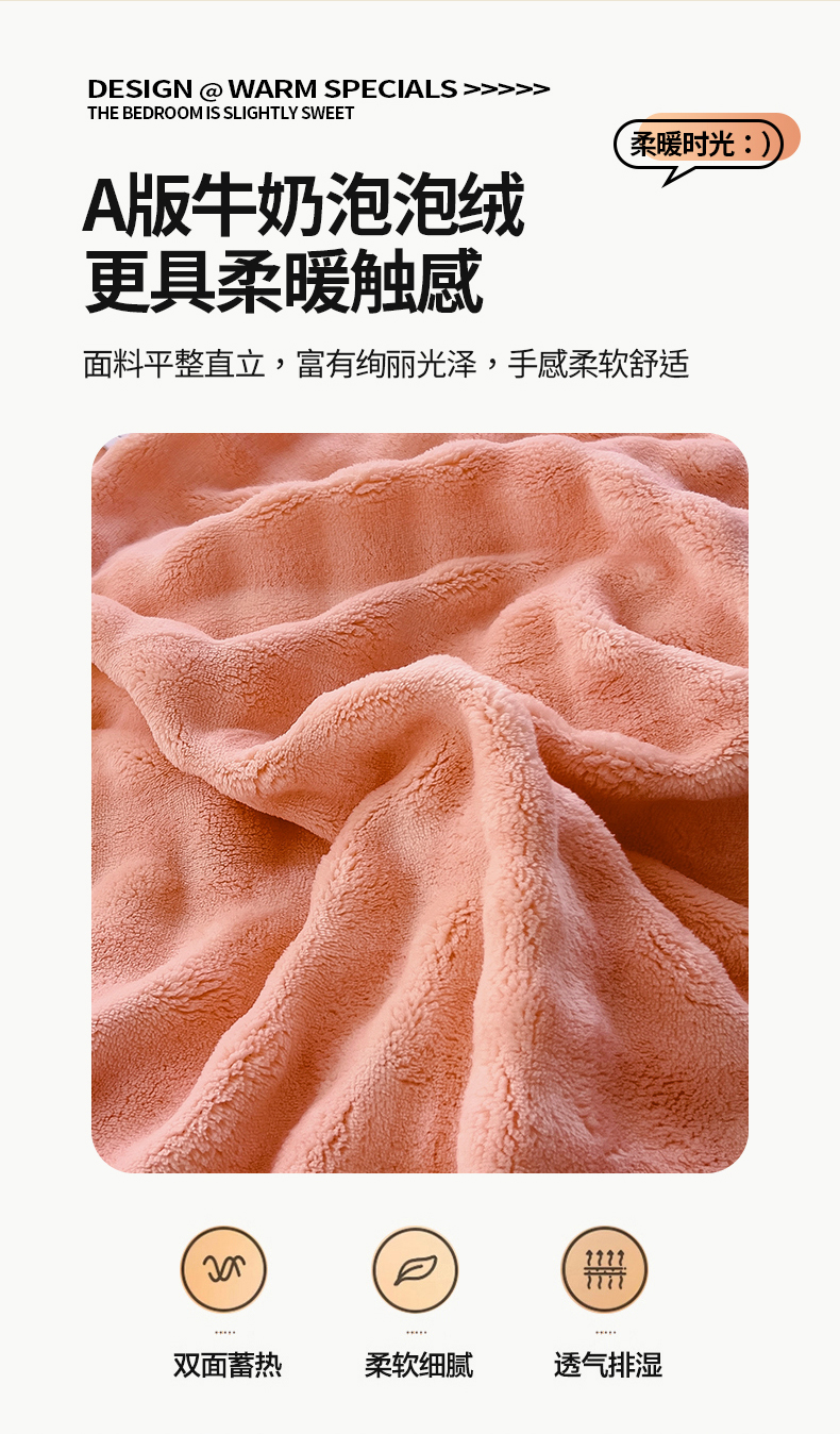 琪琪阁家纺 2024新款牛奶绒泡泡绒四件套 樱花粉