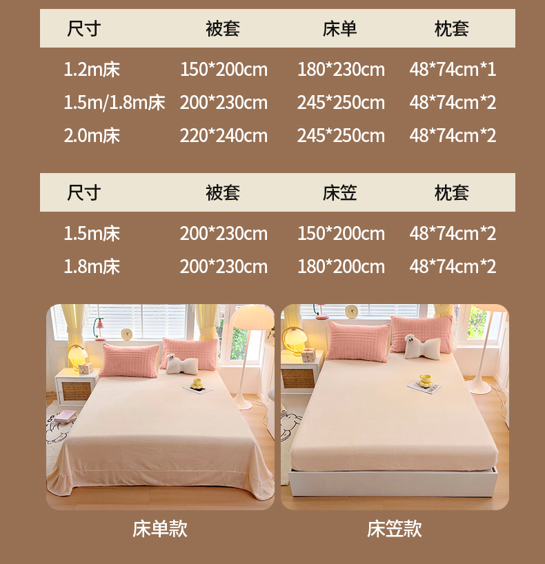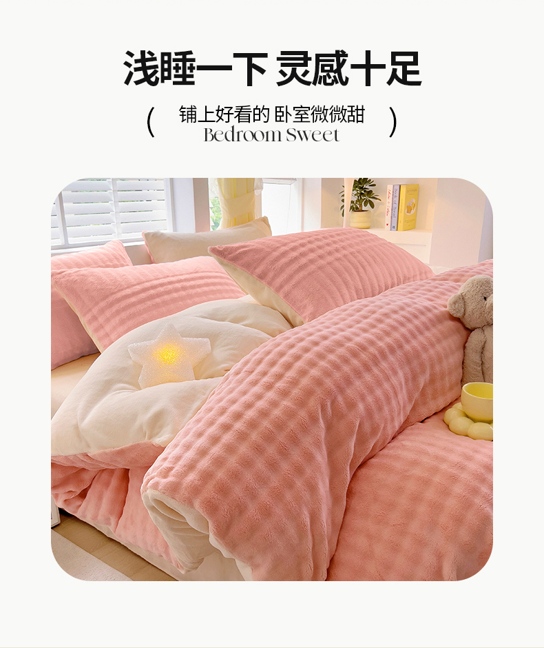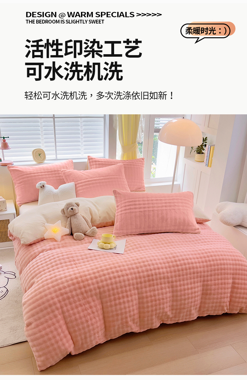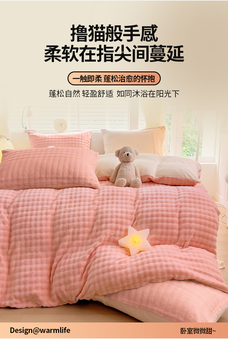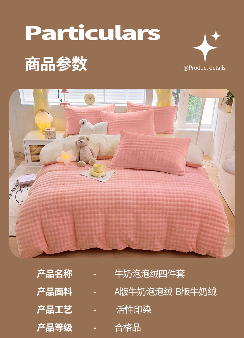 商品名称:琪琪阁家纺 2024新款牛奶绒泡泡绒四件套 樱花粉