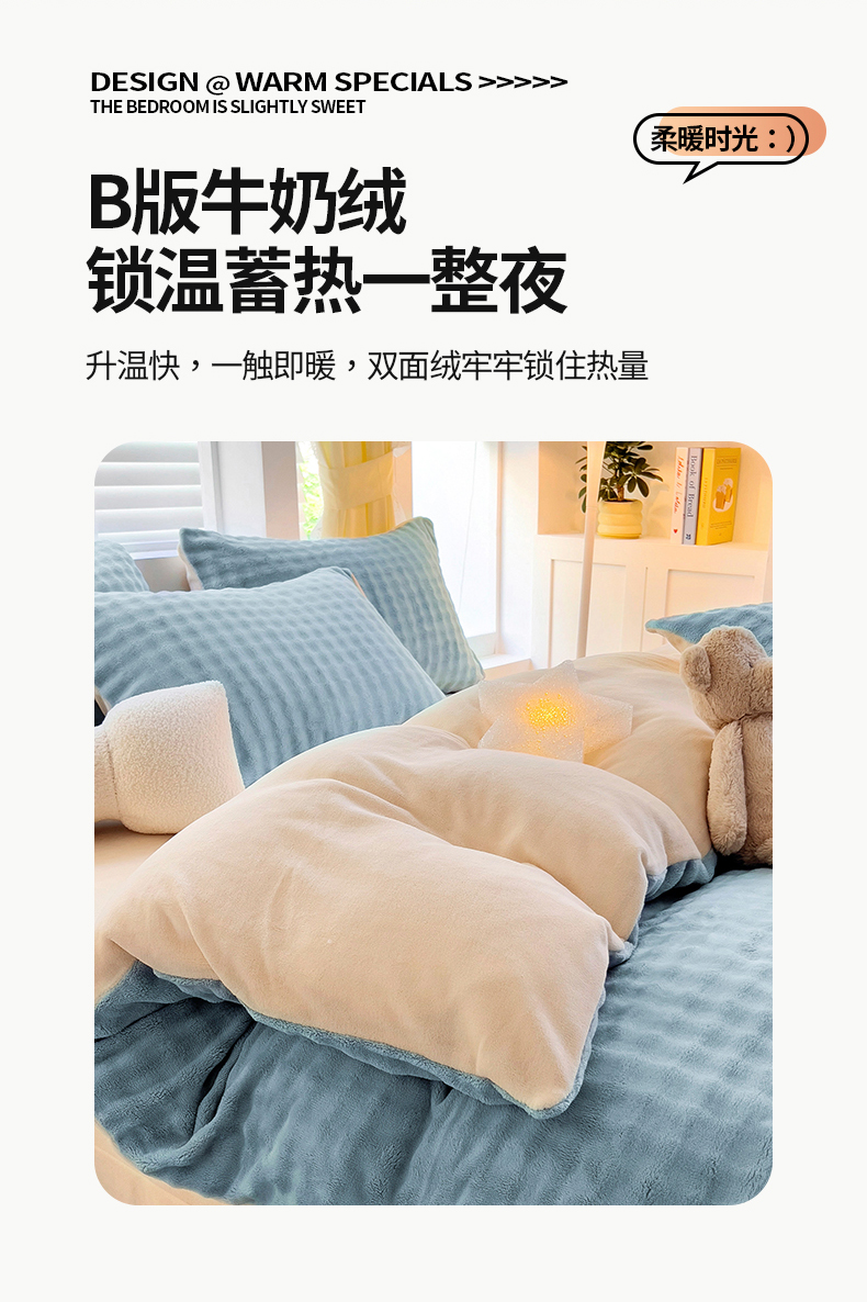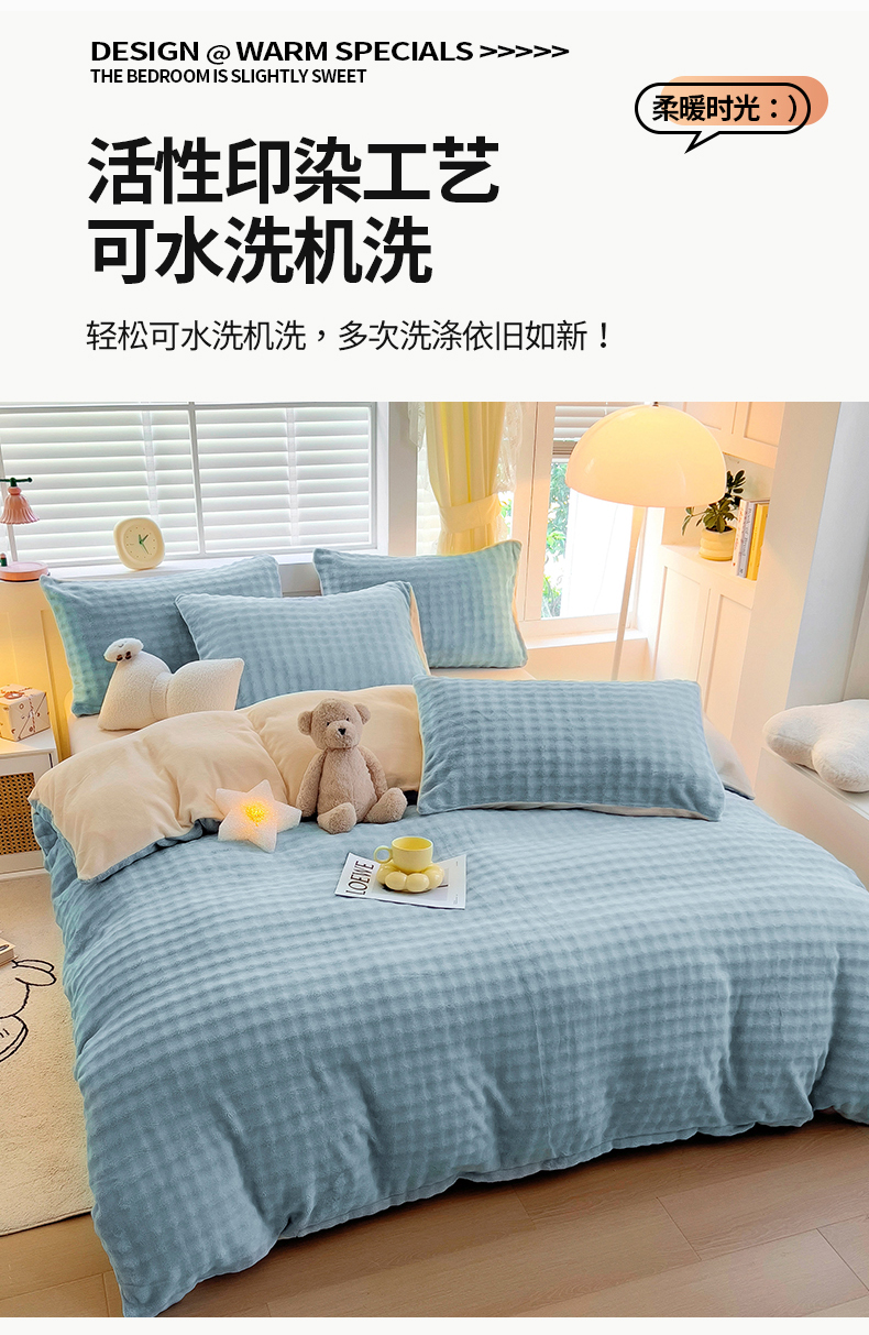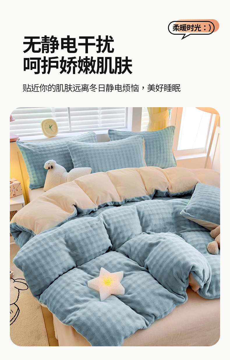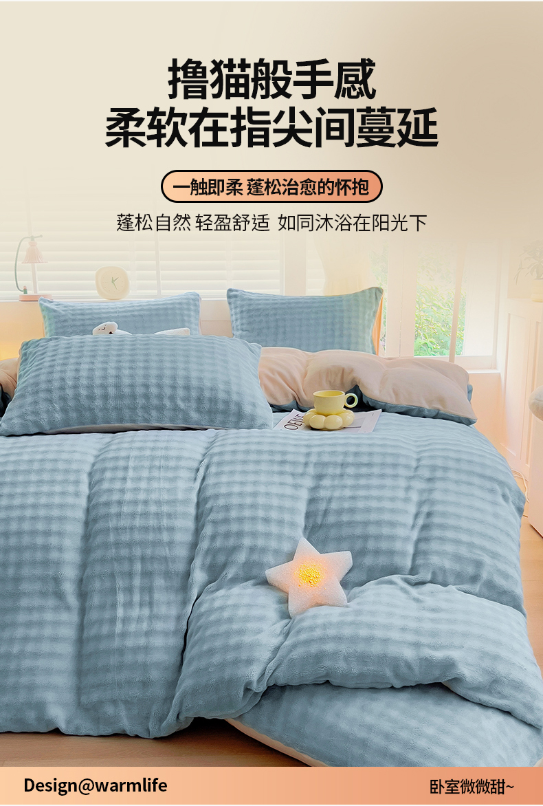 琪琪阁 2023新款A棉B绒棉加绒牛奶绒四件套单被套 宁静生活,宁静生活