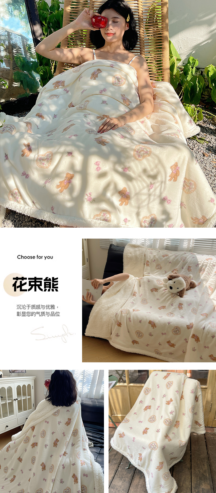萝莉家纺 2024秋冬新款多功能加厚牛奶绒羊羔绒多功能毛毯 花束熊