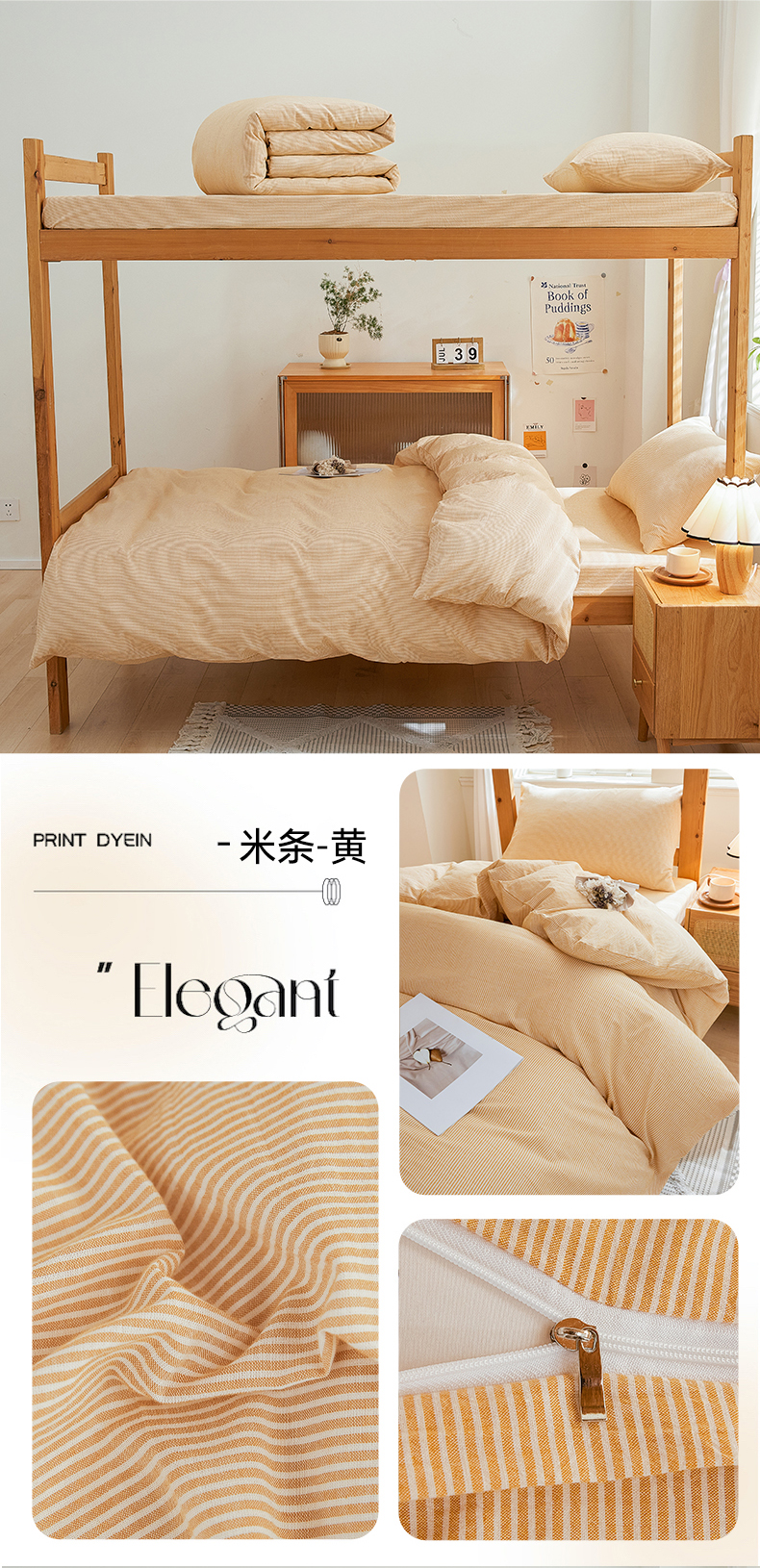商品名称:棉小二 2024新款全棉水洗棉学生宿舍三四件套 米条-黄