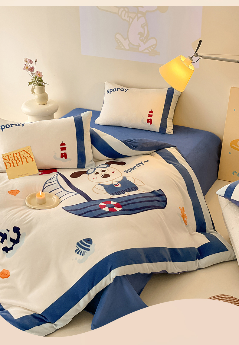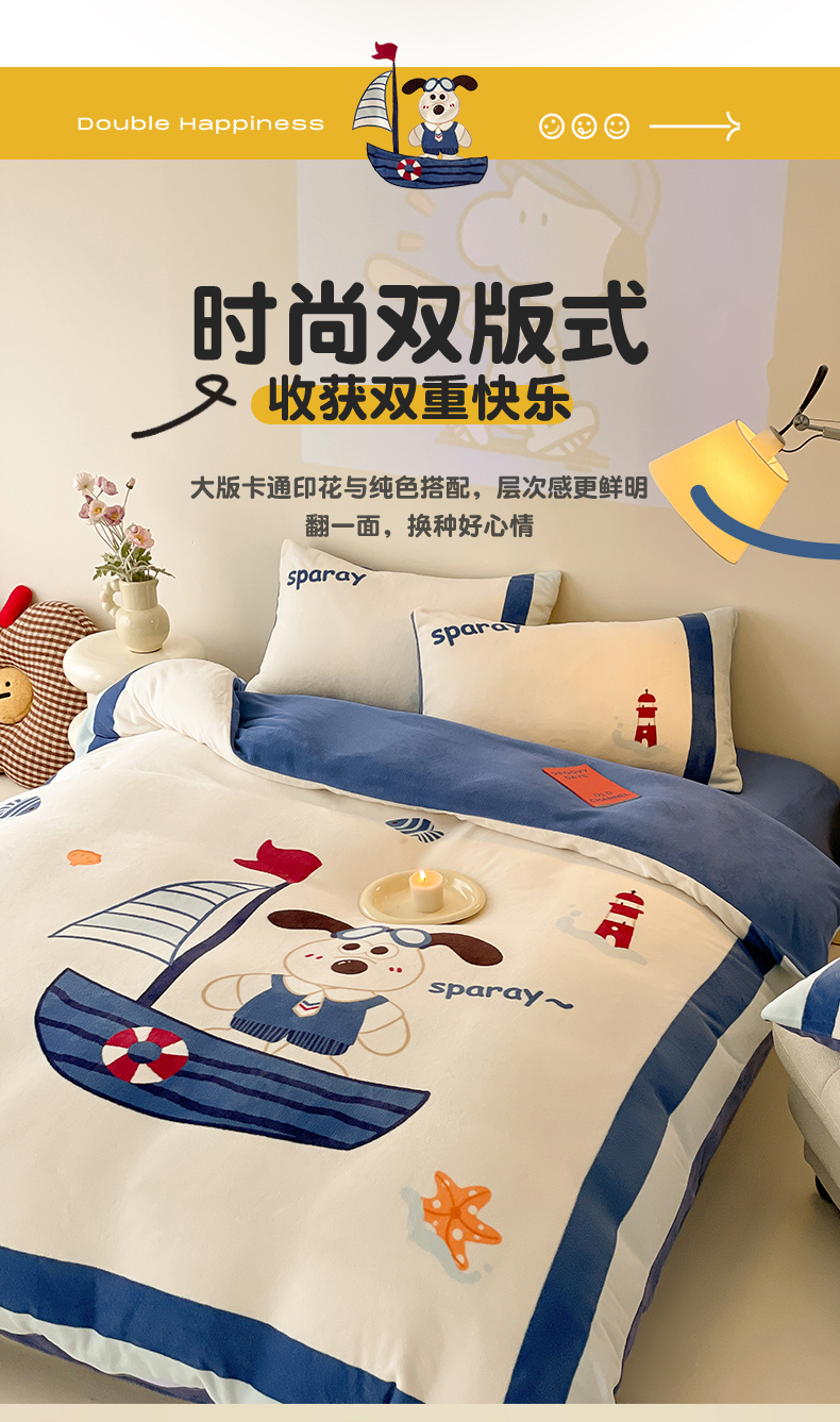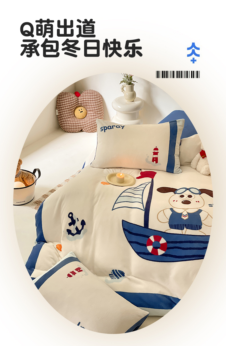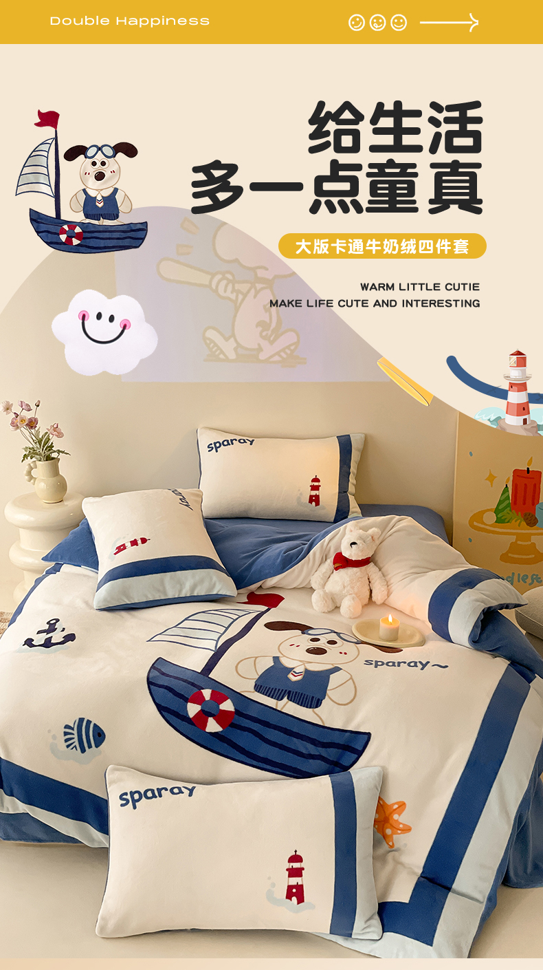 商品名称:星座家纺 2025新款大版卡通牛奶绒四件套 船长狗狗