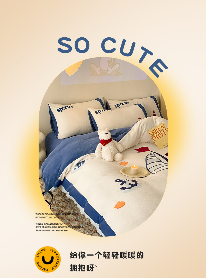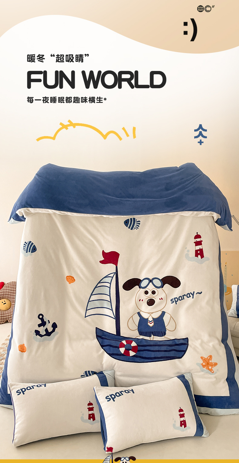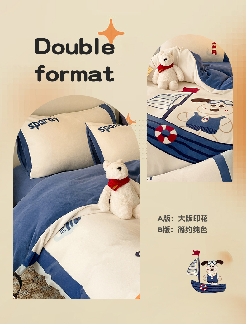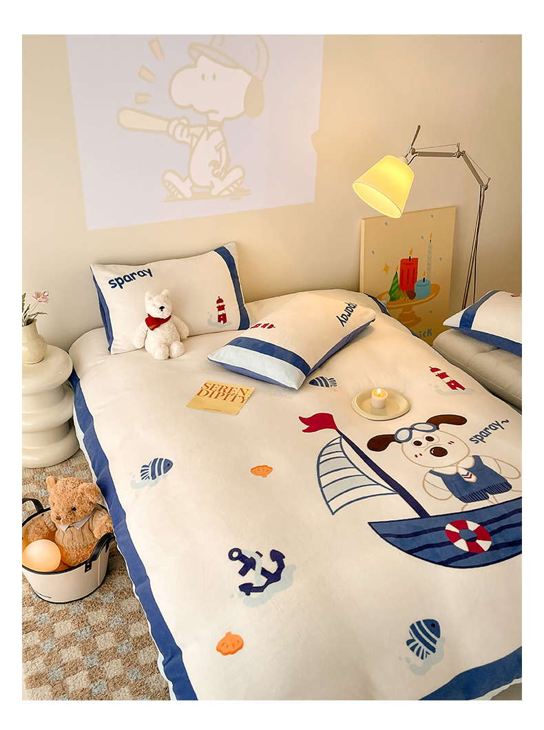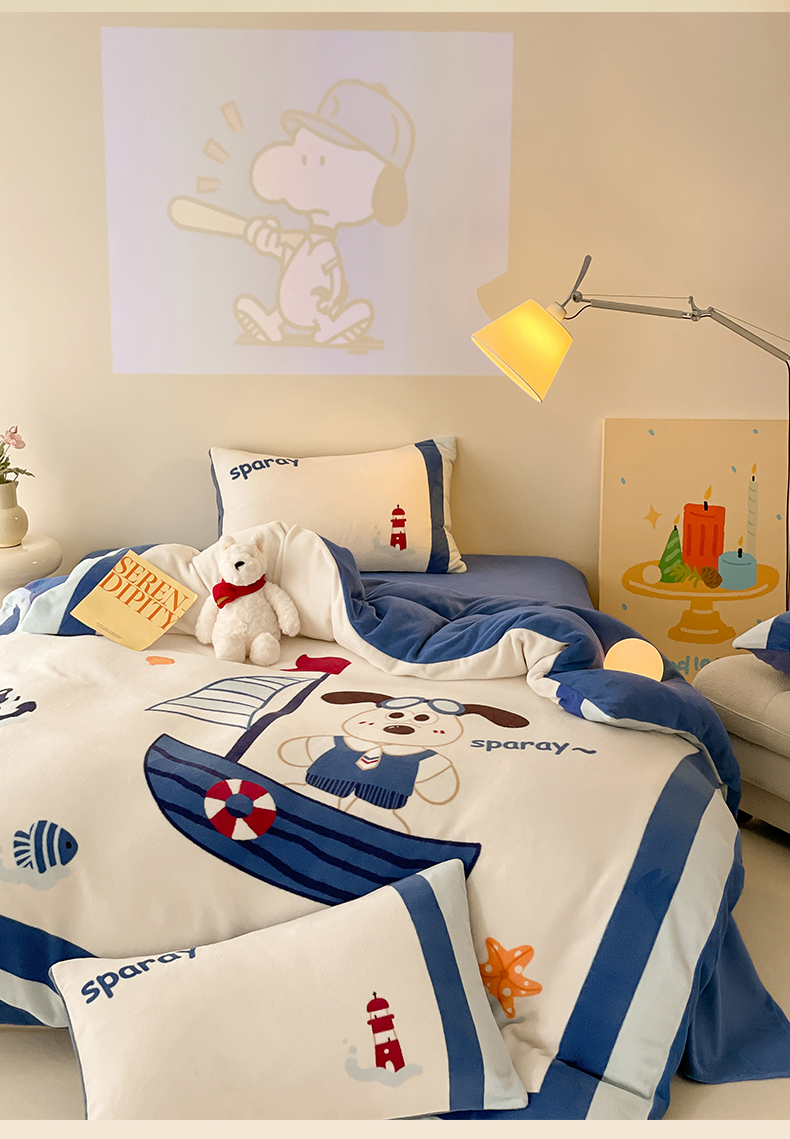 商品名称:星座家纺 2025新款大版卡通牛奶绒四件套 船长狗狗
