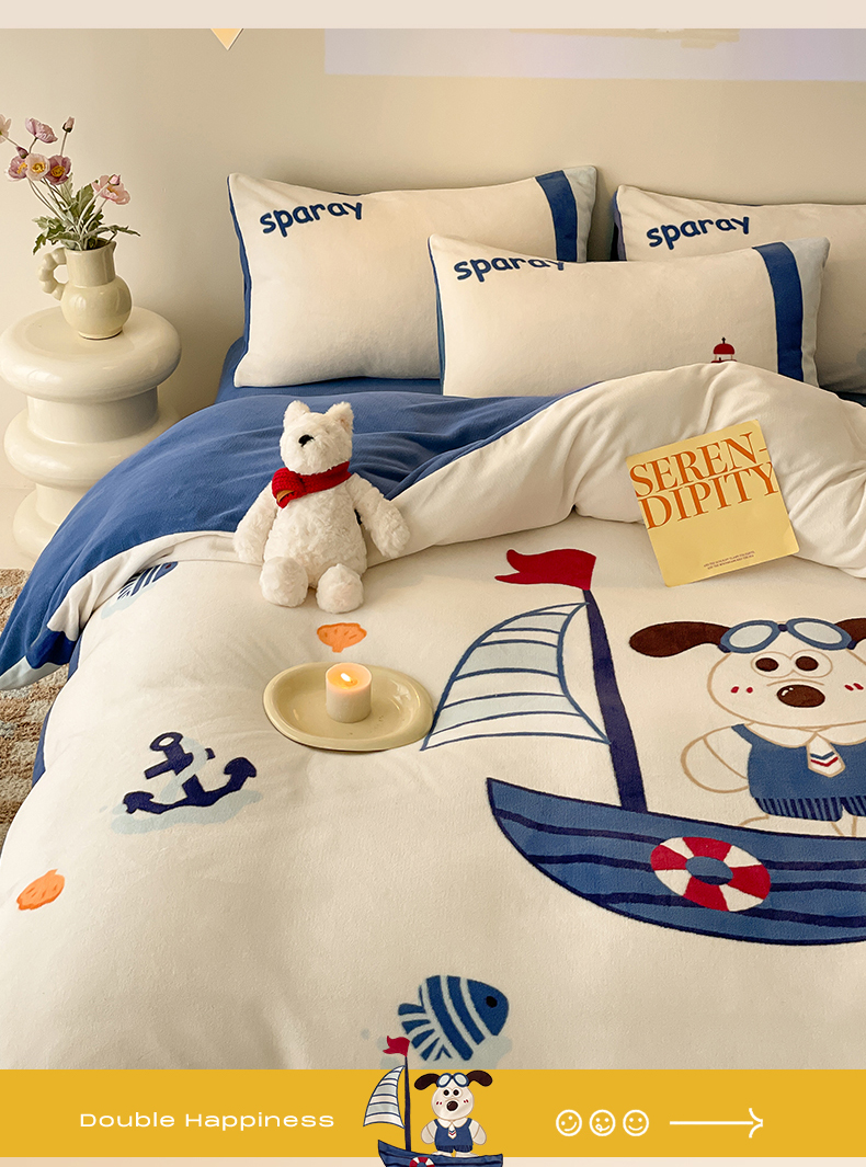 星座家纺 2025新款大版卡通牛奶绒四件套 船长狗狗
