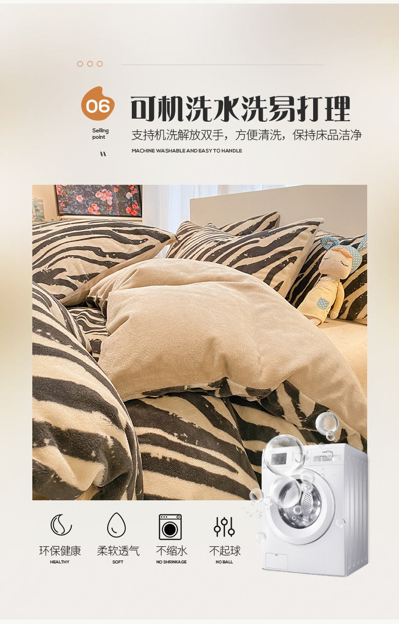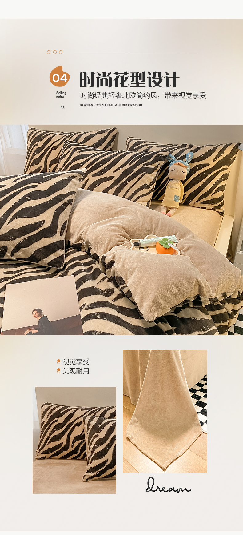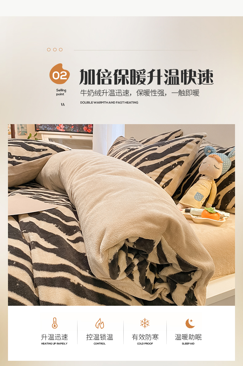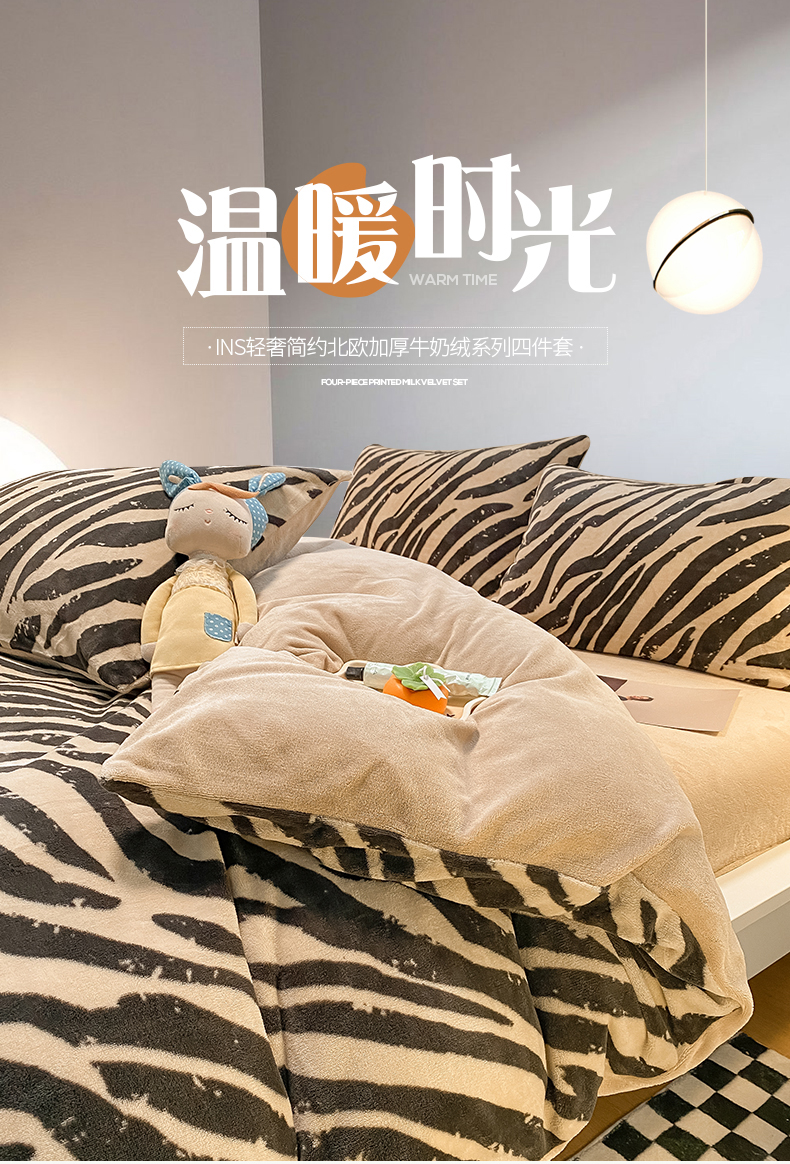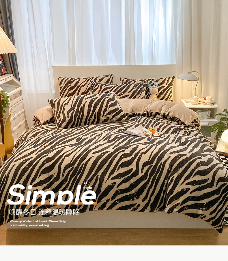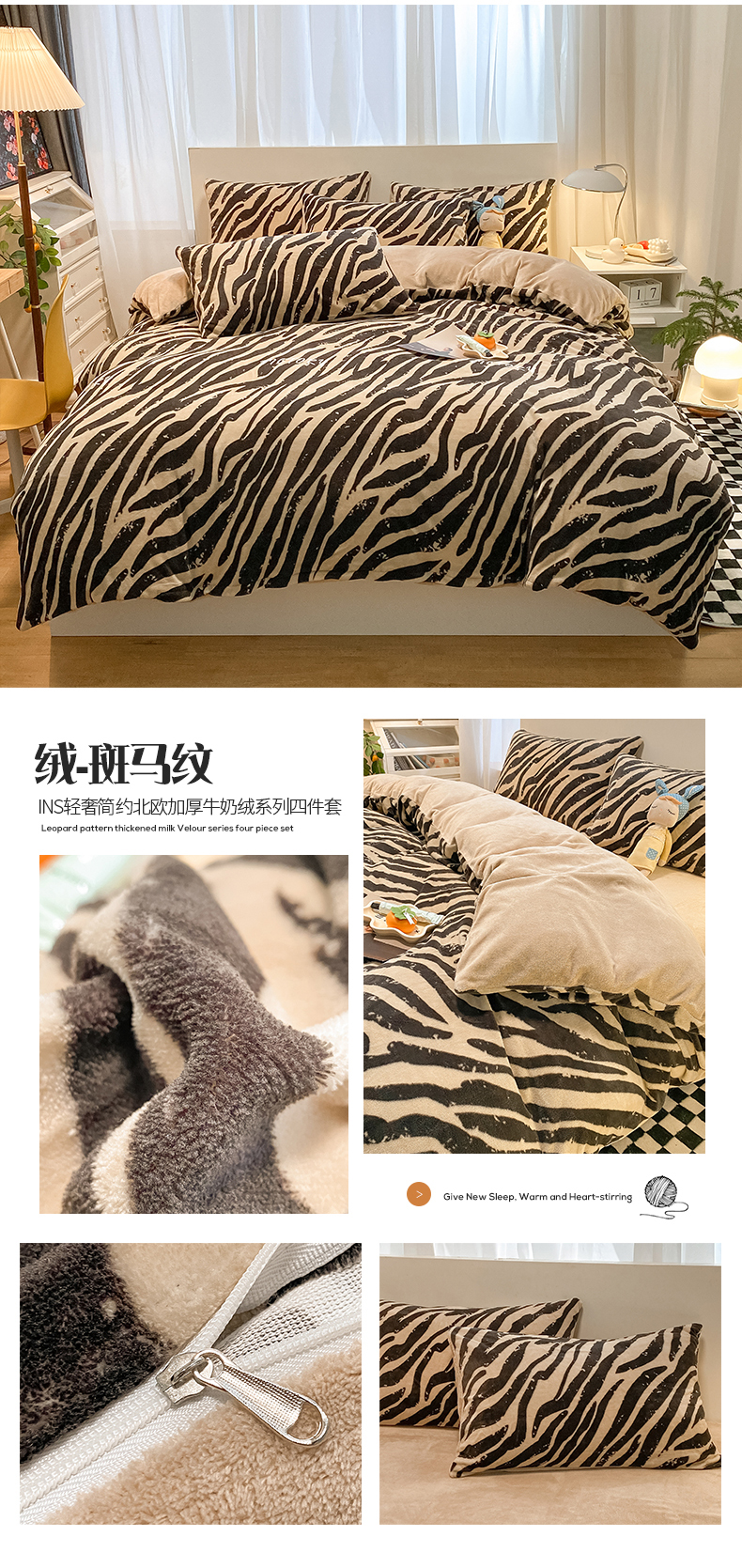 2024新款时尚高级经典轻奢北欧简约加厚200克牛奶绒四件套 绒-斑马纹