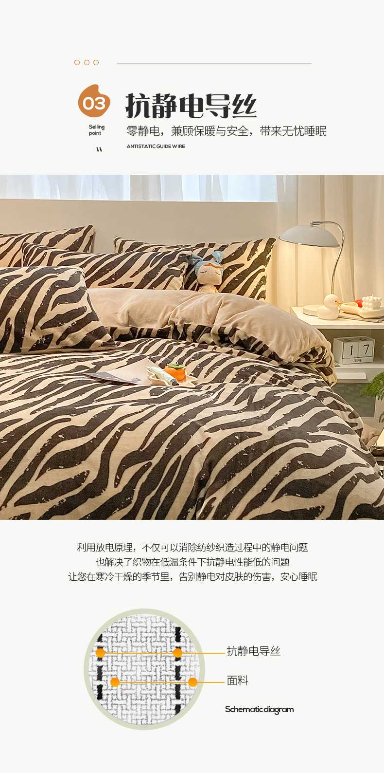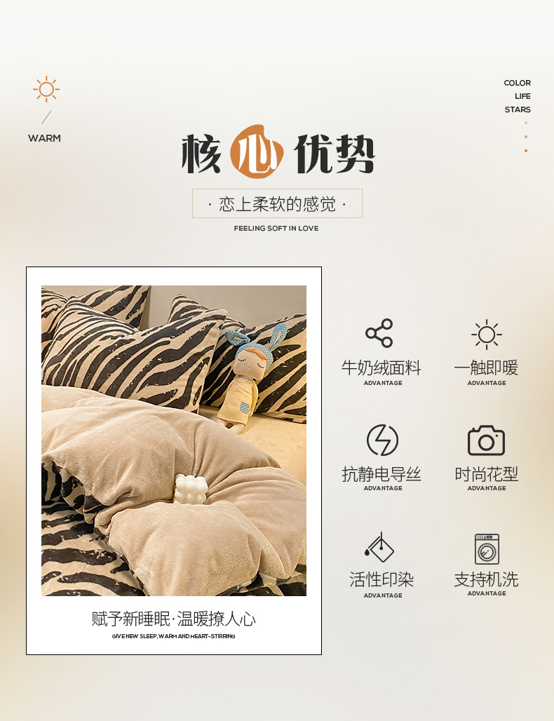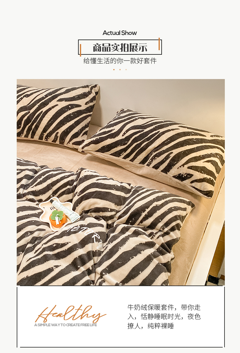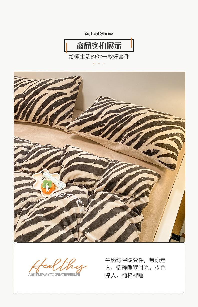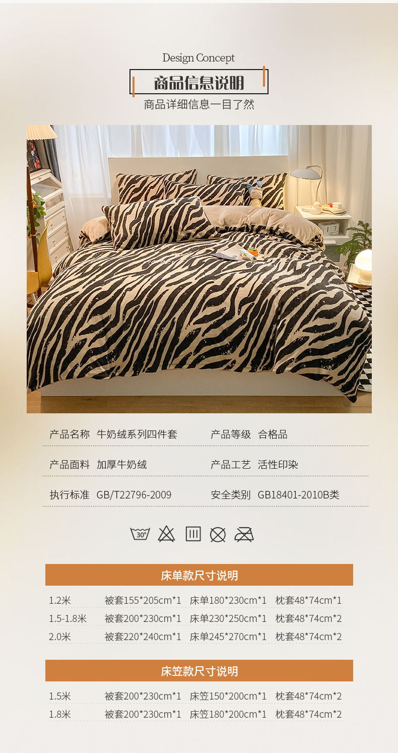 商品名称:2024新款时尚高级经典轻奢北欧简约加厚200克牛奶绒四件套 绒-斑马纹