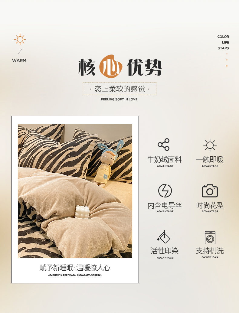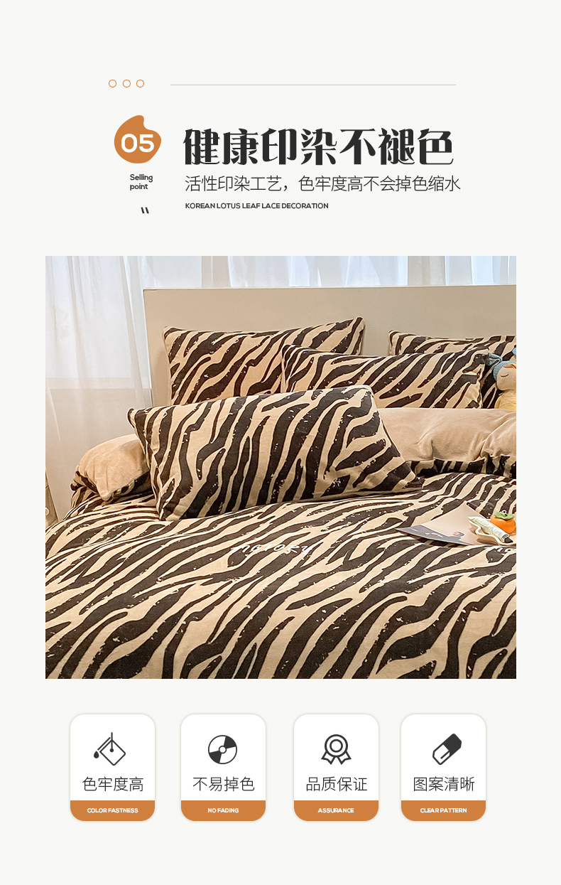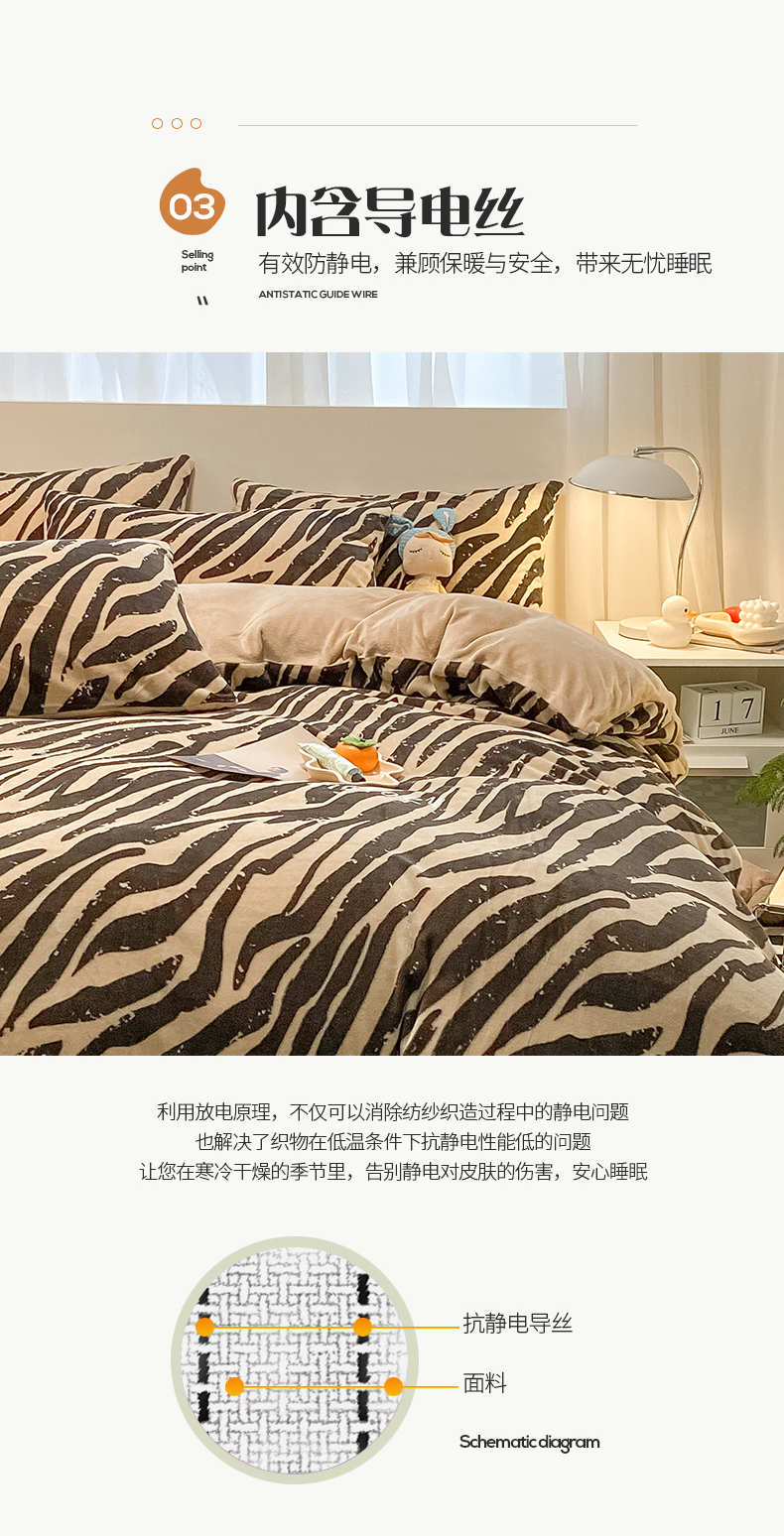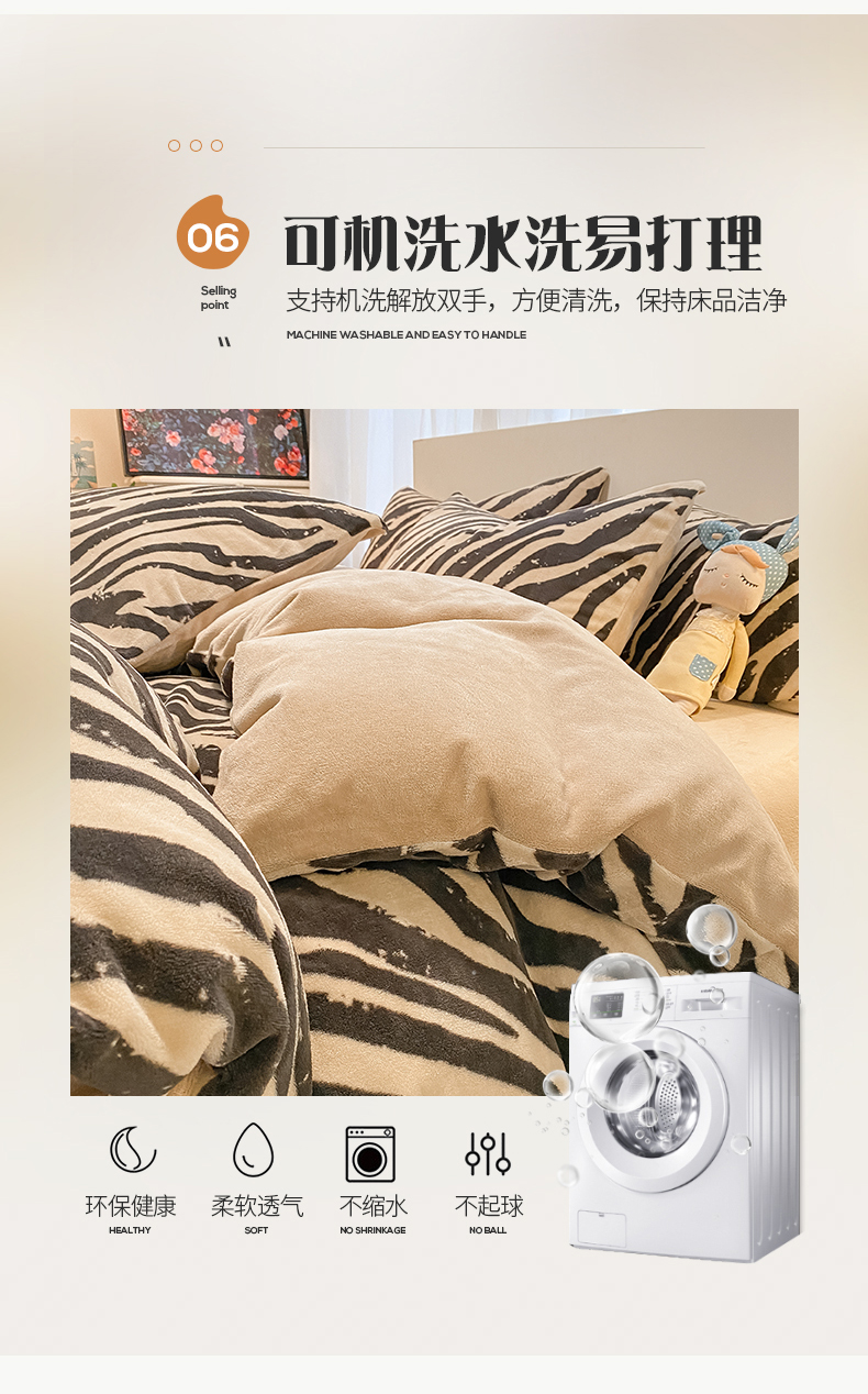 商品名称:2024新款时尚高级经典轻奢北欧简约加厚200克牛奶绒四件套 绒-斑马纹