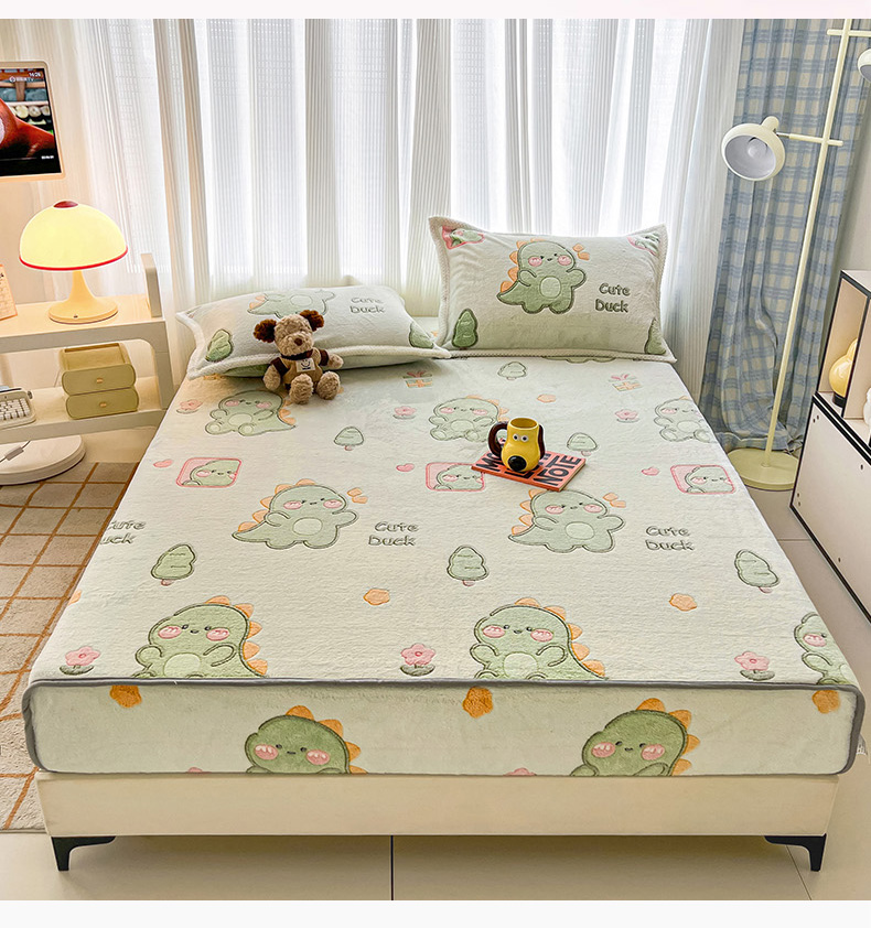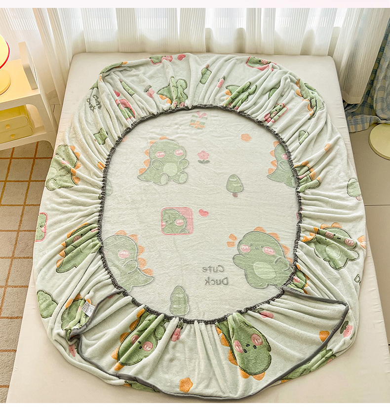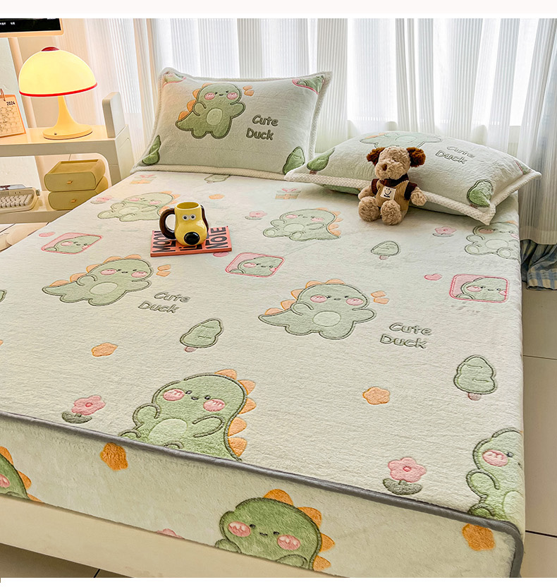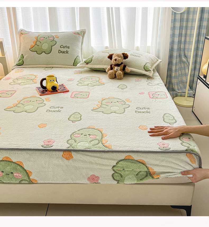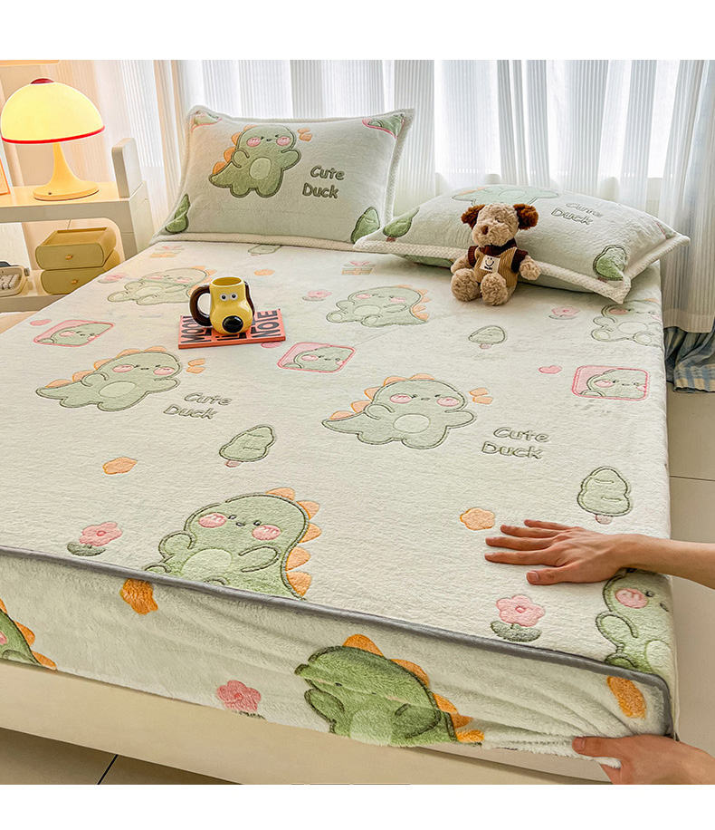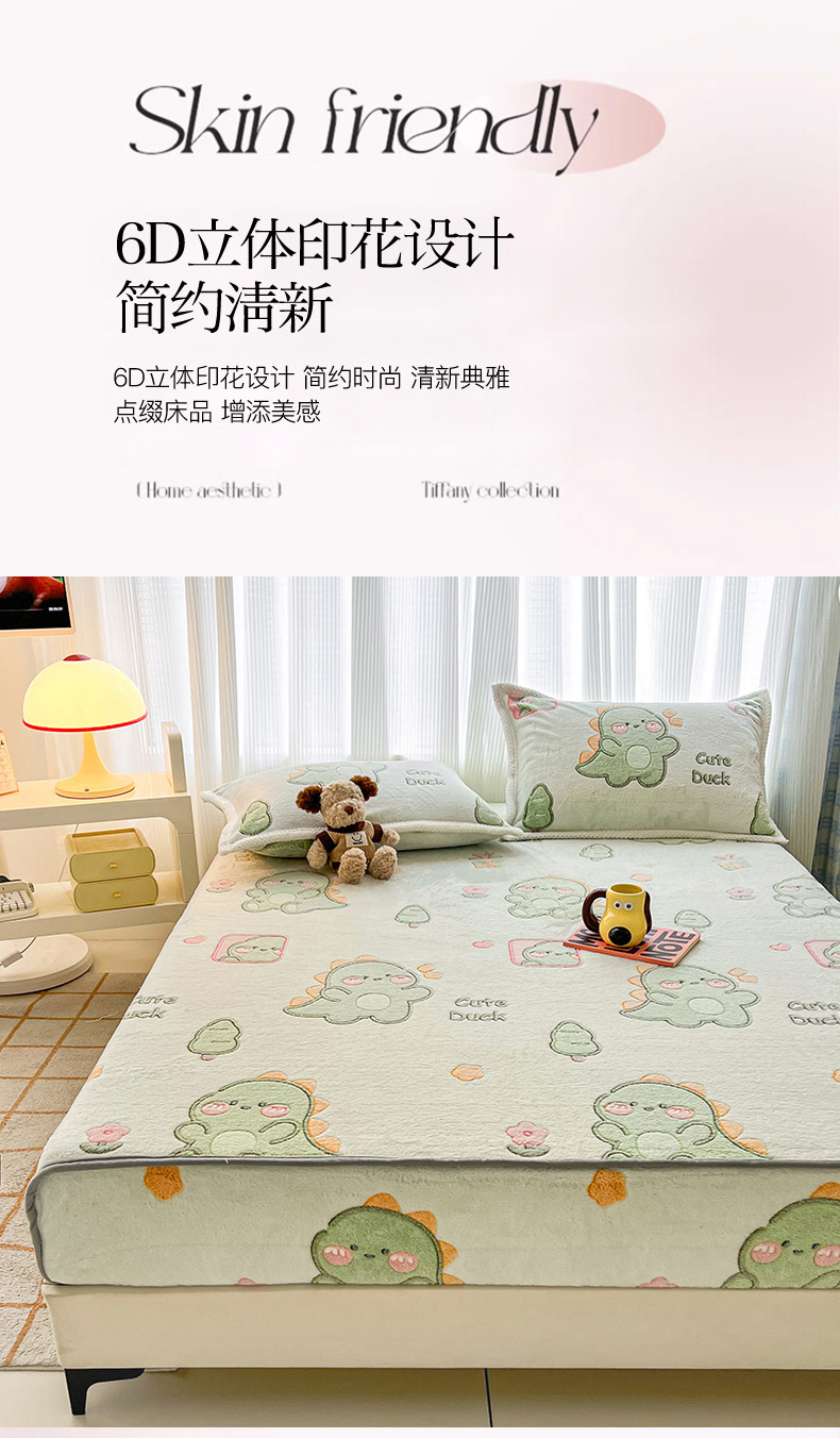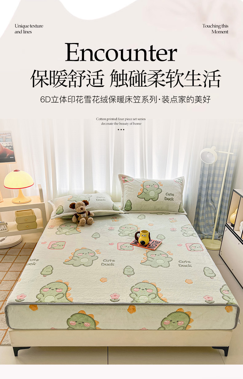 倾慕家纺 2024新款加厚保暖6D立体雪花绒系列-单床笠 绿色小龙