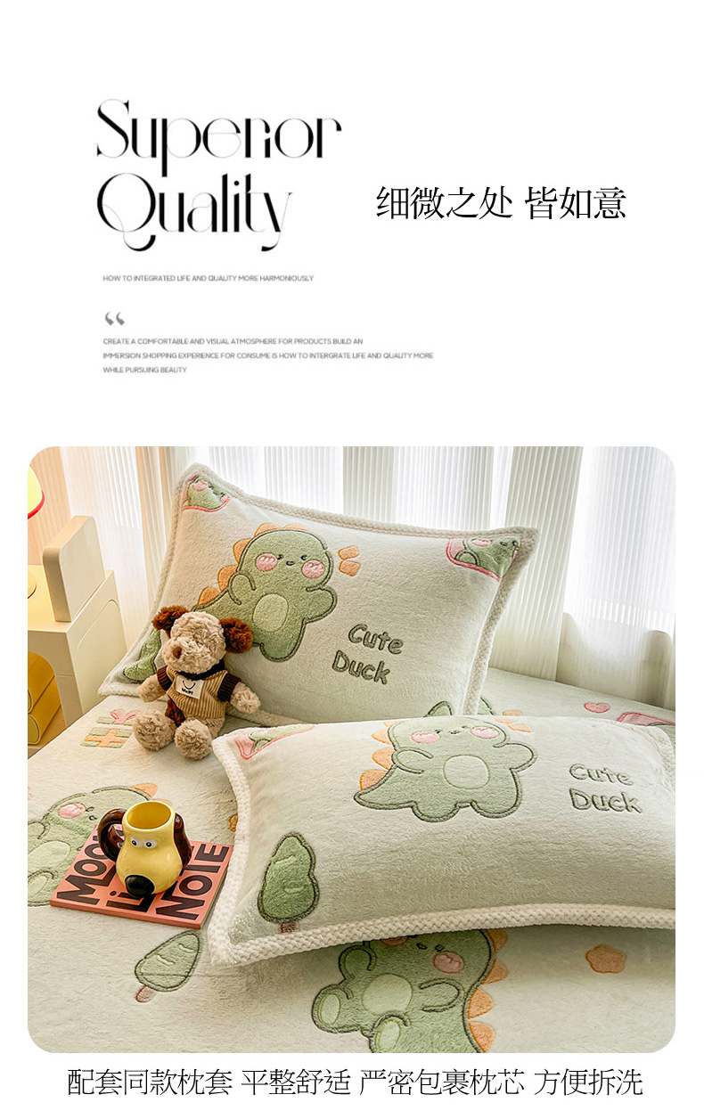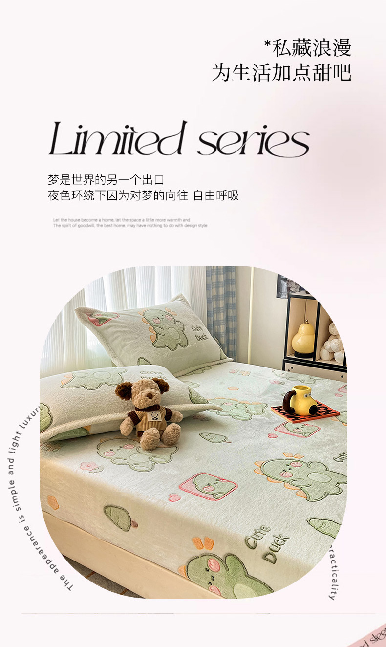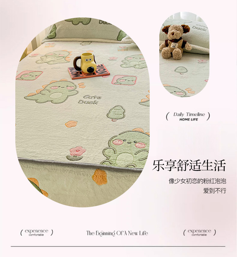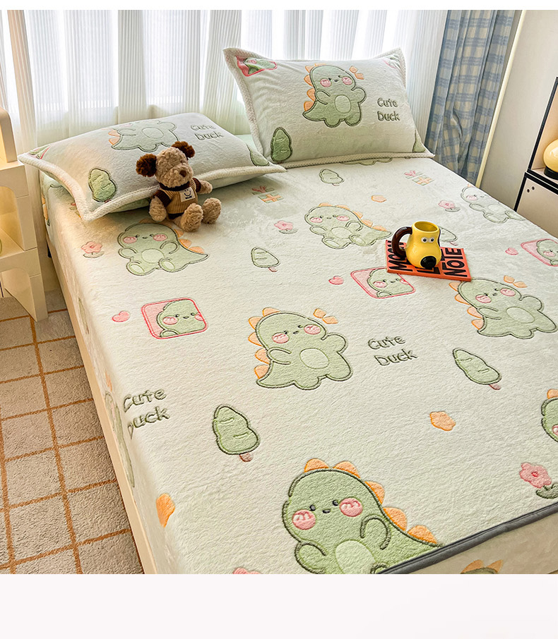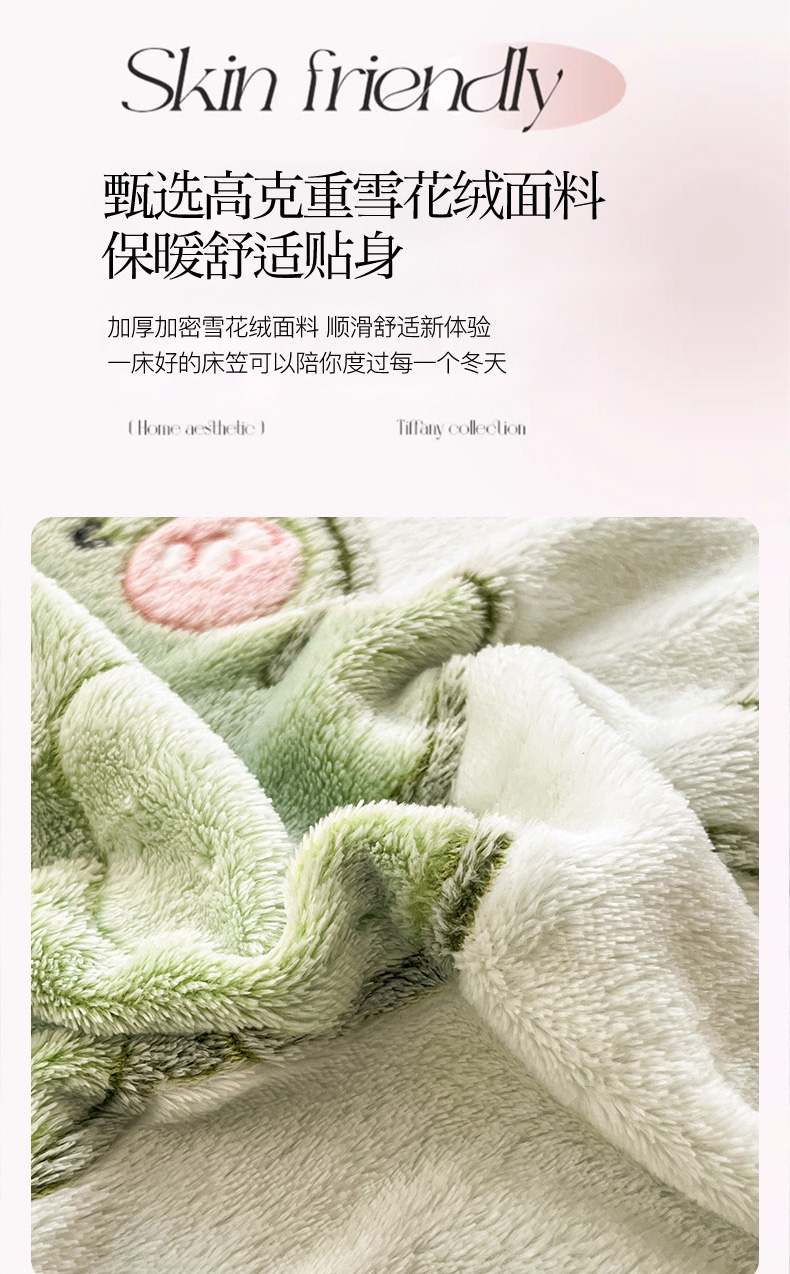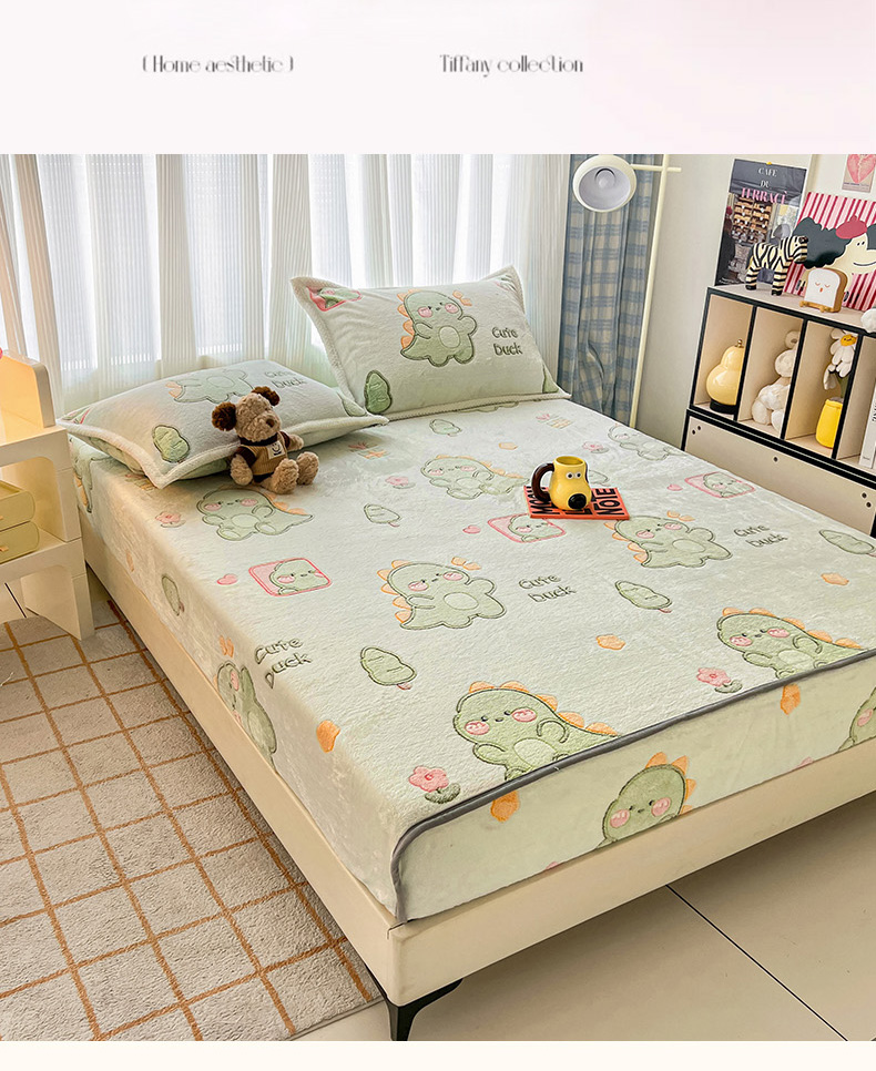 倾慕家纺 2024新款加厚保暖6D立体雪花绒系列-单床笠 绿色小龙