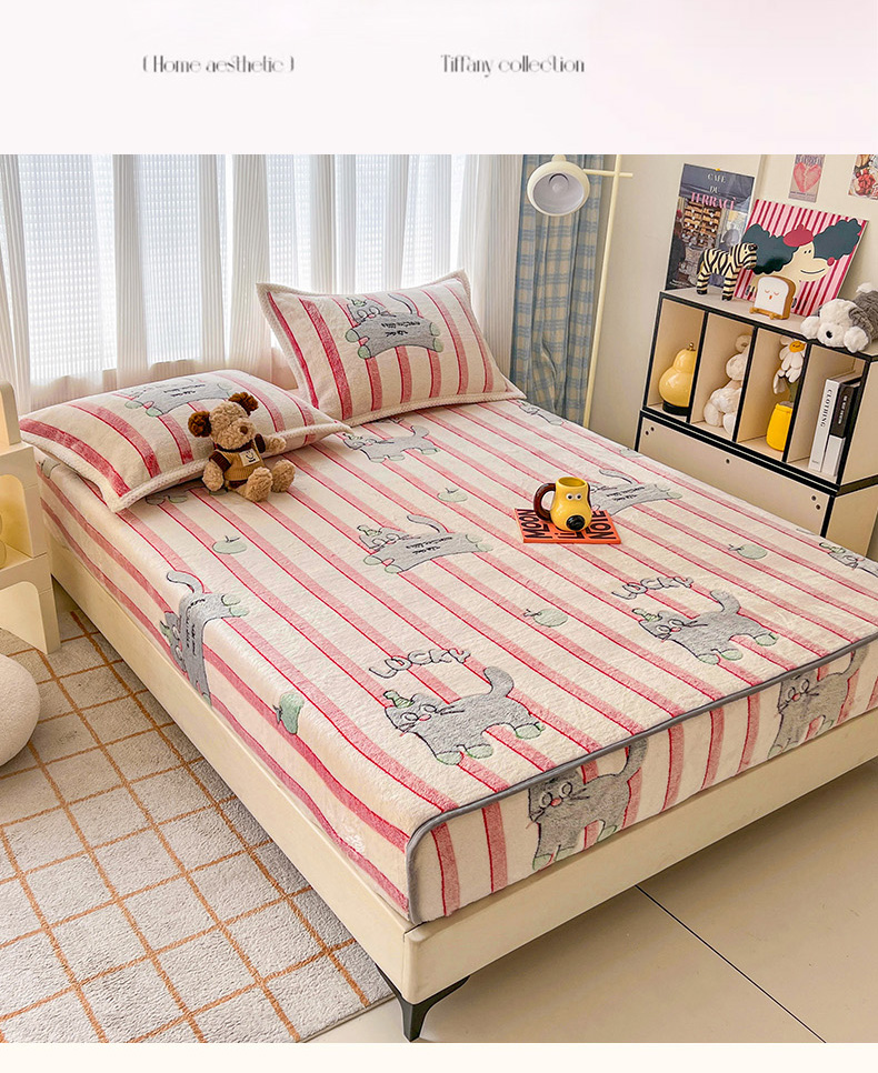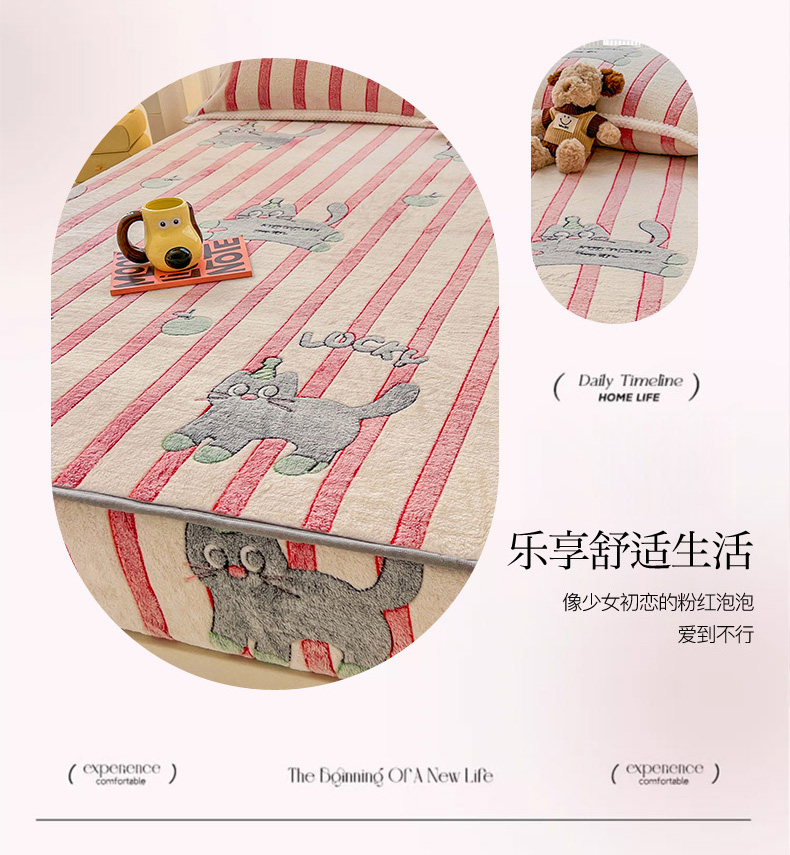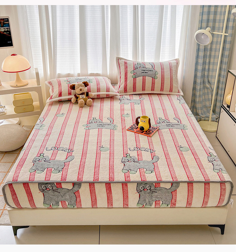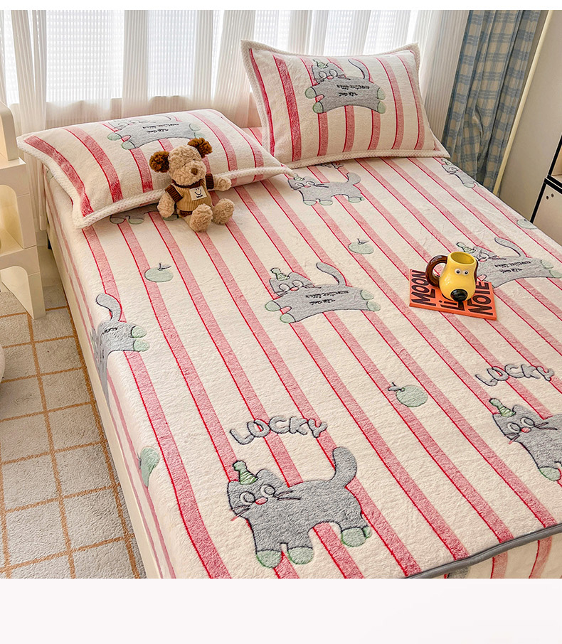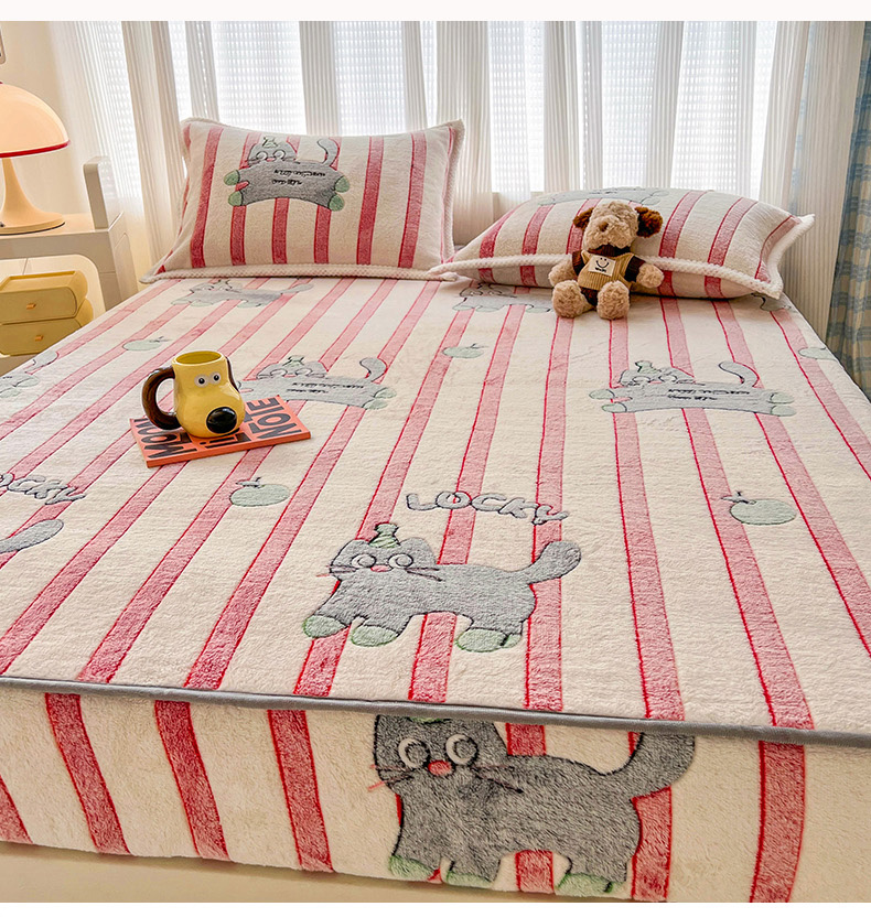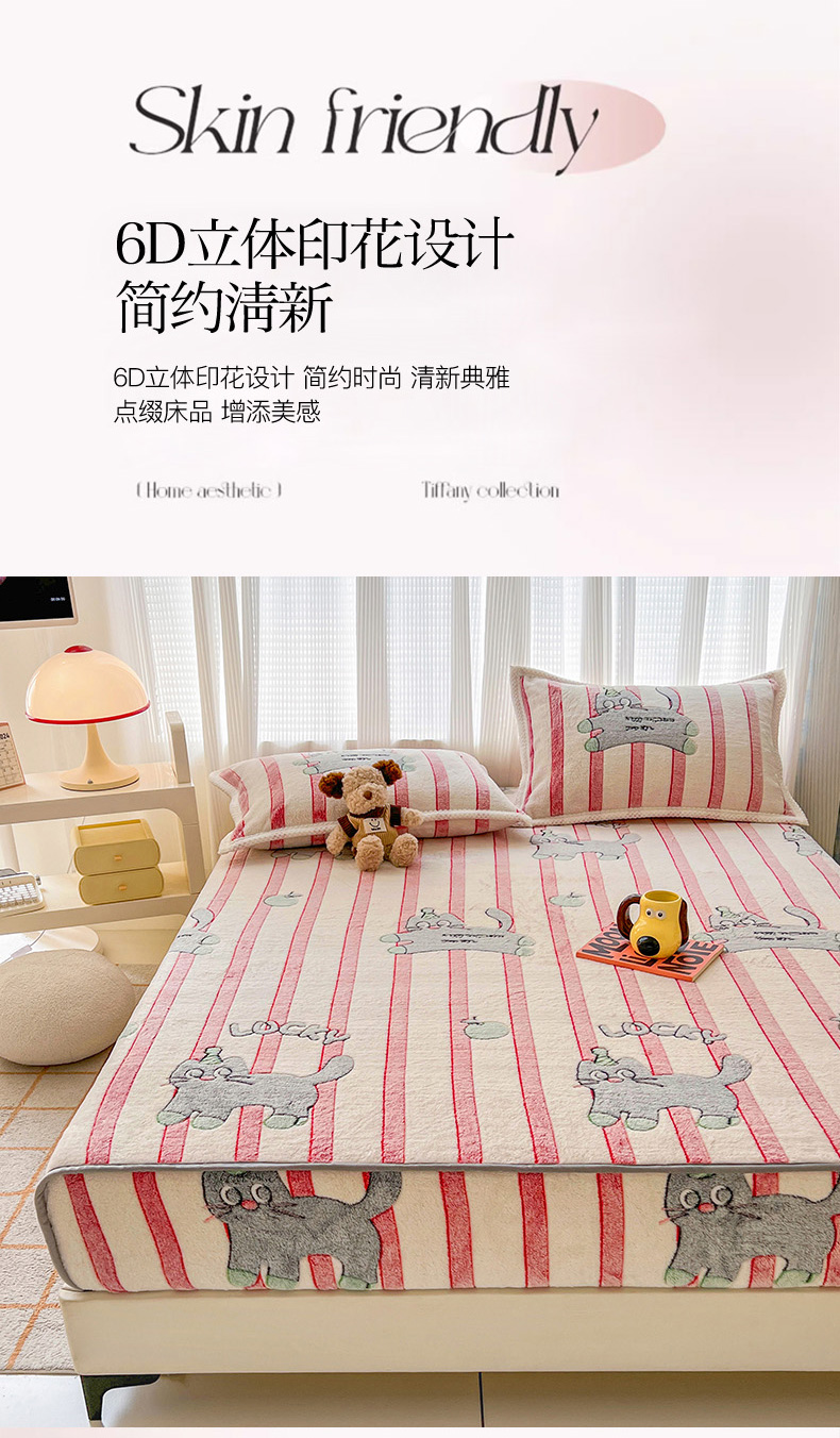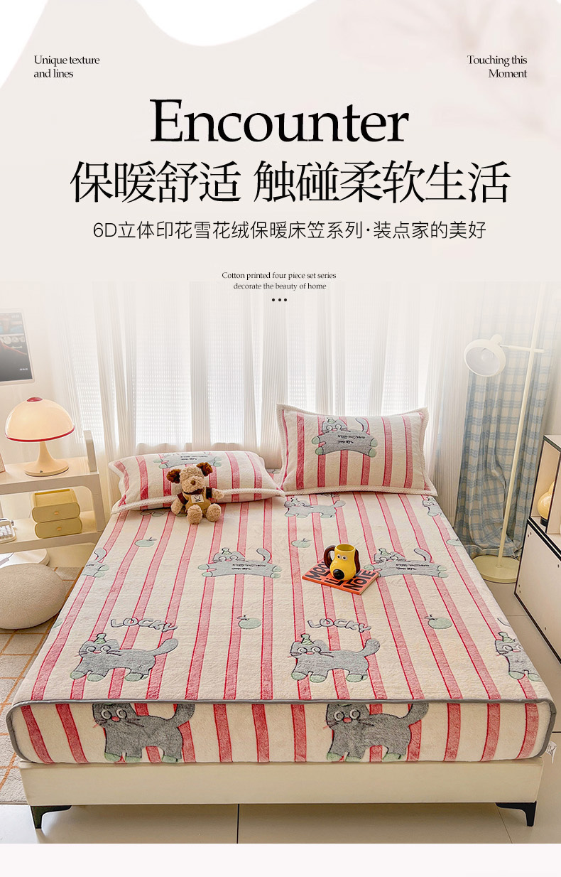 倾慕家纺 2024新款加厚保暖6D立体雪花绒系列-单床笠 时尚猫咪
