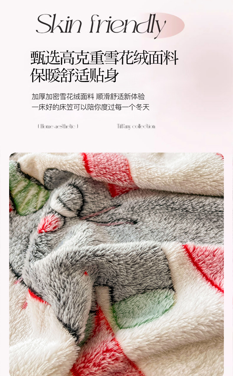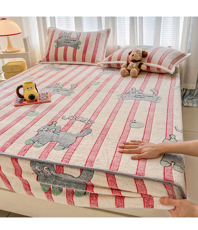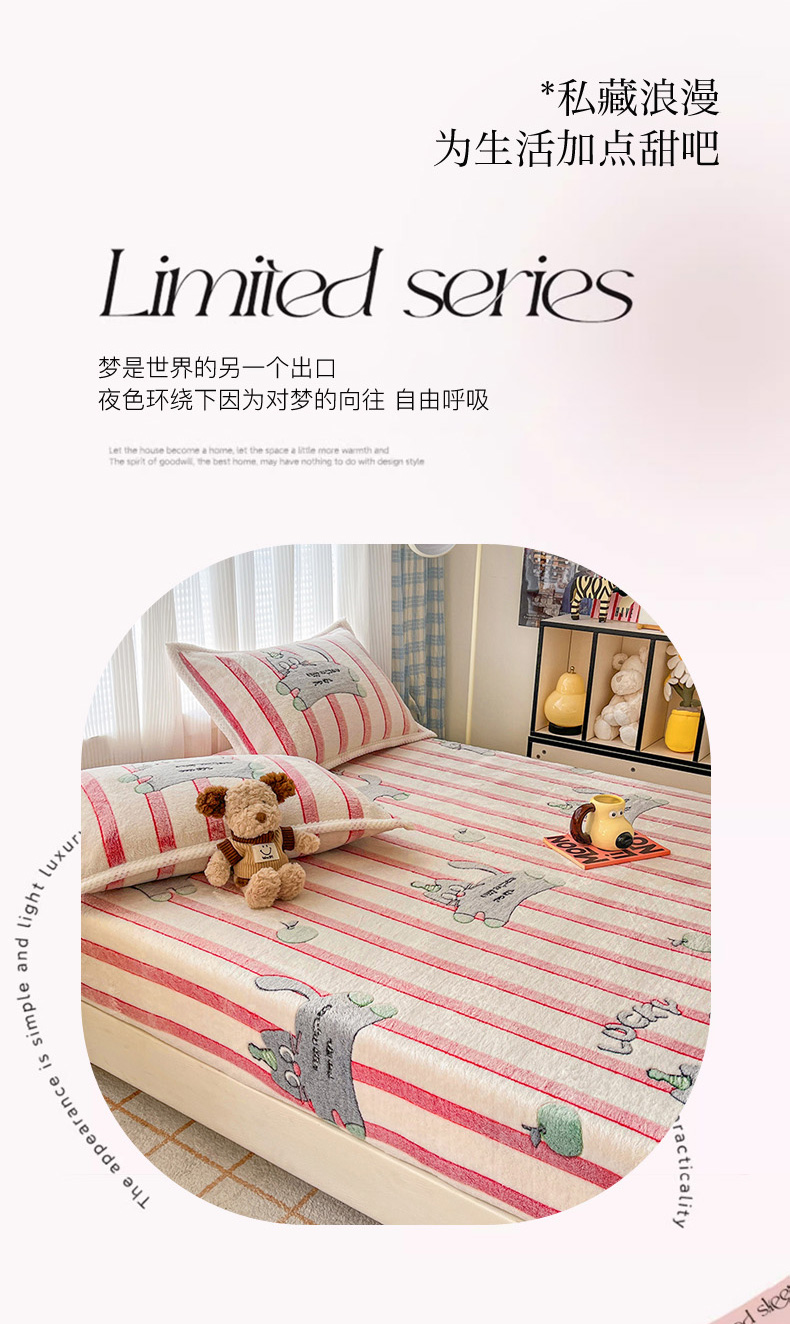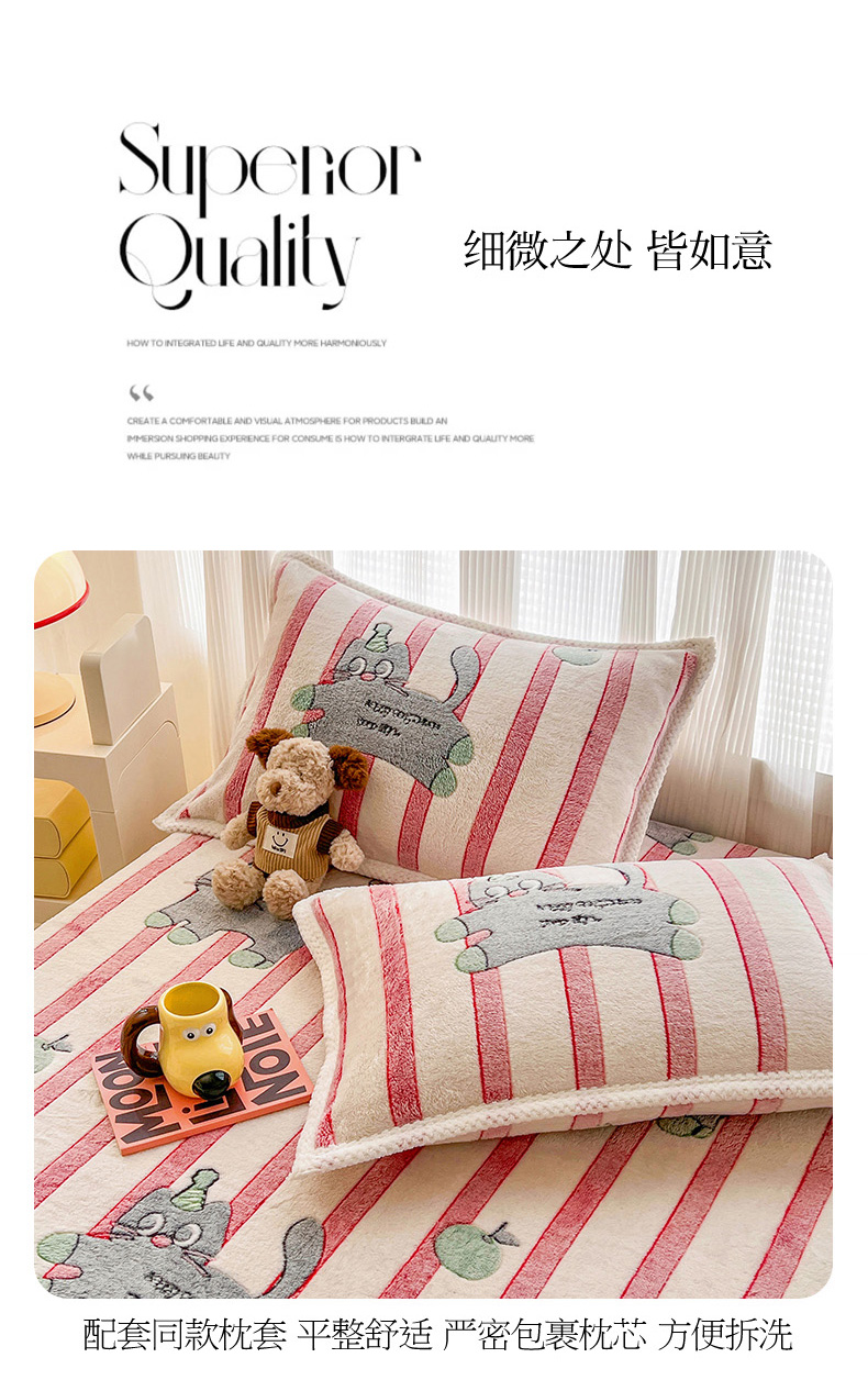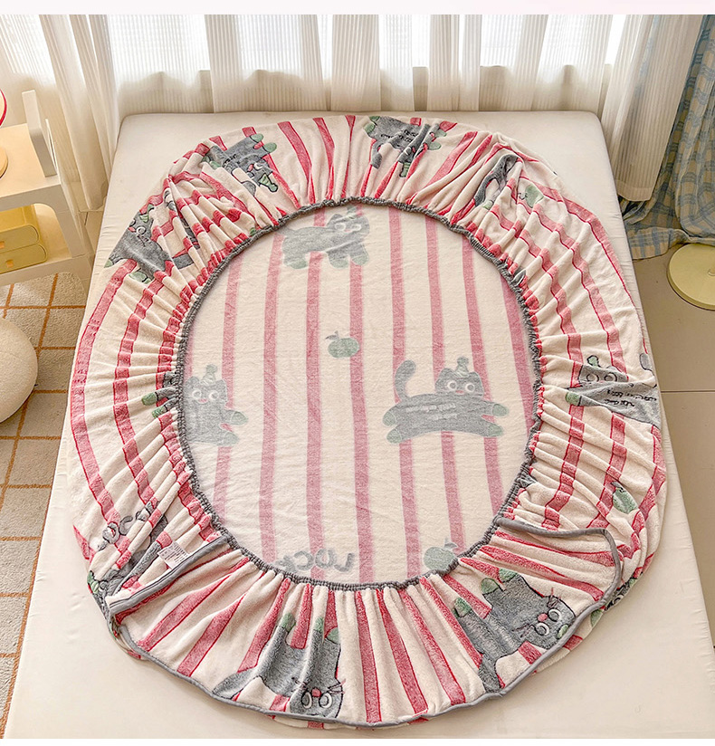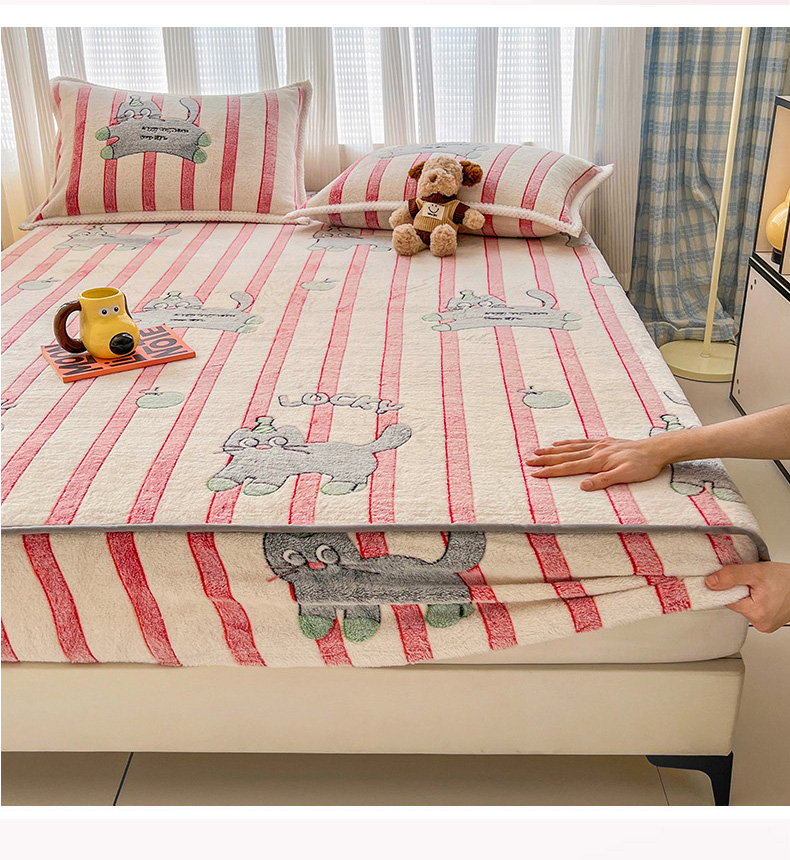 倾慕家纺 2024新款加厚保暖6D立体雪花绒系列-单床笠 时尚猫咪