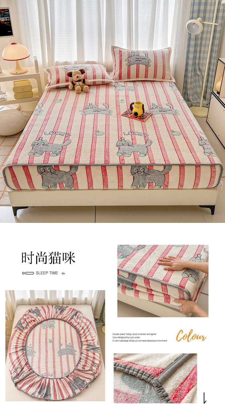 商品名称:倾慕家纺 2024新款加厚保暖6D立体雪花绒系列-单床笠 时尚猫咪