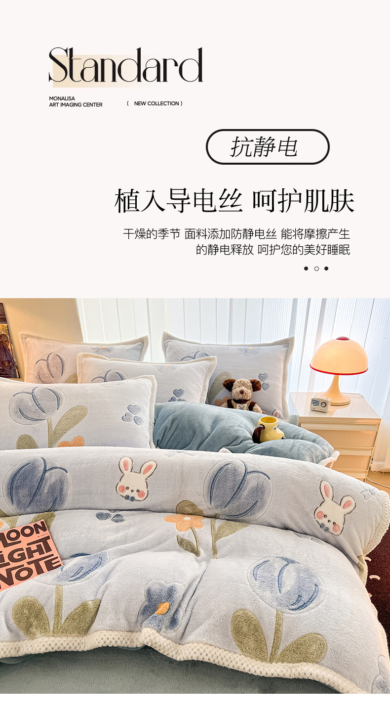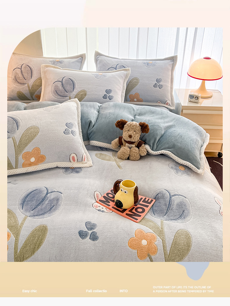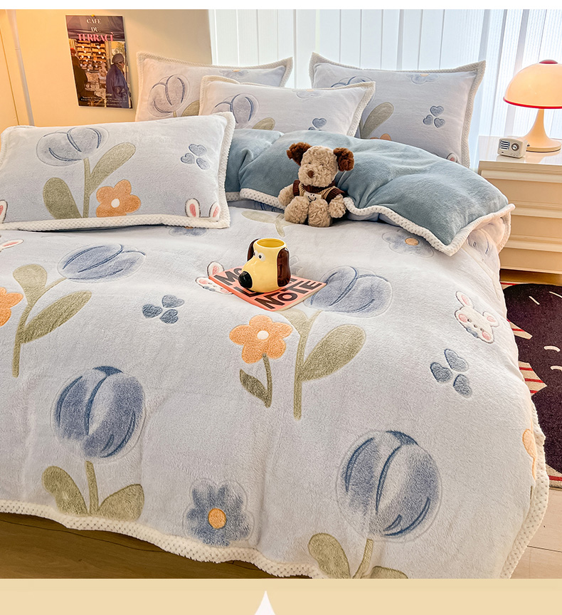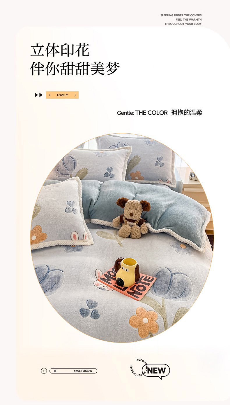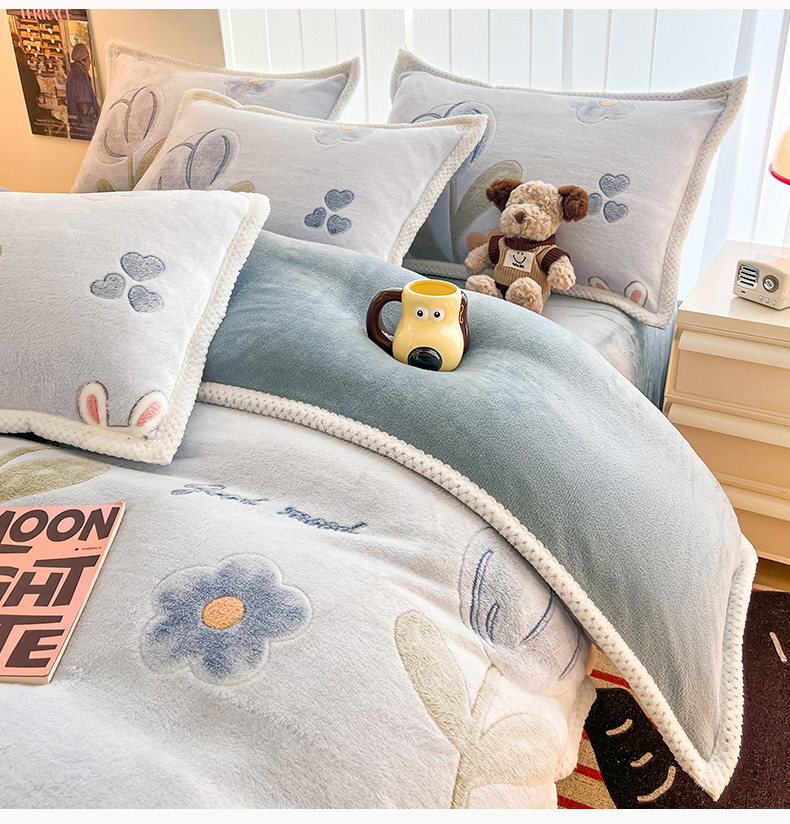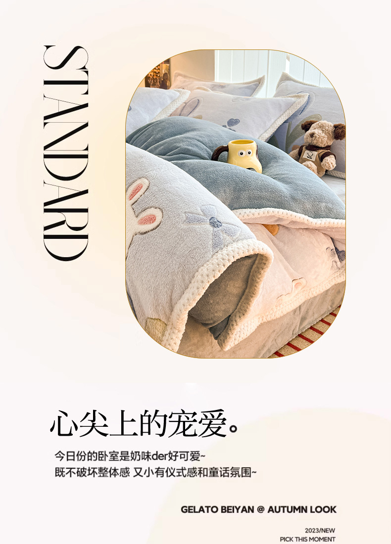 (总)倾慕家纺 2025新款卡通毛巾绣加厚保暖牛奶绒四件套,爱心女孩,咖啡小狗,猫咪熊兔,迷你小车,圣诞树熊,音乐企鹅
