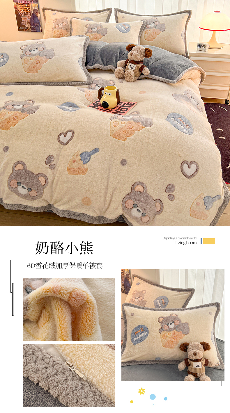(总)倾慕 2025新款6D立体雪花绒系列四件套,北欧小熊,波波兔,波点头像,格格狗,欢乐小虎,活泼小兔,咖啡熊兔,礼物小狗,萌宠小兔,奶茶小龙灰,奶茶小龙蓝,奶茶小熊,汽车小熊,森林公园,时光小狗,时尚猫咪,小皮皮