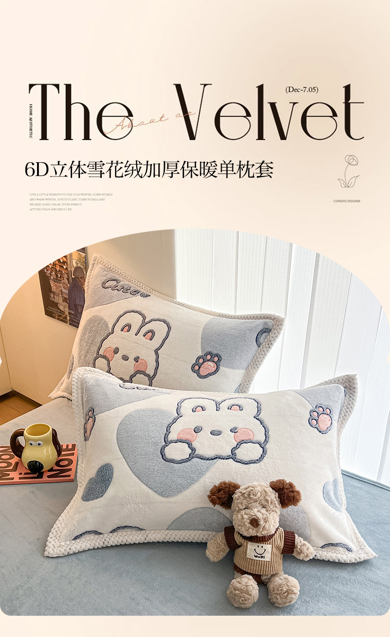 倾慕家纺 2024新款加厚保暖6D立体雪花绒系列-单枕套 时光小狗