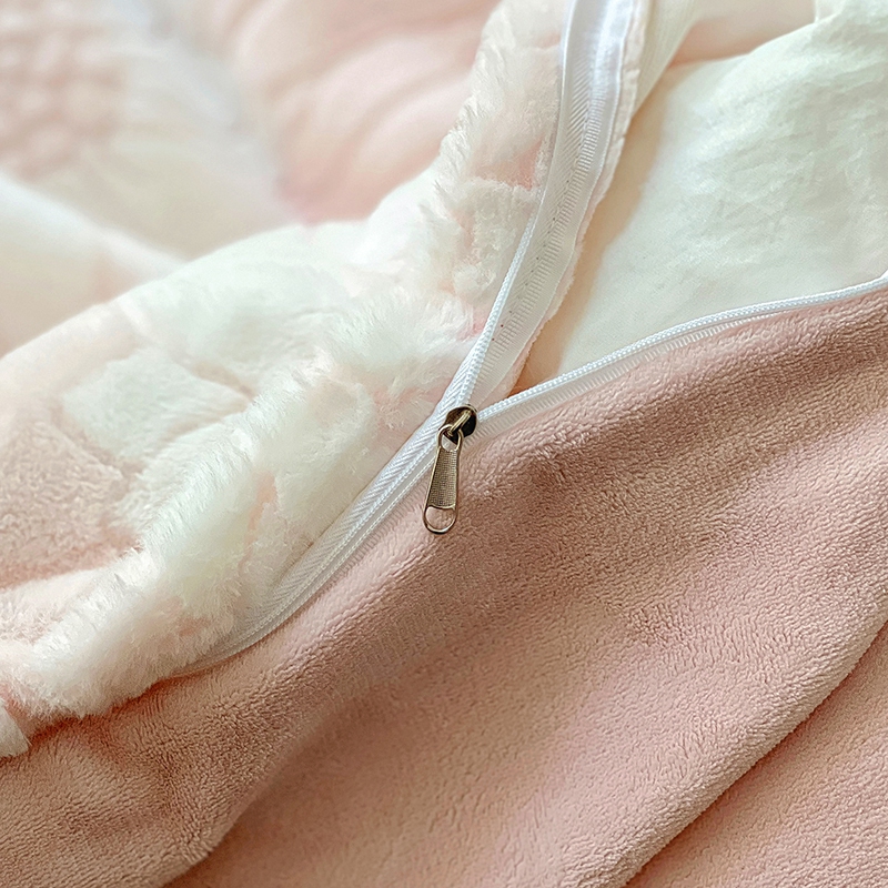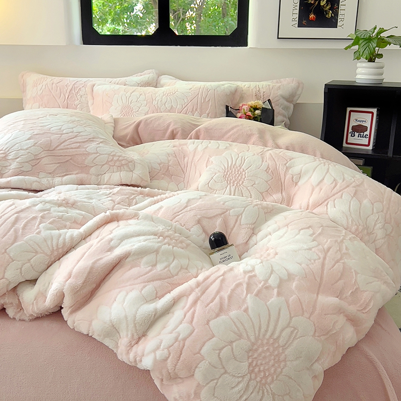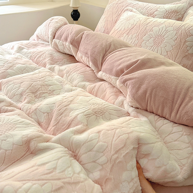 昊川家纺 2024新款330g兔毛仿皮草超奢3D立体浮雕四件套9斤 秘密花园-粉