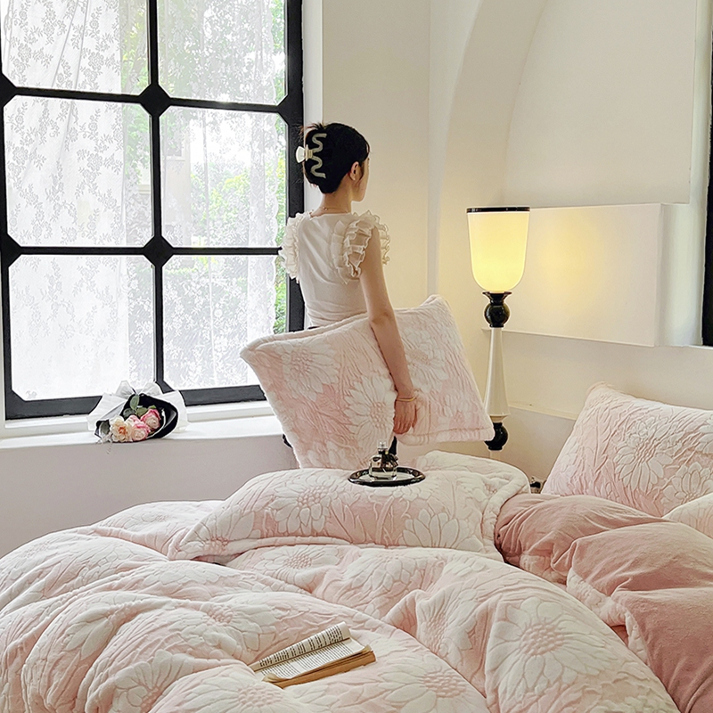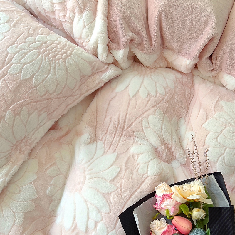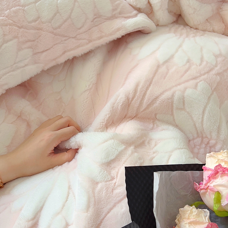 商品名称:昊川家纺 2024新款330g兔毛仿皮草超奢3D立体浮雕四件套9斤 秘密花园-粉