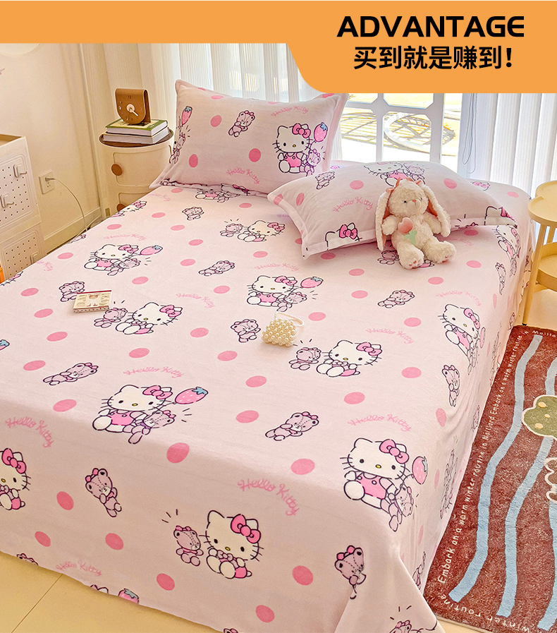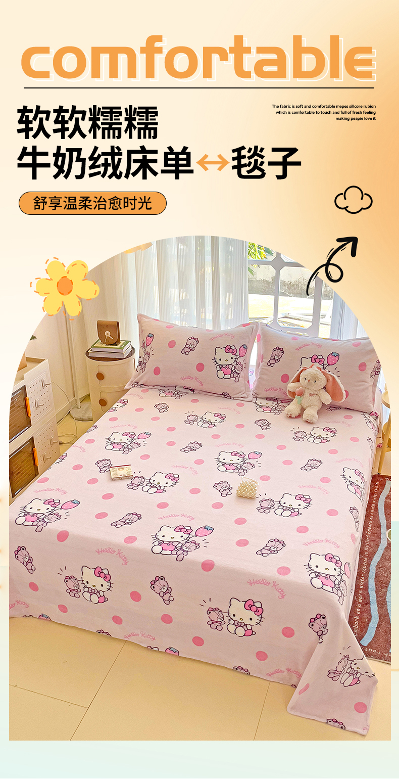 • 91家纺网 家纺一手货源 找家纺 名兮 2024新款经典奥特曼-三丽鸥高克重牛奶绒床单-盖毯 小熊kt