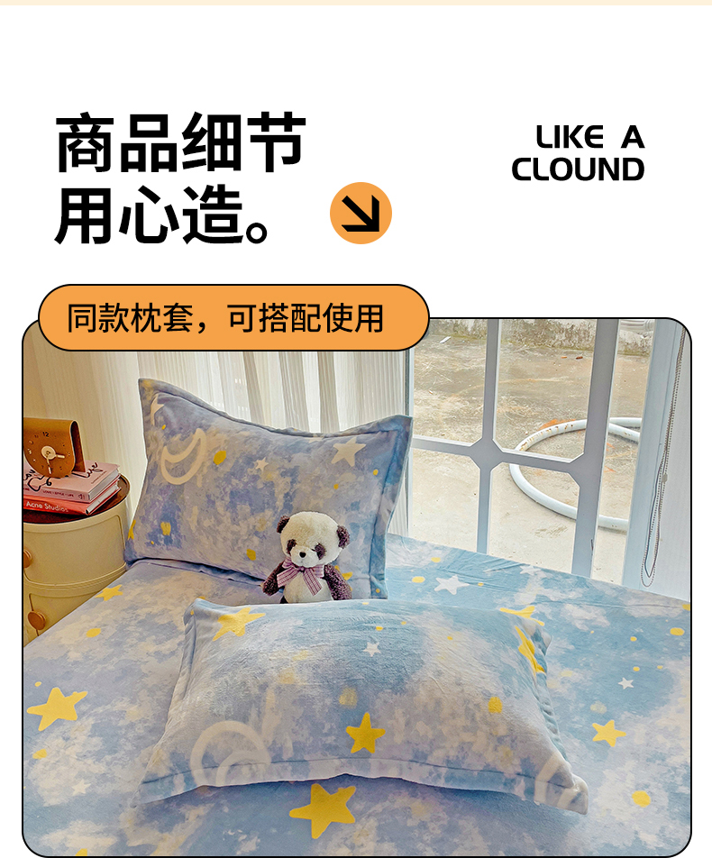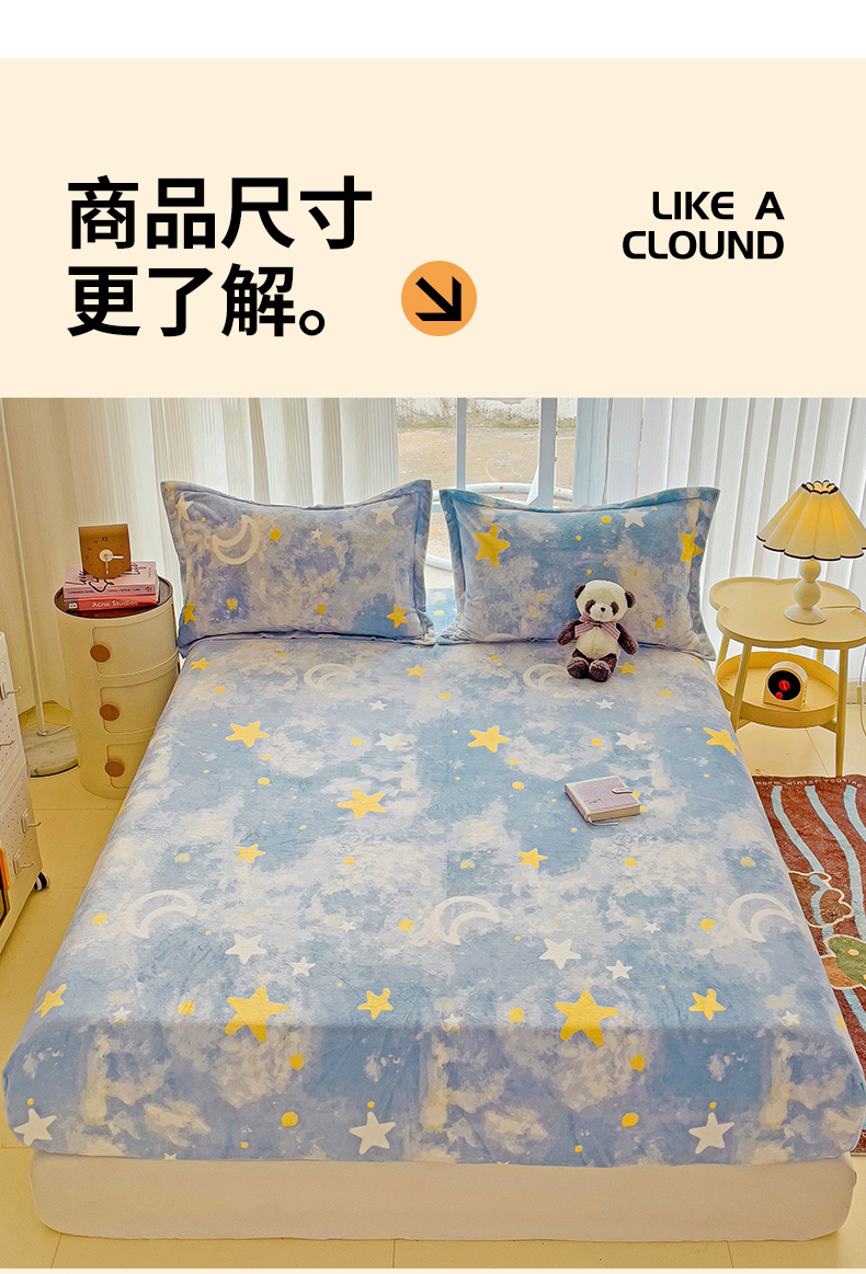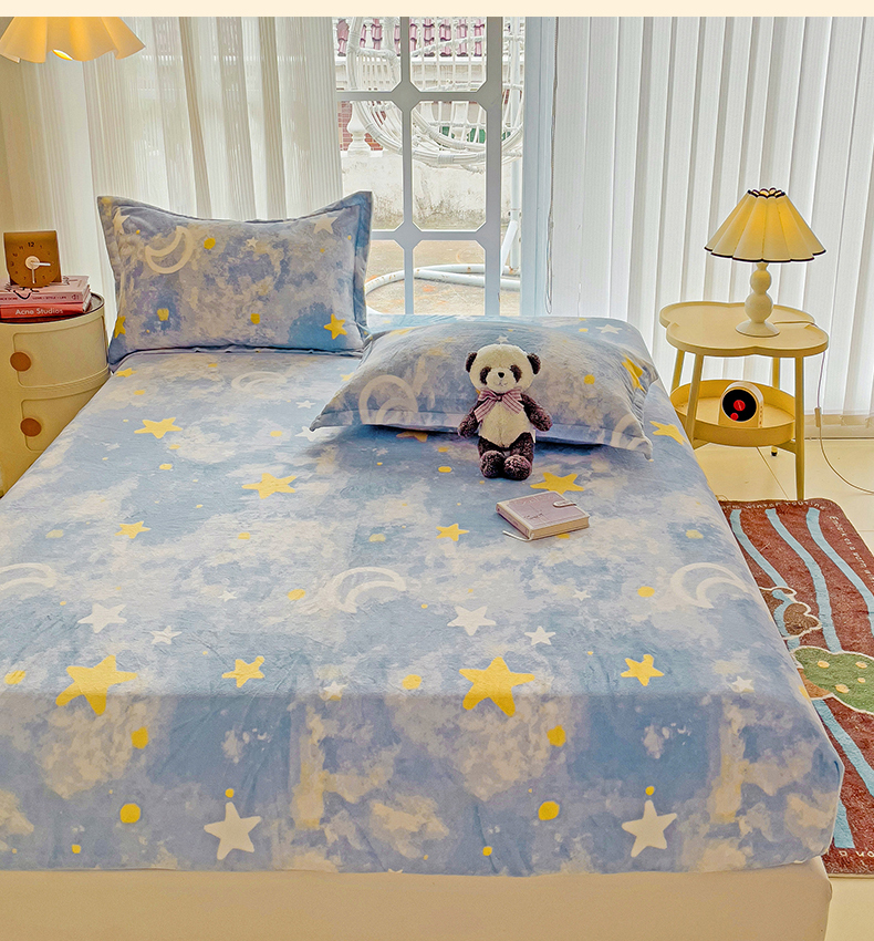 • 91家纺网 家纺一手货源 找家纺 名兮 2024卡通时尚风高克重牛奶绒床笠 满天星