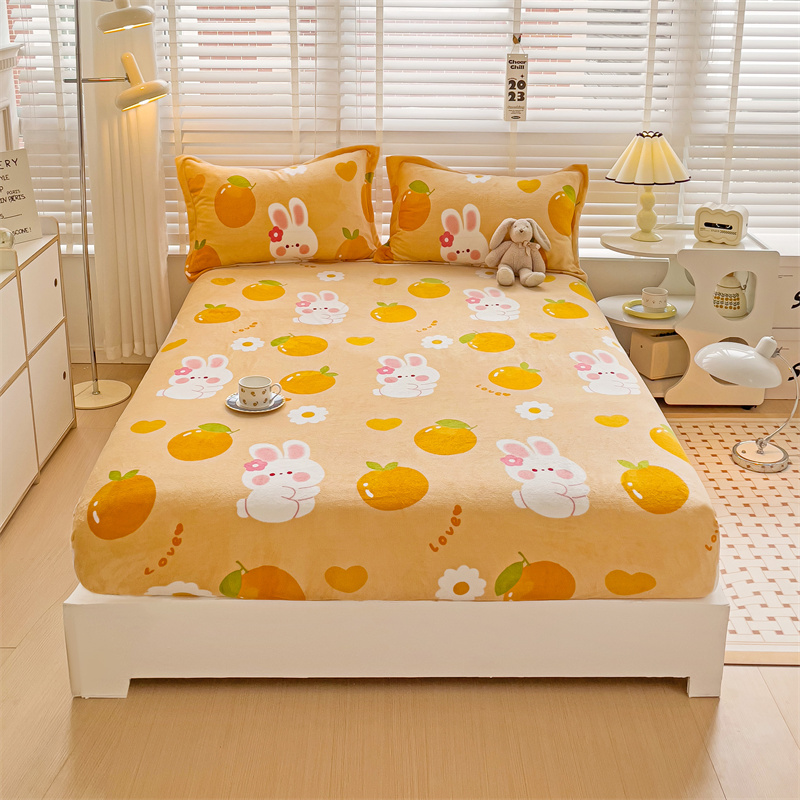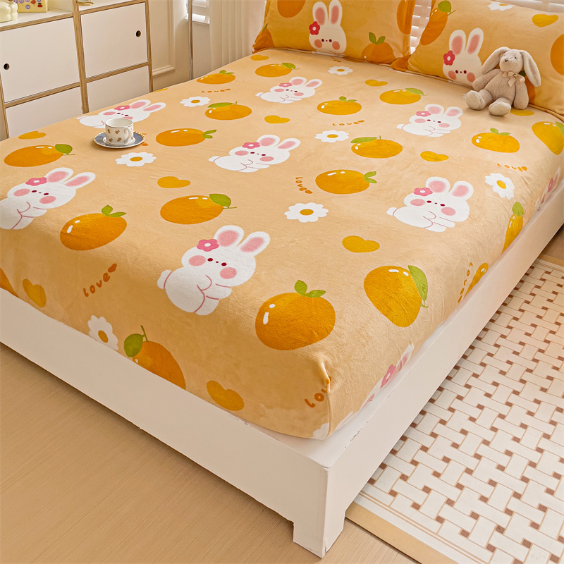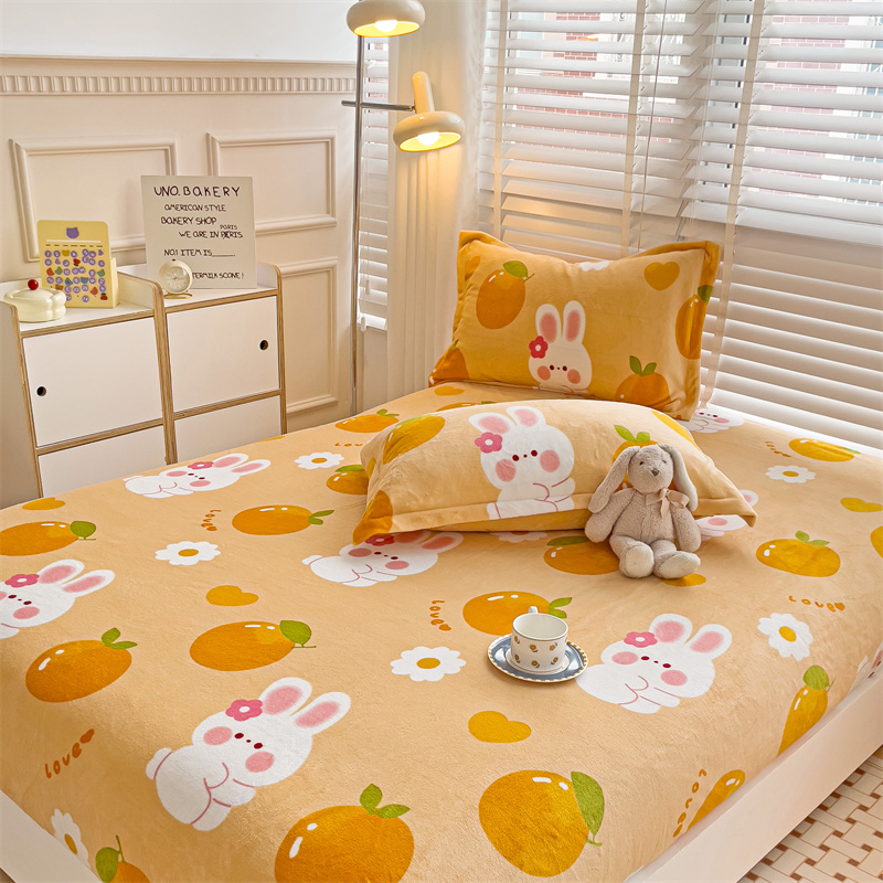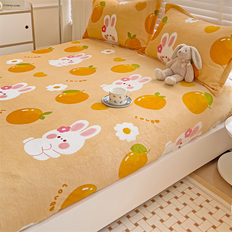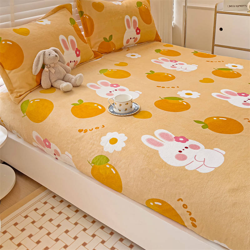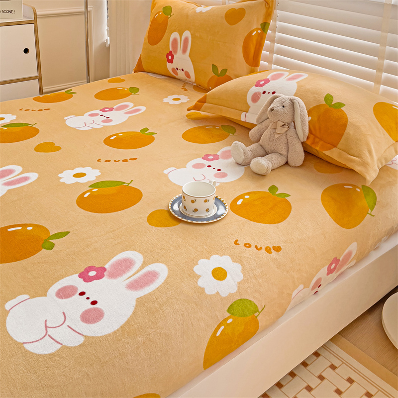 • 91家纺网 家纺一手货源 找家纺 名兮 2024卡通时尚风高克重牛奶绒床笠 兔兔派对
