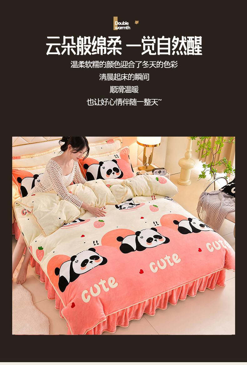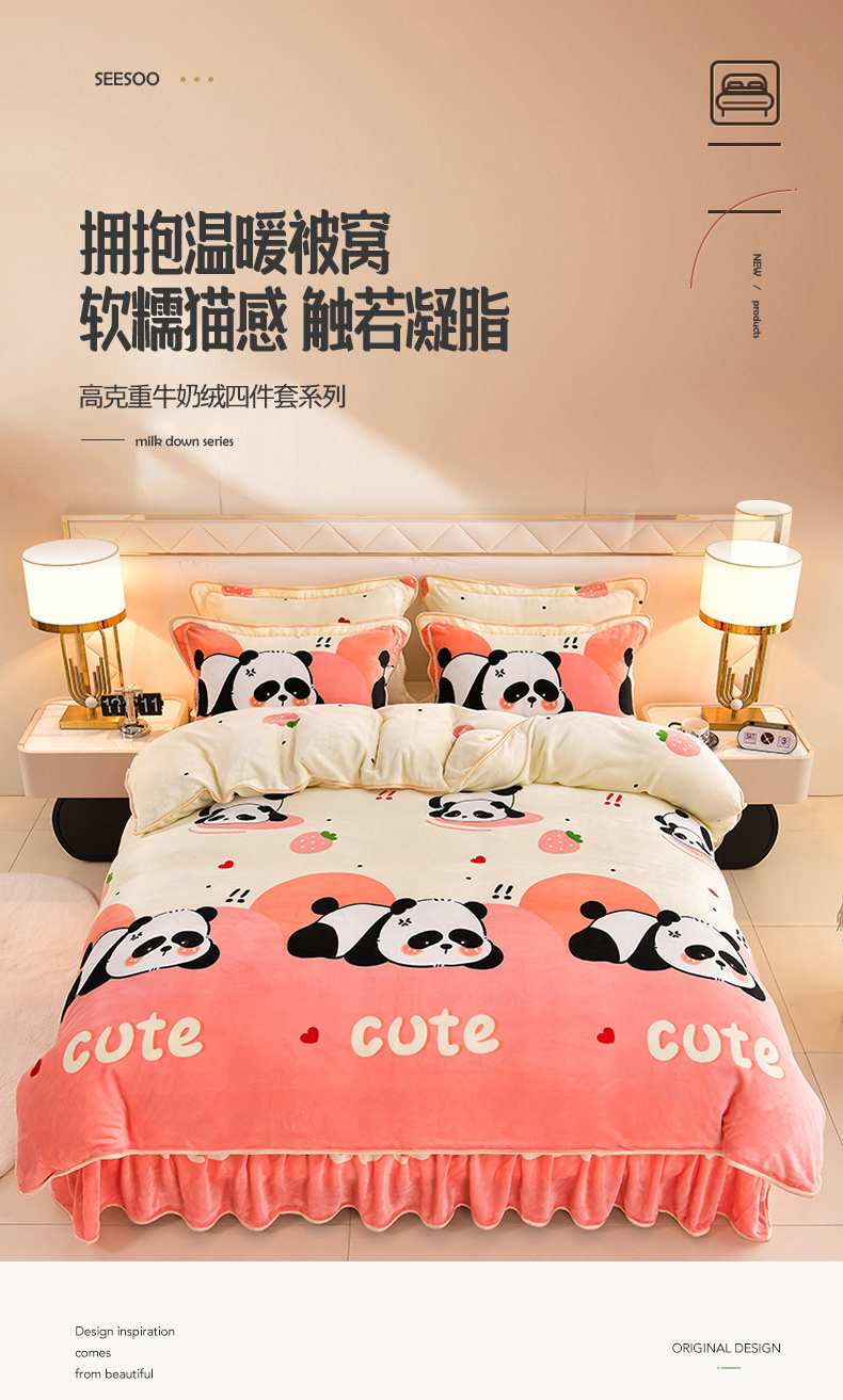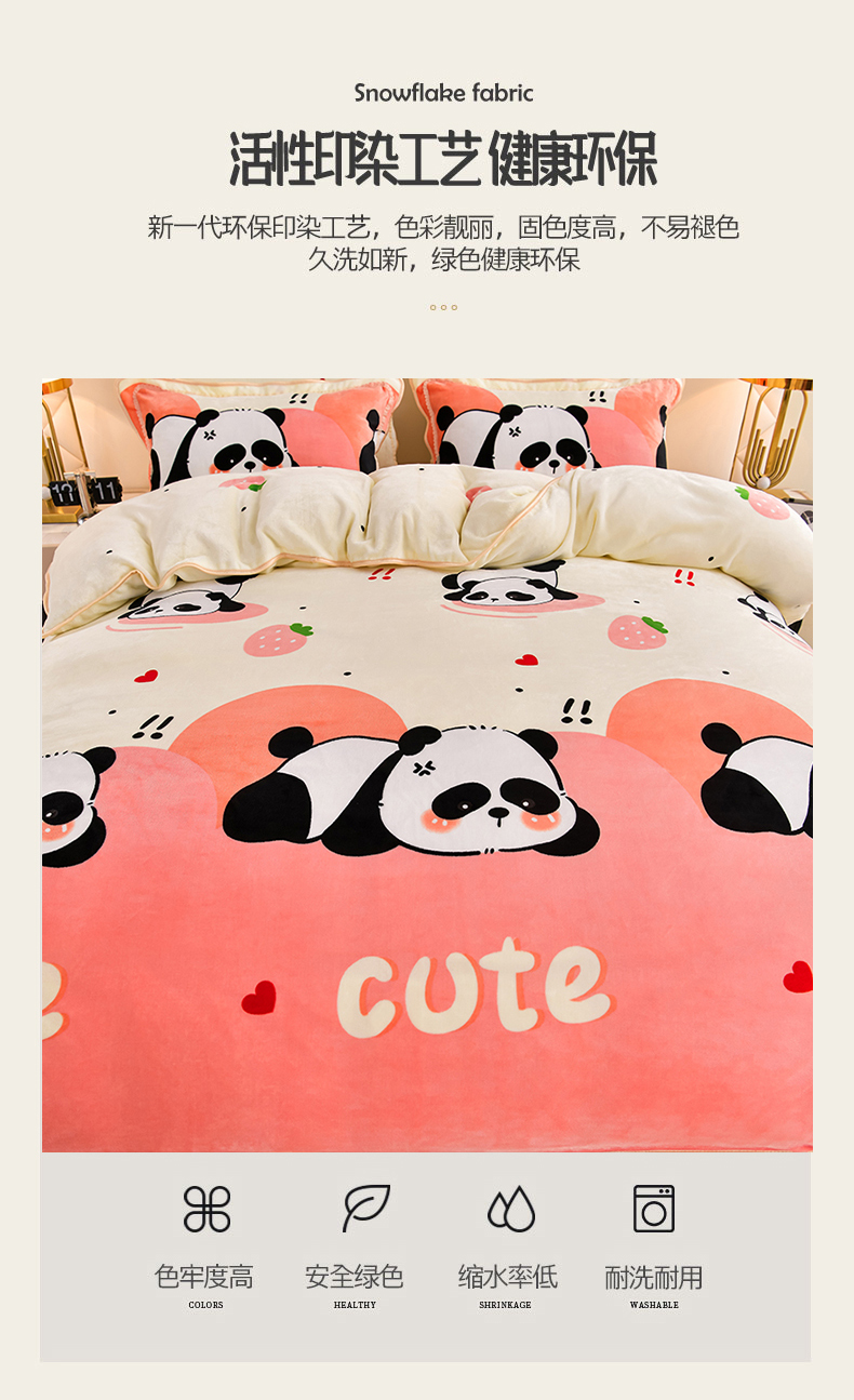 沐妍家纺 2024新款7斤牛奶法莱绒金貂绒印花四件套 草莓熊