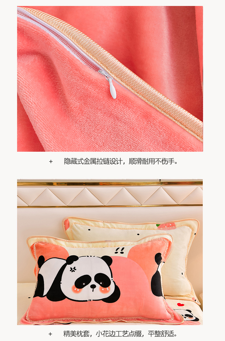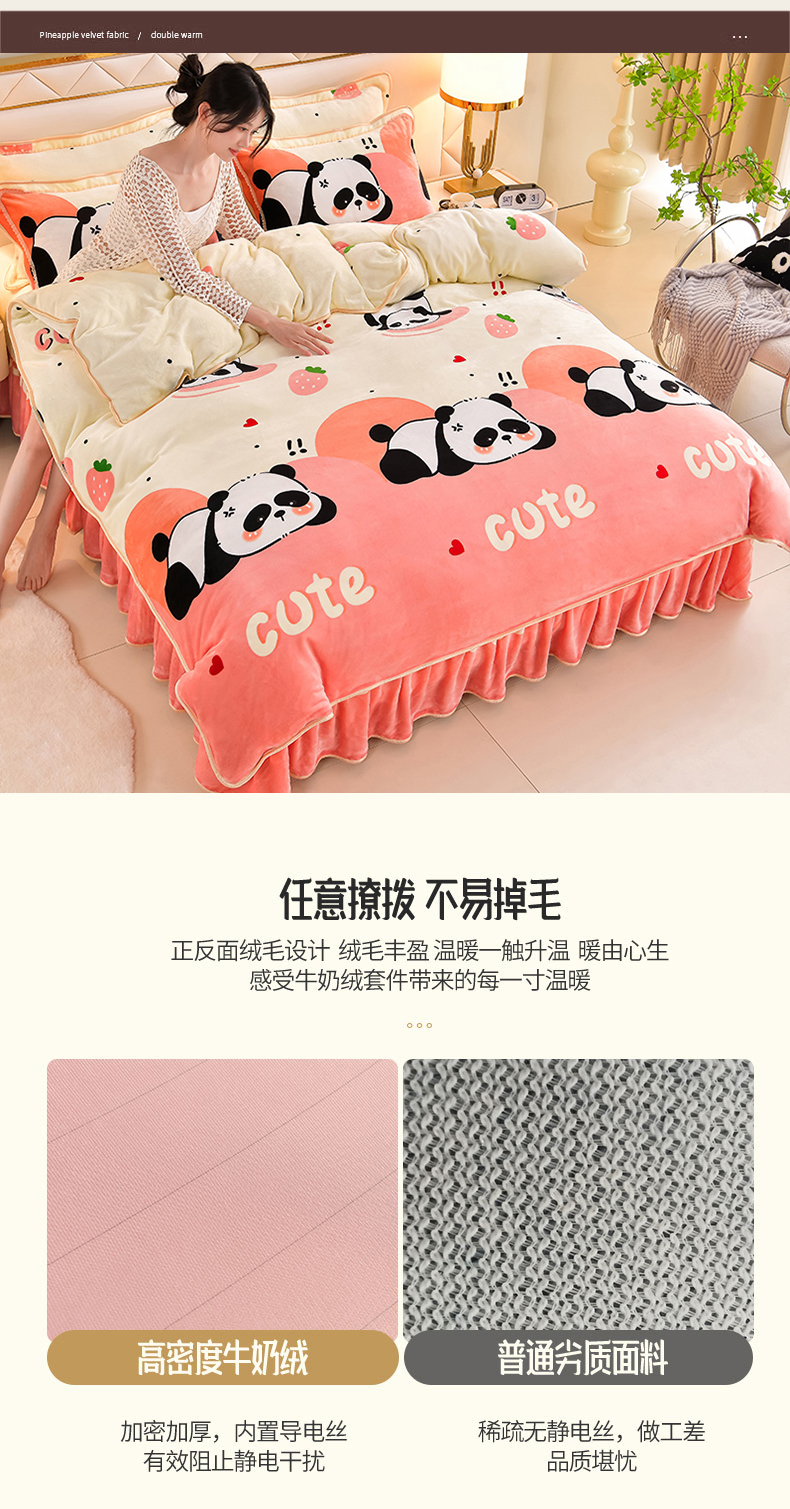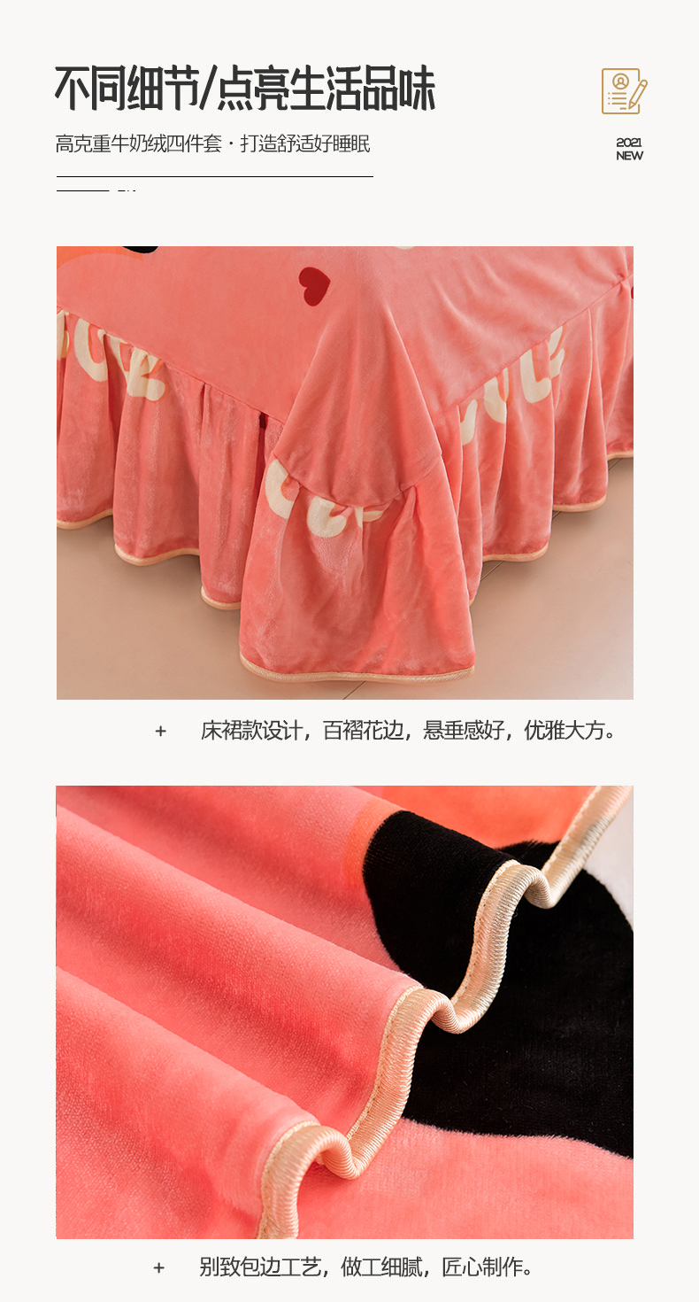 沐妍家纺 2024新款7斤牛奶法莱绒金貂绒印花四件套 草莓熊