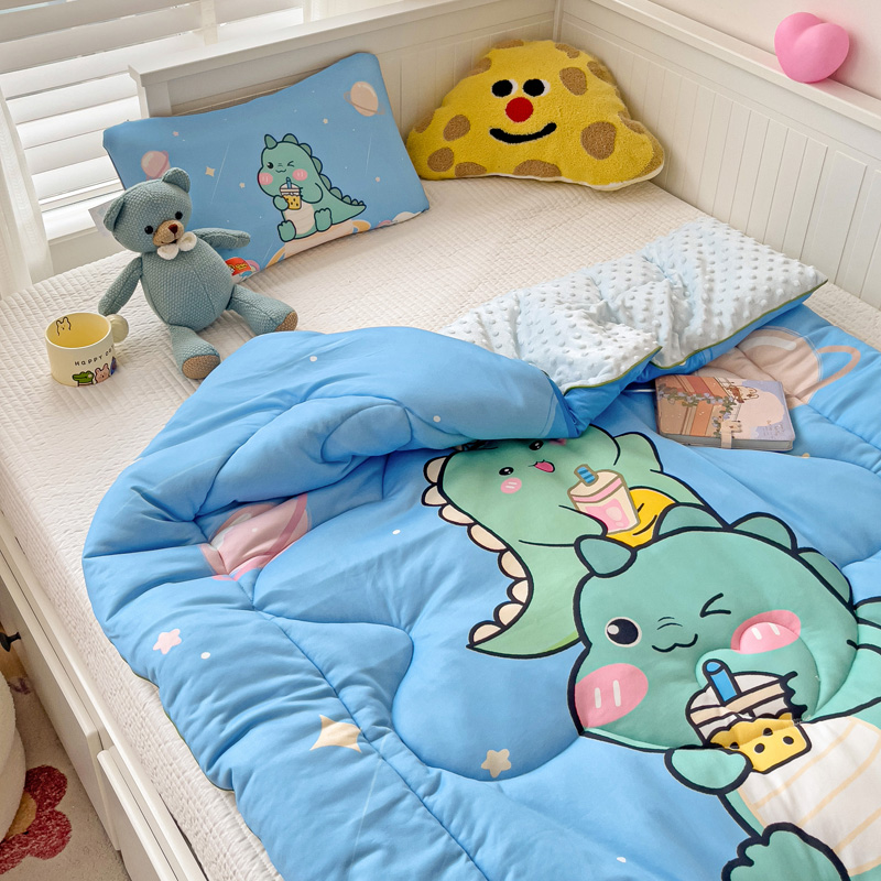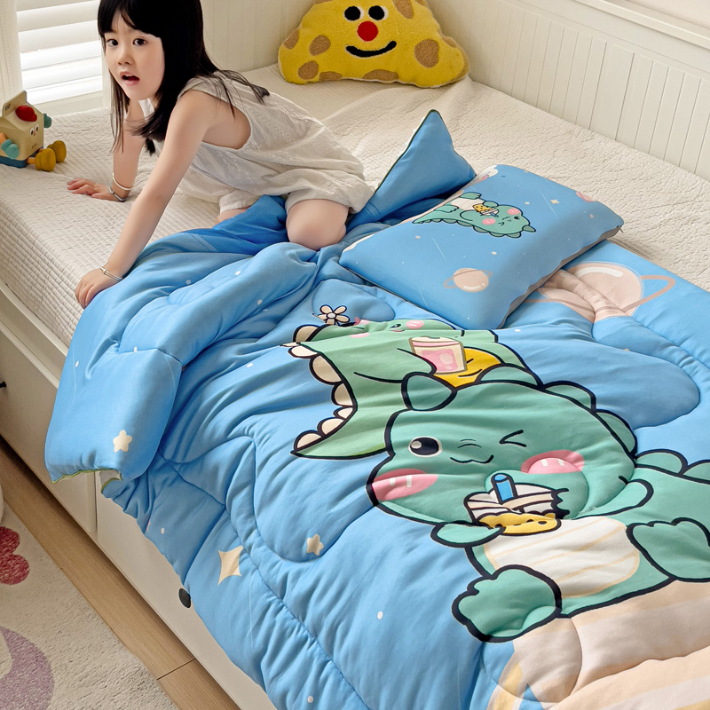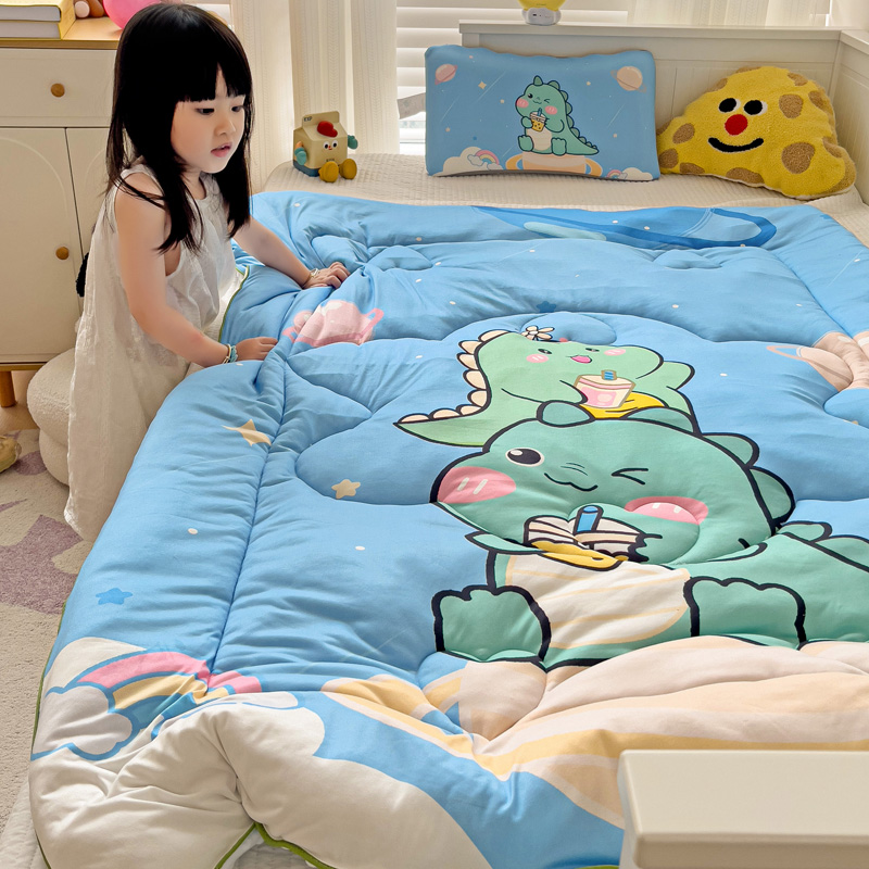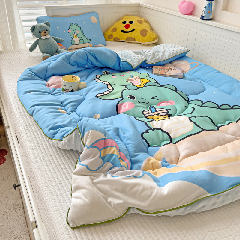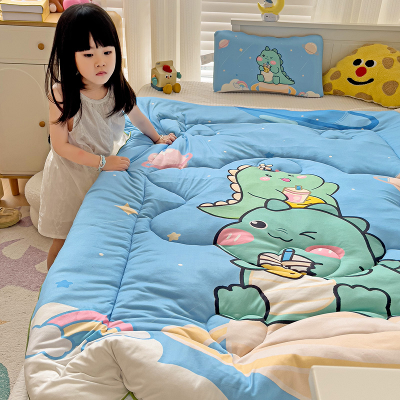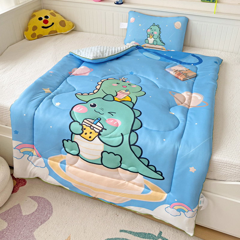 沁童儿童用品店 2024新款大版针织棉安抚豆豆绒儿童被被子被芯 太空恐龙