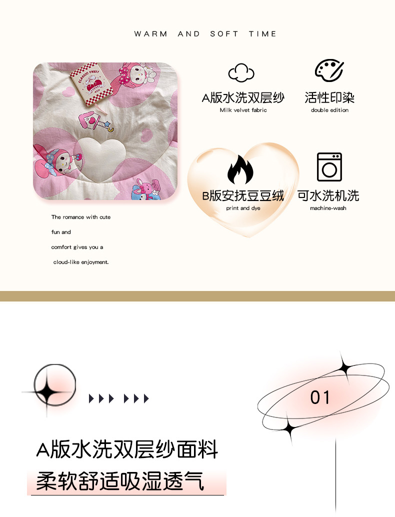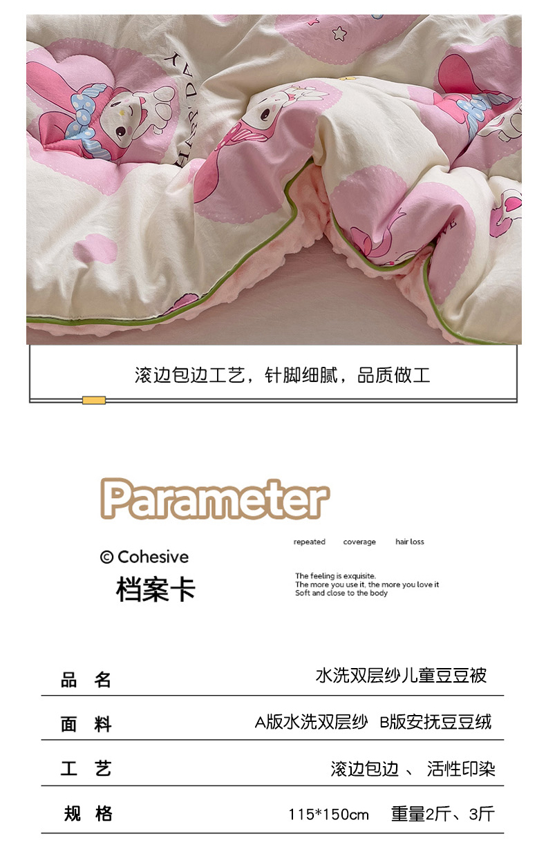 (总)沁童儿童用品店 2024新款水洗双层纱儿童豆豆被被子被芯
