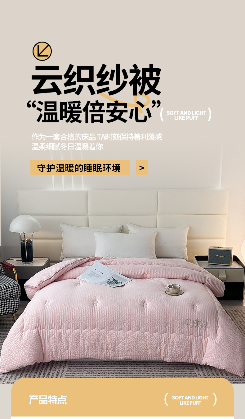商品名称:81号家纺 2024新款轻奢纯色云织纱被子被芯冬被春秋被大豆被 轻奢-淡粉