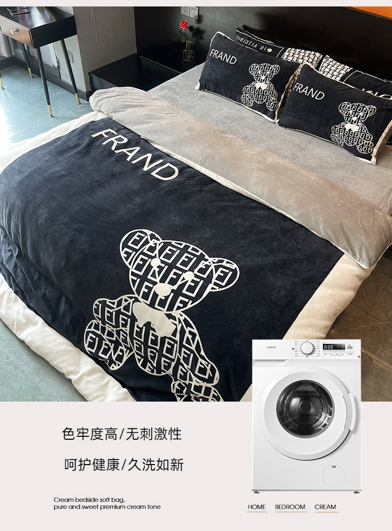 当前位置: 91家纺网 > 商品网购 > 床品套件 > 四件套 > 牛奶绒四件套 > 色鬼 2024新款印花牛奶绒四件套仿大牌风直播网红爆款四件套 小黑熊