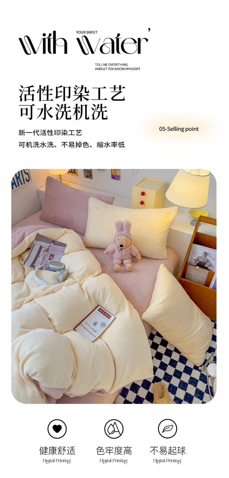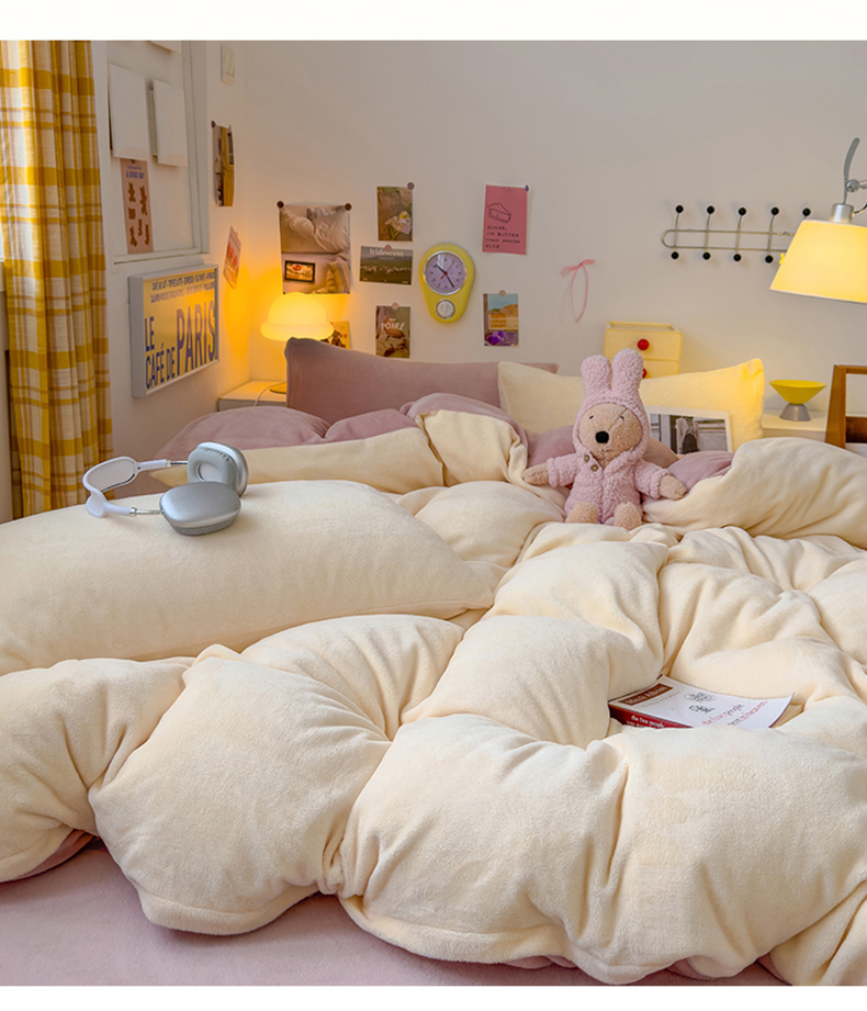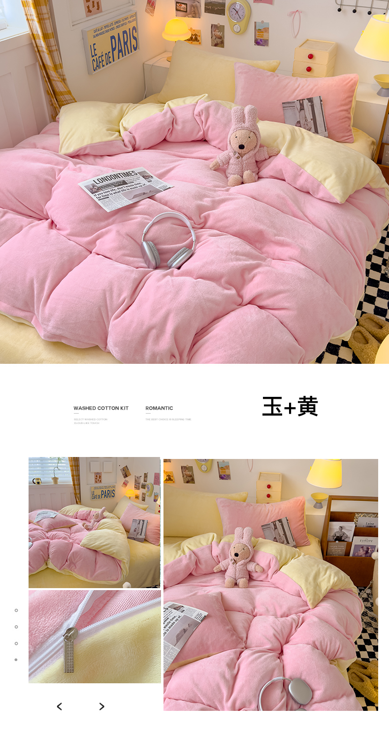 当前位置: 91家纺网 > 商品网购 > 床品套件 > 四件套 > 牛奶绒四件套 > 2024新款高克重亲肤牛奶绒四件套-场景二 雾蓝+黄