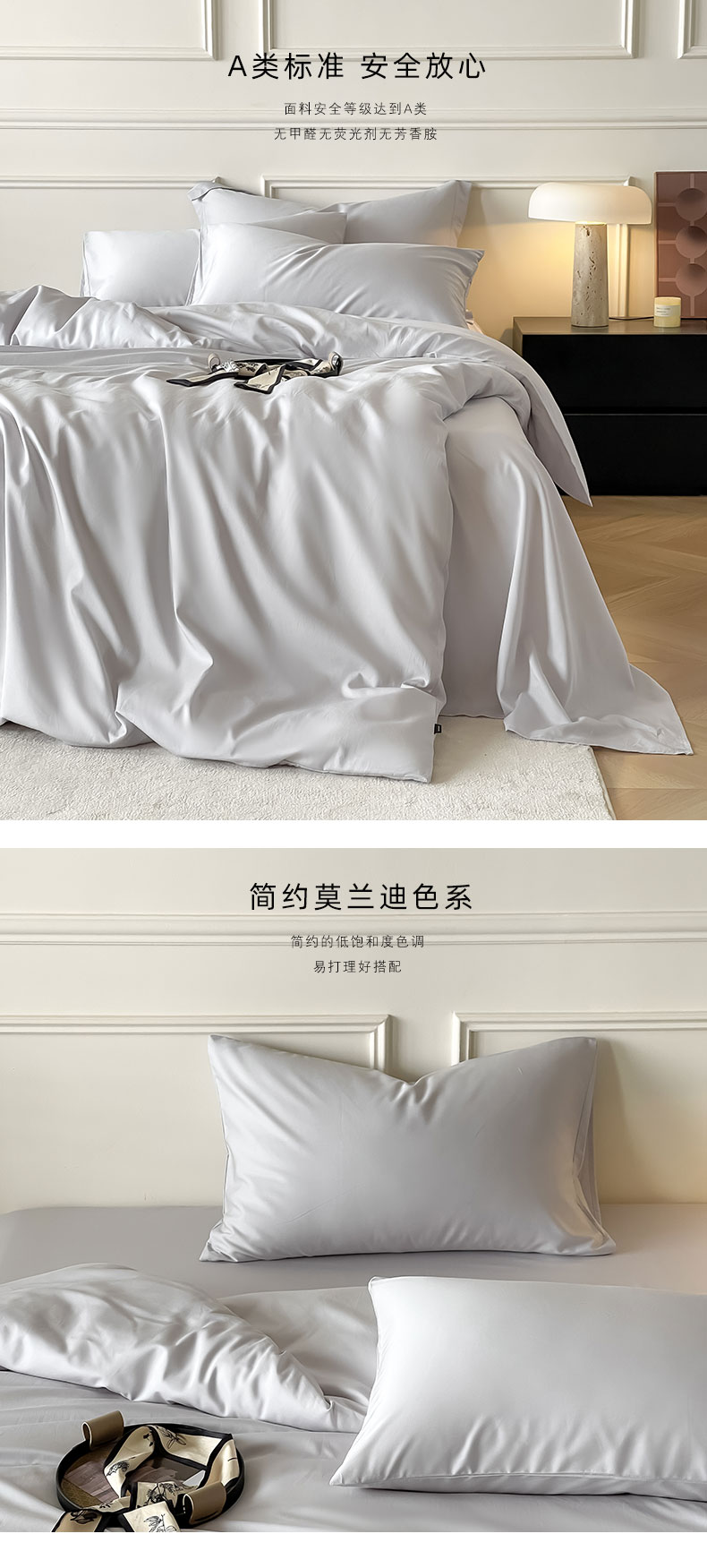 Mr.pig猪先生水洗棉 2024新款天丝棉纯色四件套 朦胧灰