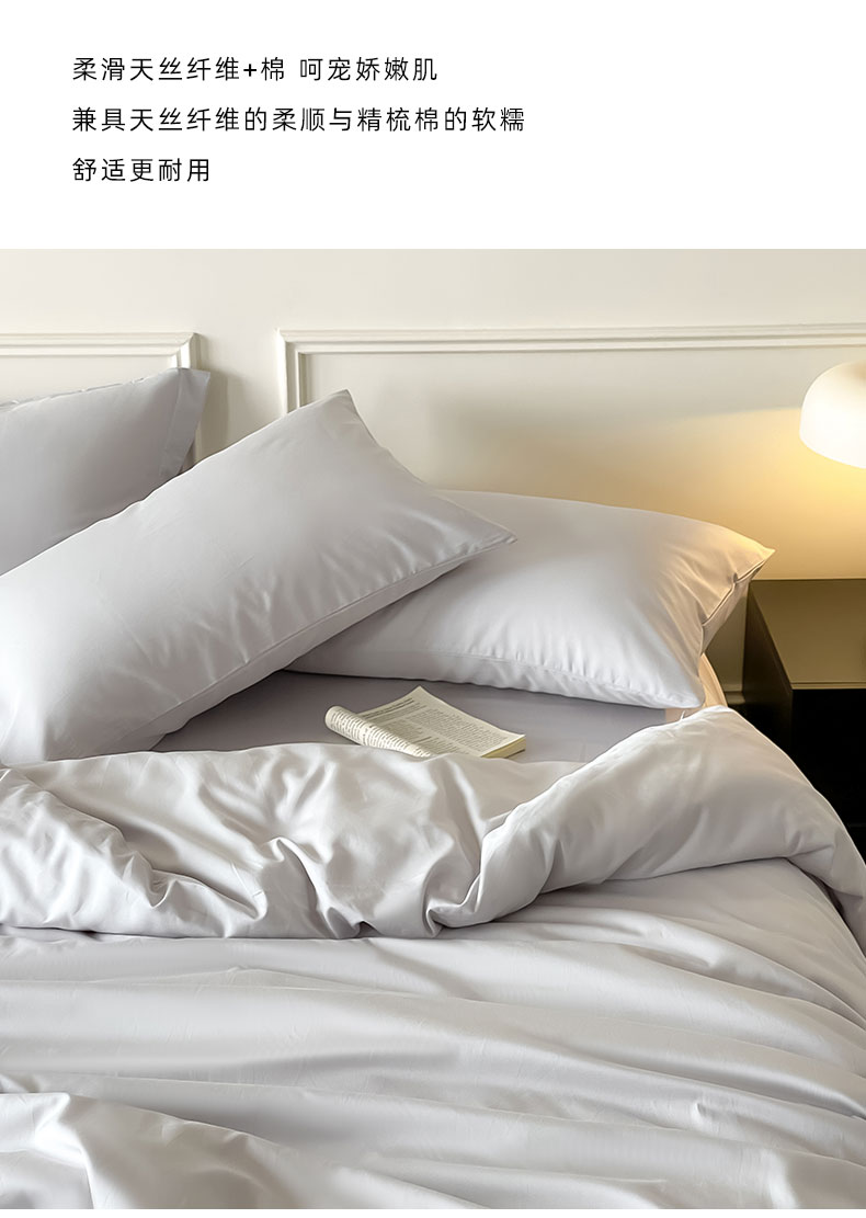 商品名称:Mr.pig猪先生水洗棉 2024新款天丝棉纯色四件套 朦胧灰