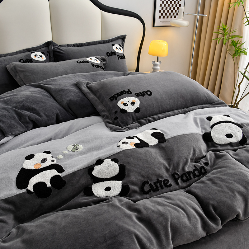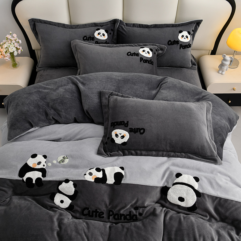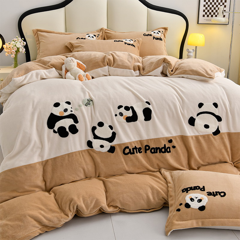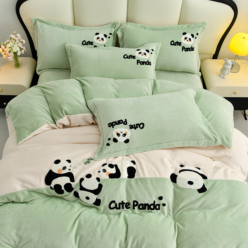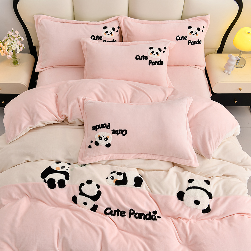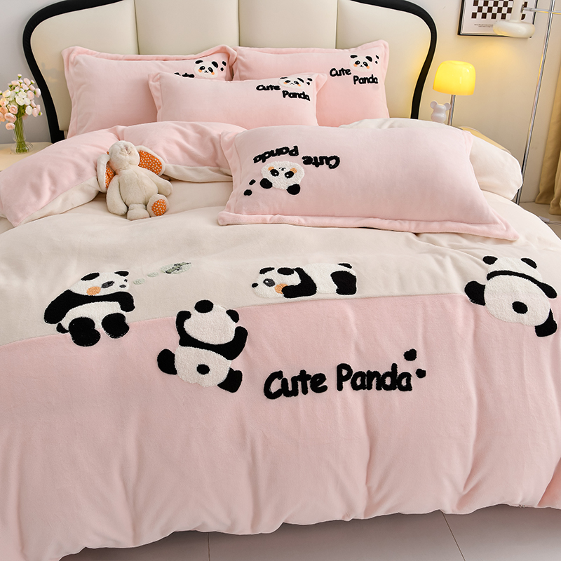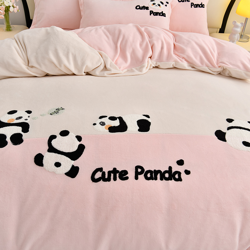 当前位置: 91家纺网 > 商品网购 > 床品套件 > 四件套 > 牛奶绒四件套 > 一左一右 2024秋冬新款全消光高克重保暖加厚卡通拼接毛巾绣花牛奶绒四件套(提供买家秀) 熊猫集会-仲夏粉