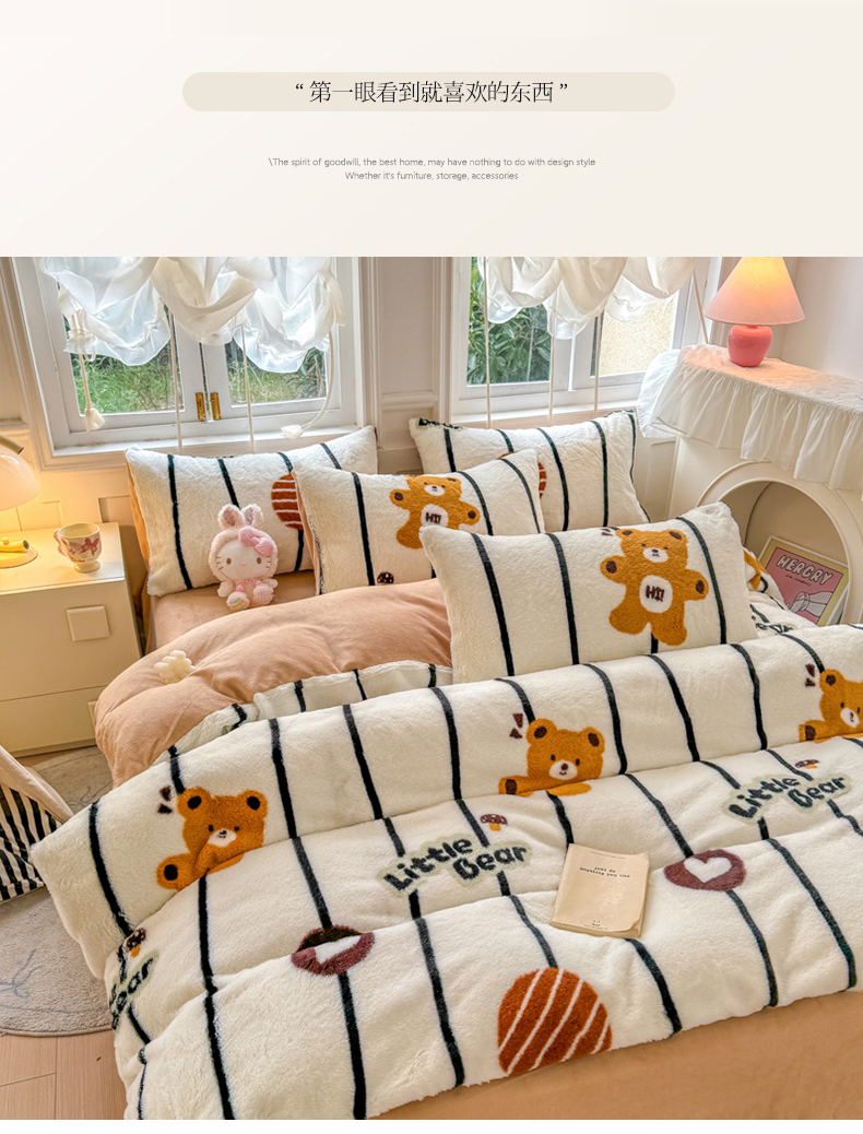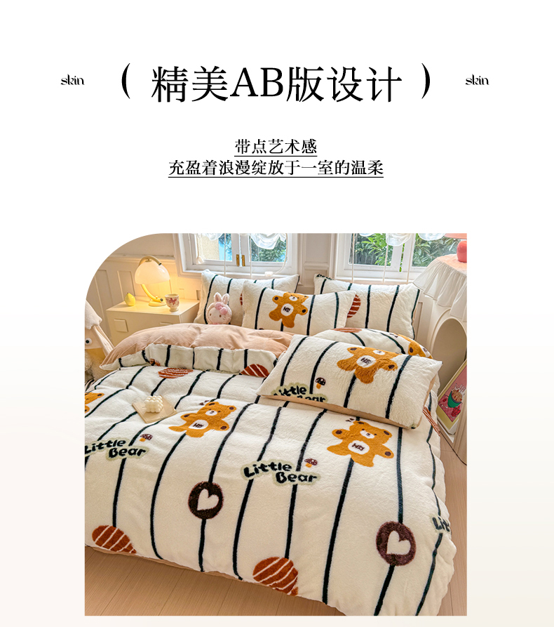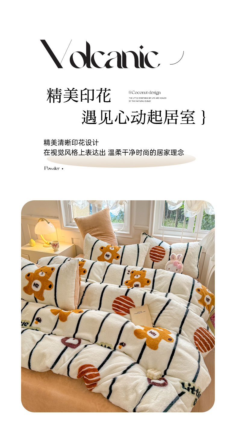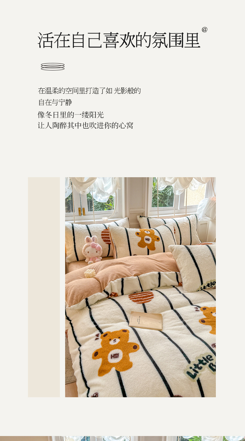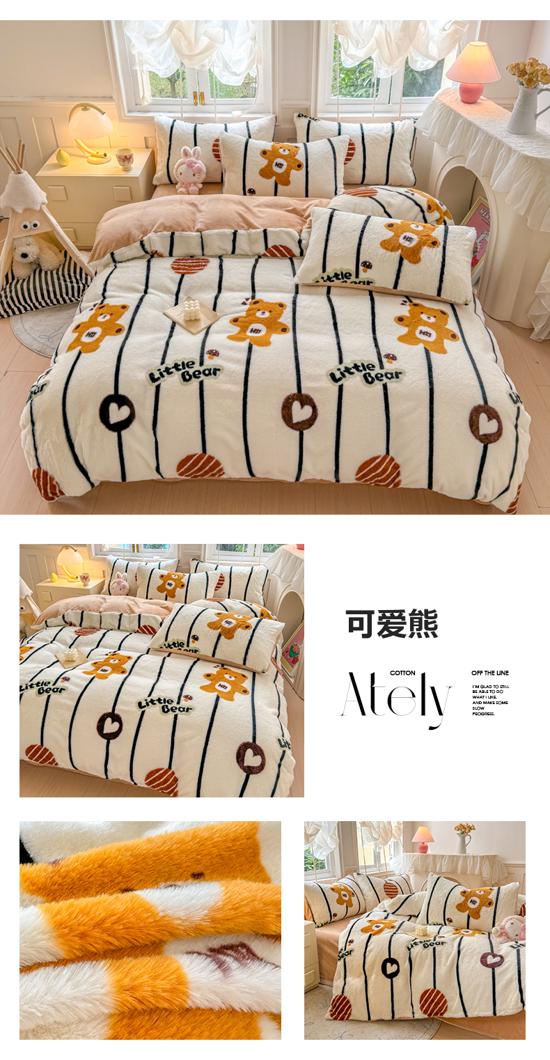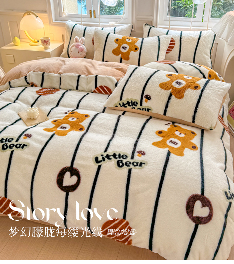 当前位置: 91家纺网 > 商品网购 > 床品套件 > 四件套 > 兔毛绒四件套 > 舒慕家纺 2025新款兔兔绒四件套 可爱熊