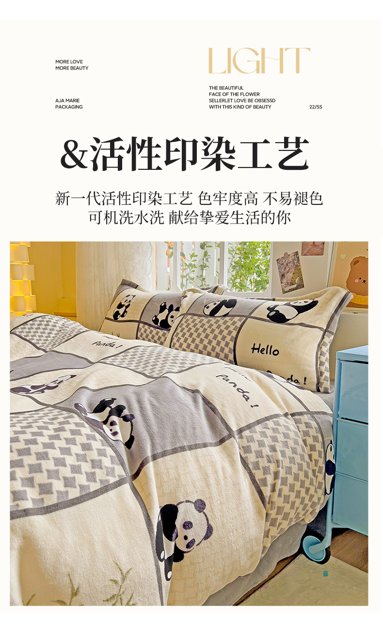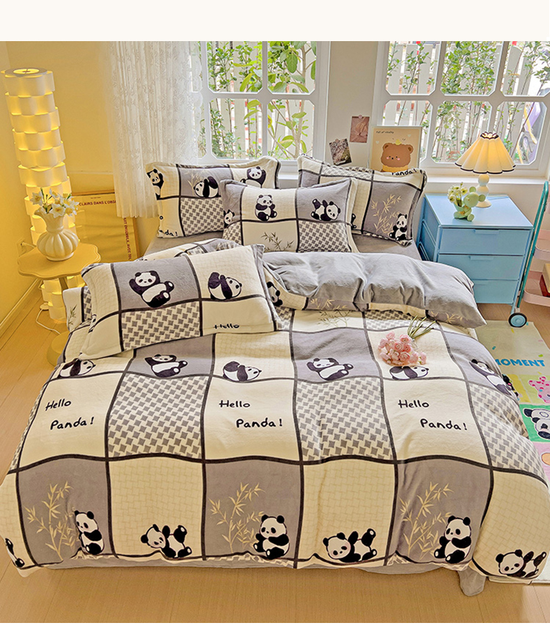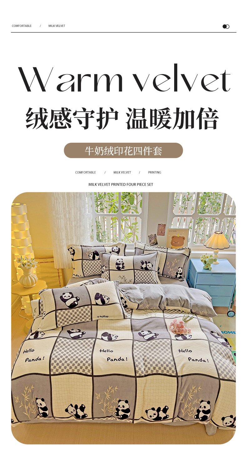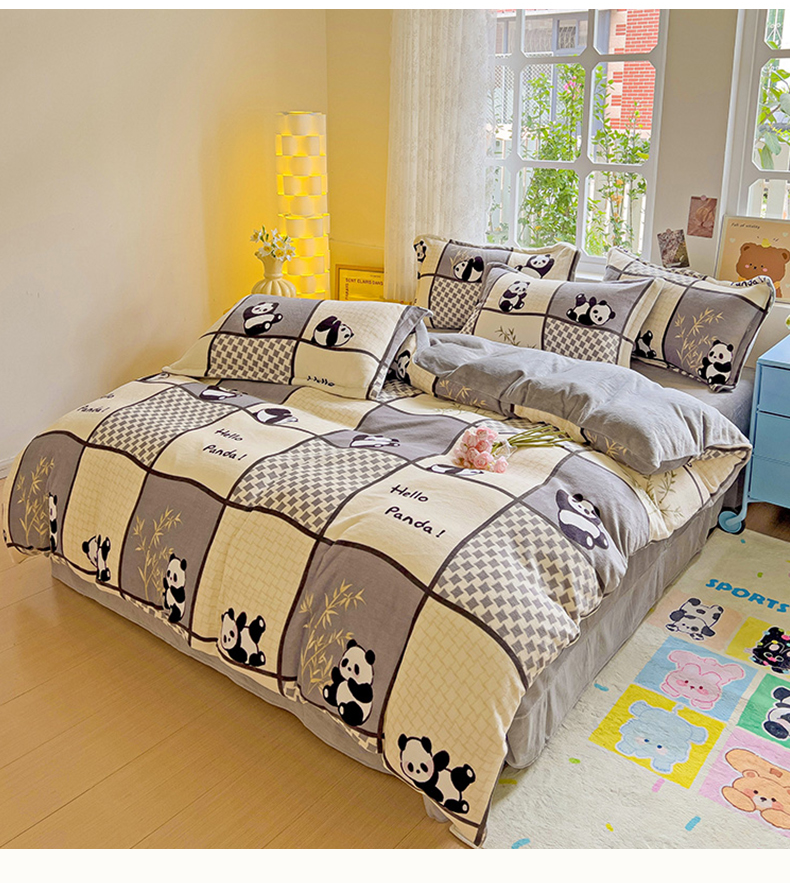 卡普二店 2024新款牛奶绒印花四件套 熊猫皮皮