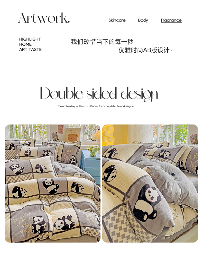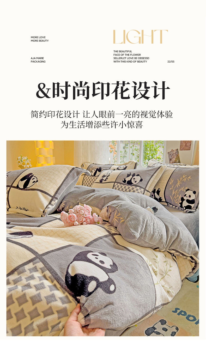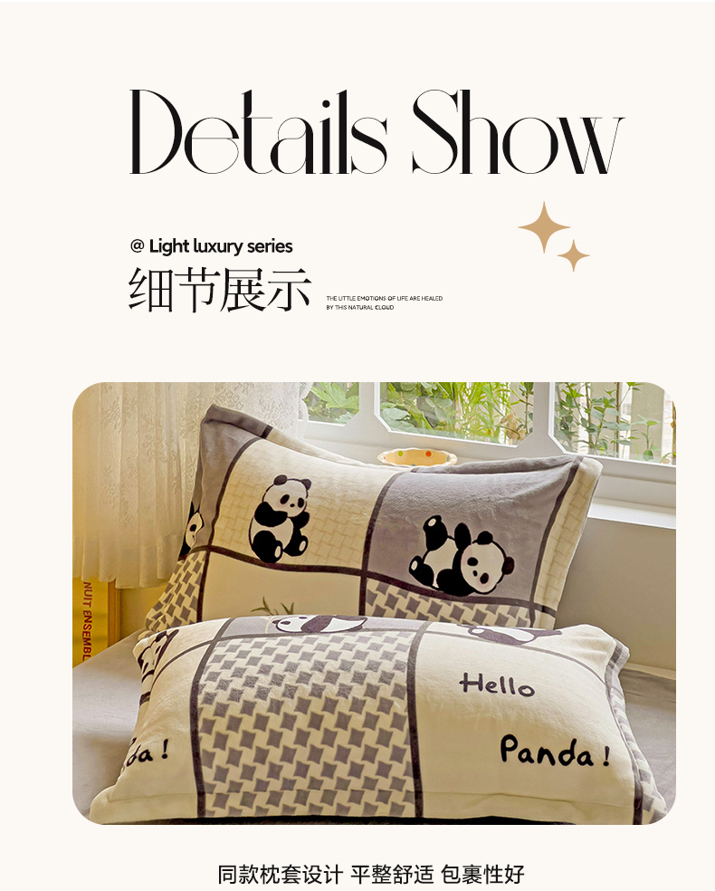 卡普二店 2024新款牛奶绒印花四件套 熊猫皮皮