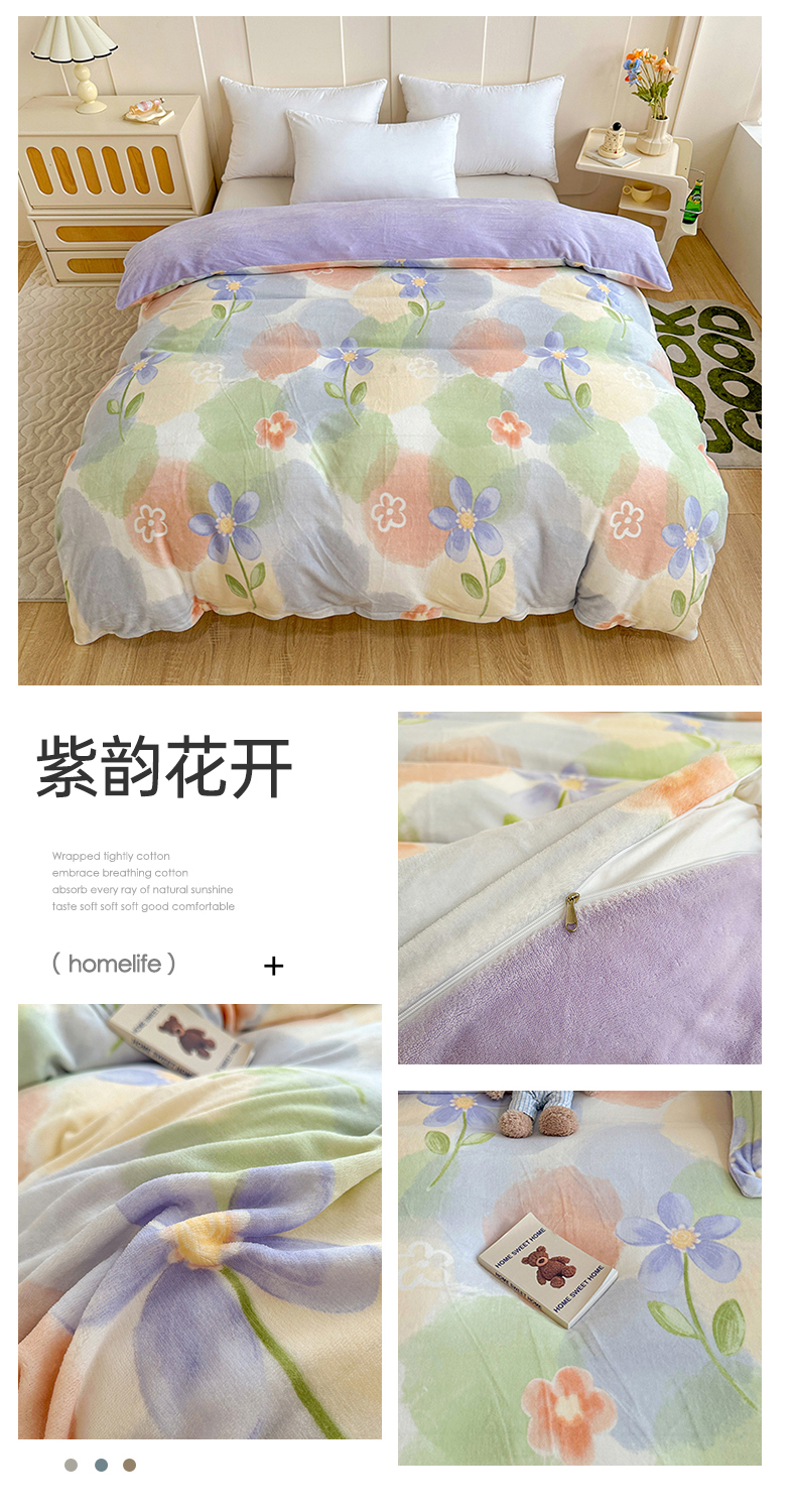 商品名称:卡普二店 2024新款牛奶绒印花单被套 紫韵花开