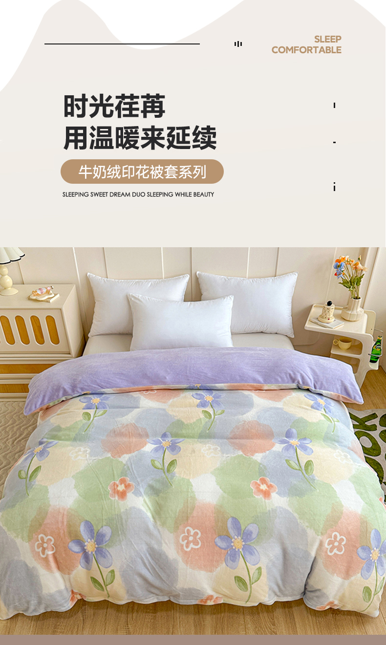 卡普二店 2024新款牛奶绒印花单被套 紫韵花开