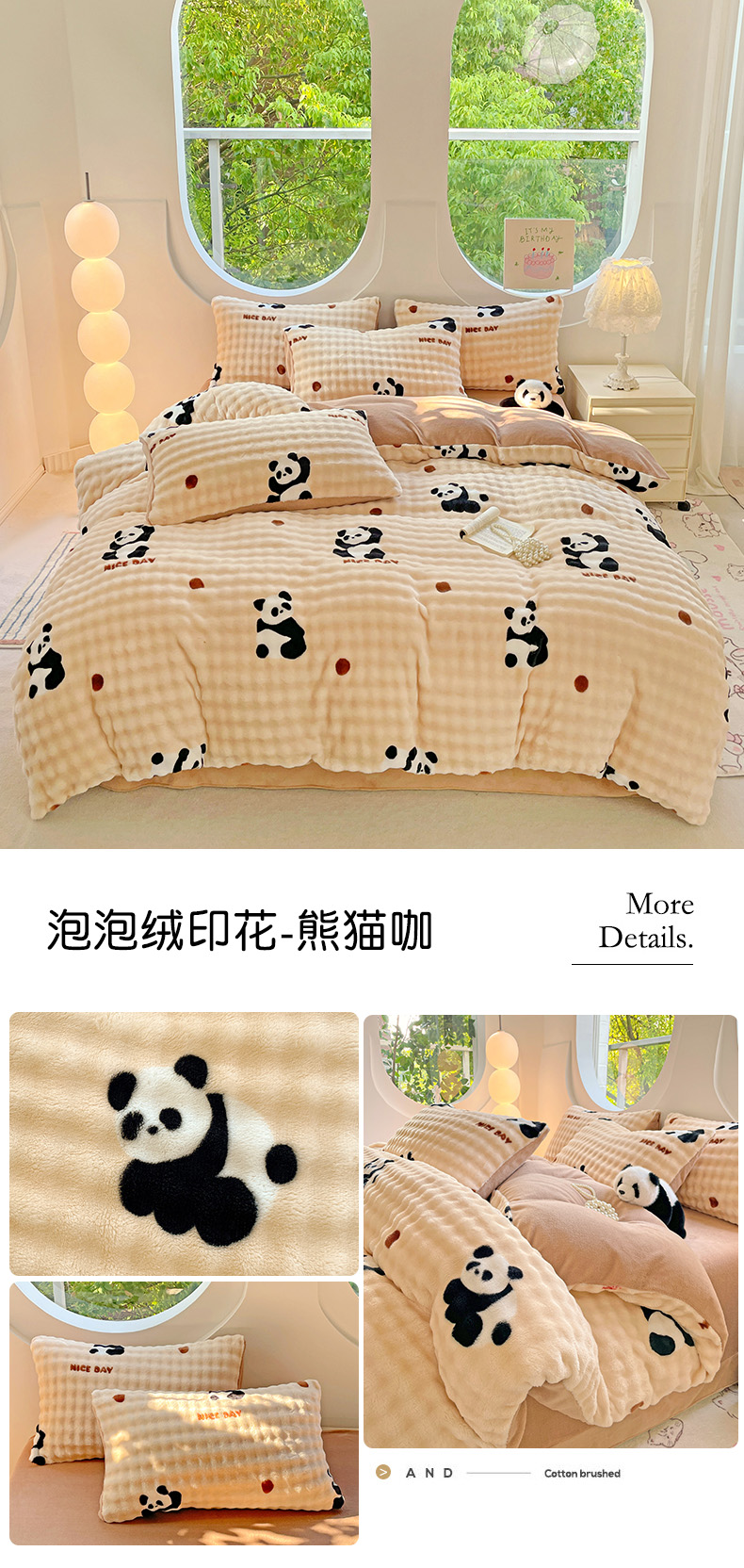 金梦拉家纺 2024直播爆款牛奶绒泡泡绒印花四件套 泡泡绒印花-熊猫咖
