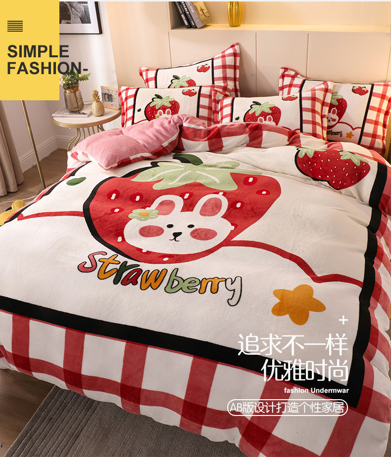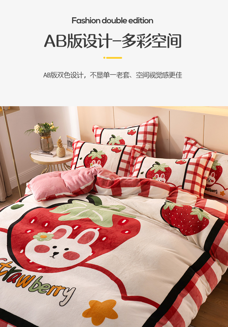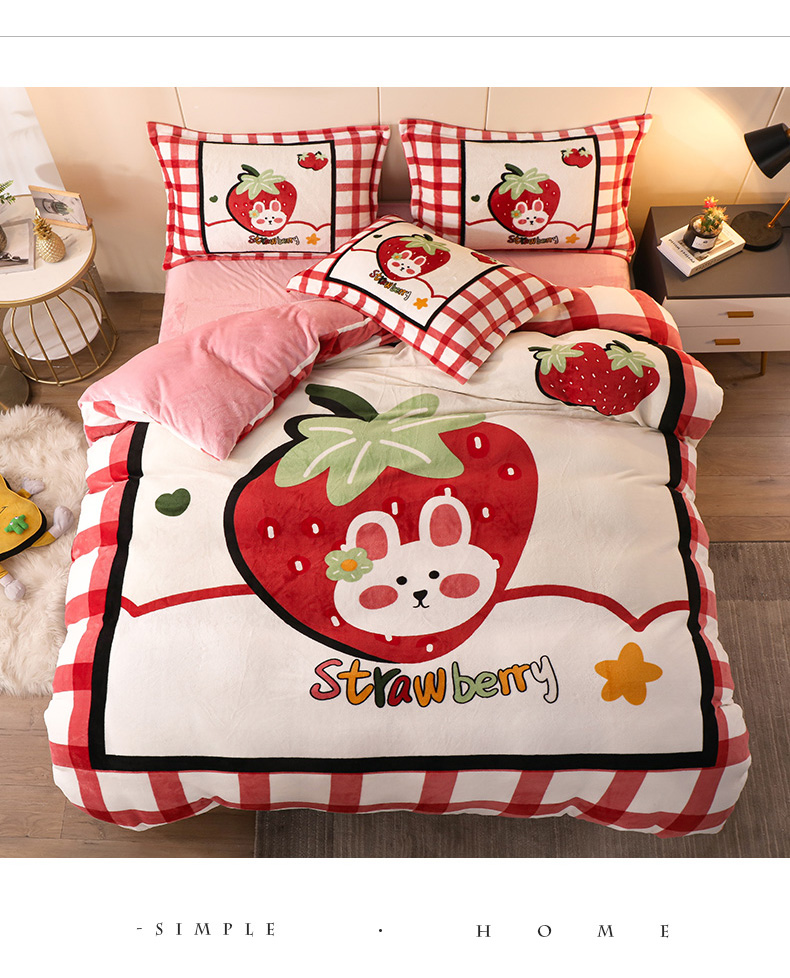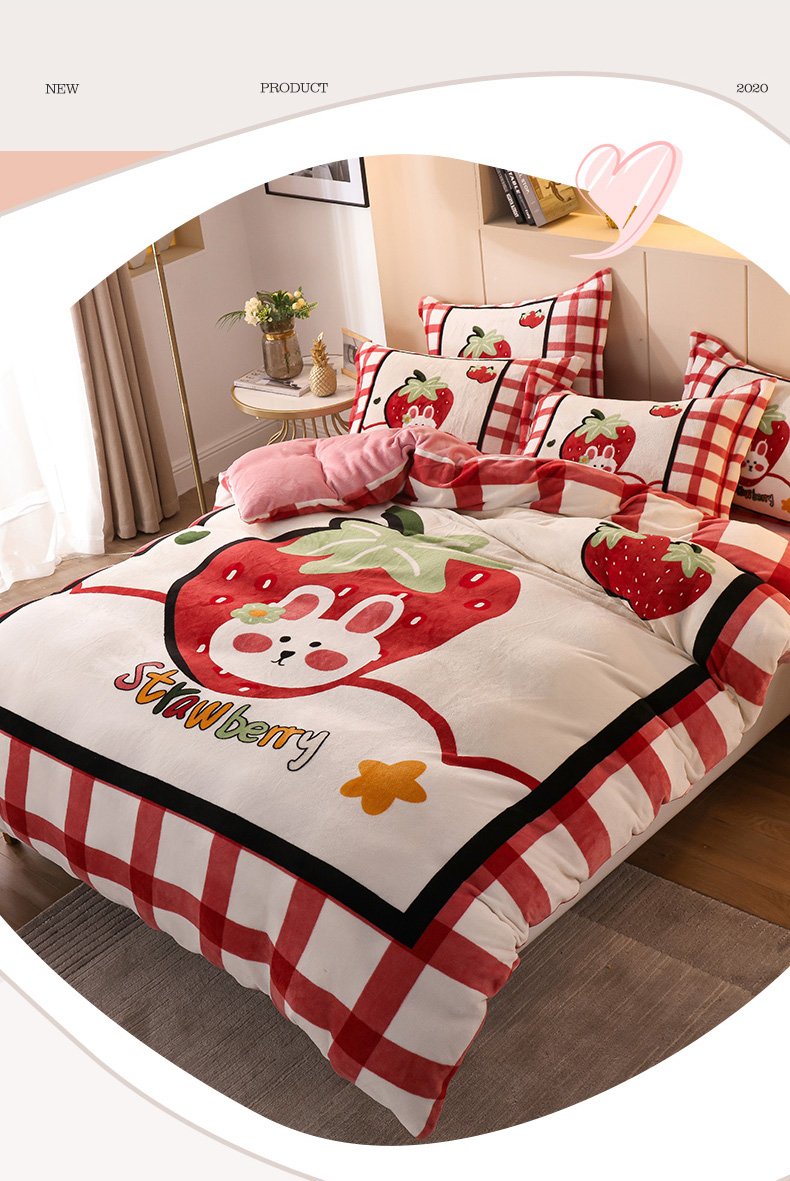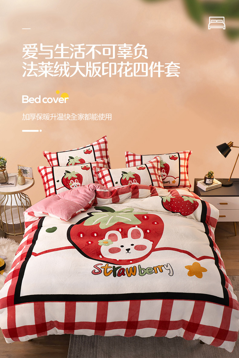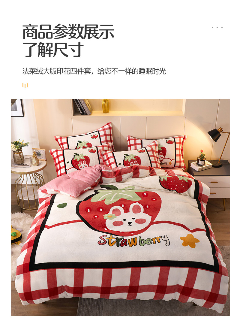 商品名称:凡客 2024新款牛奶绒大版印花四件套 草莓甜心