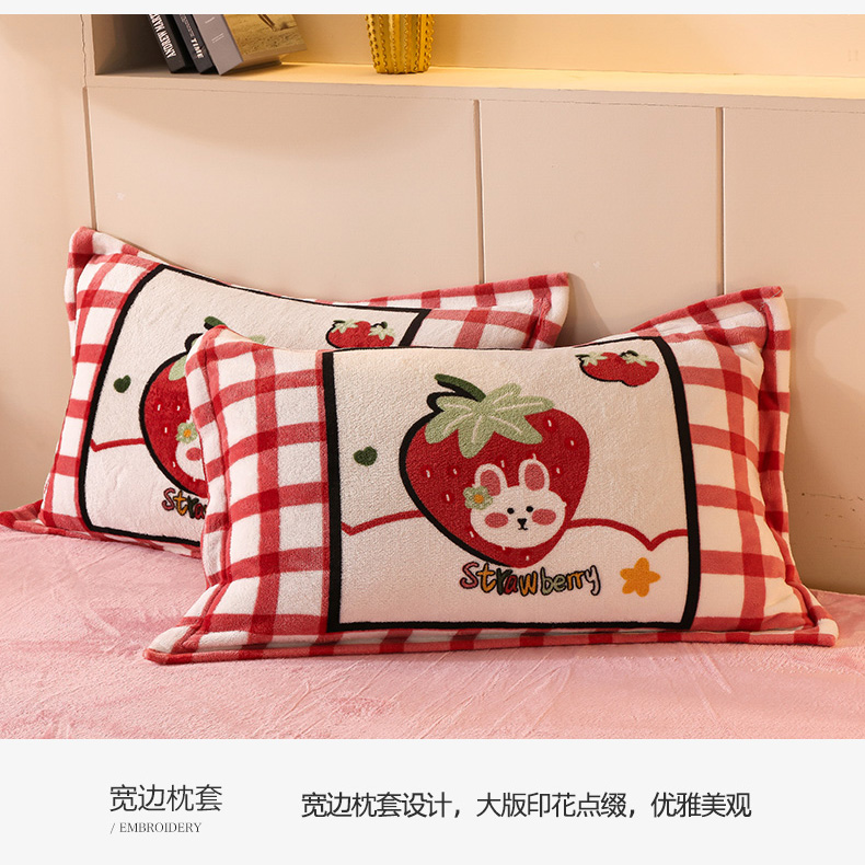 凡客 2024新款牛奶绒大版印花四件套 草莓甜心